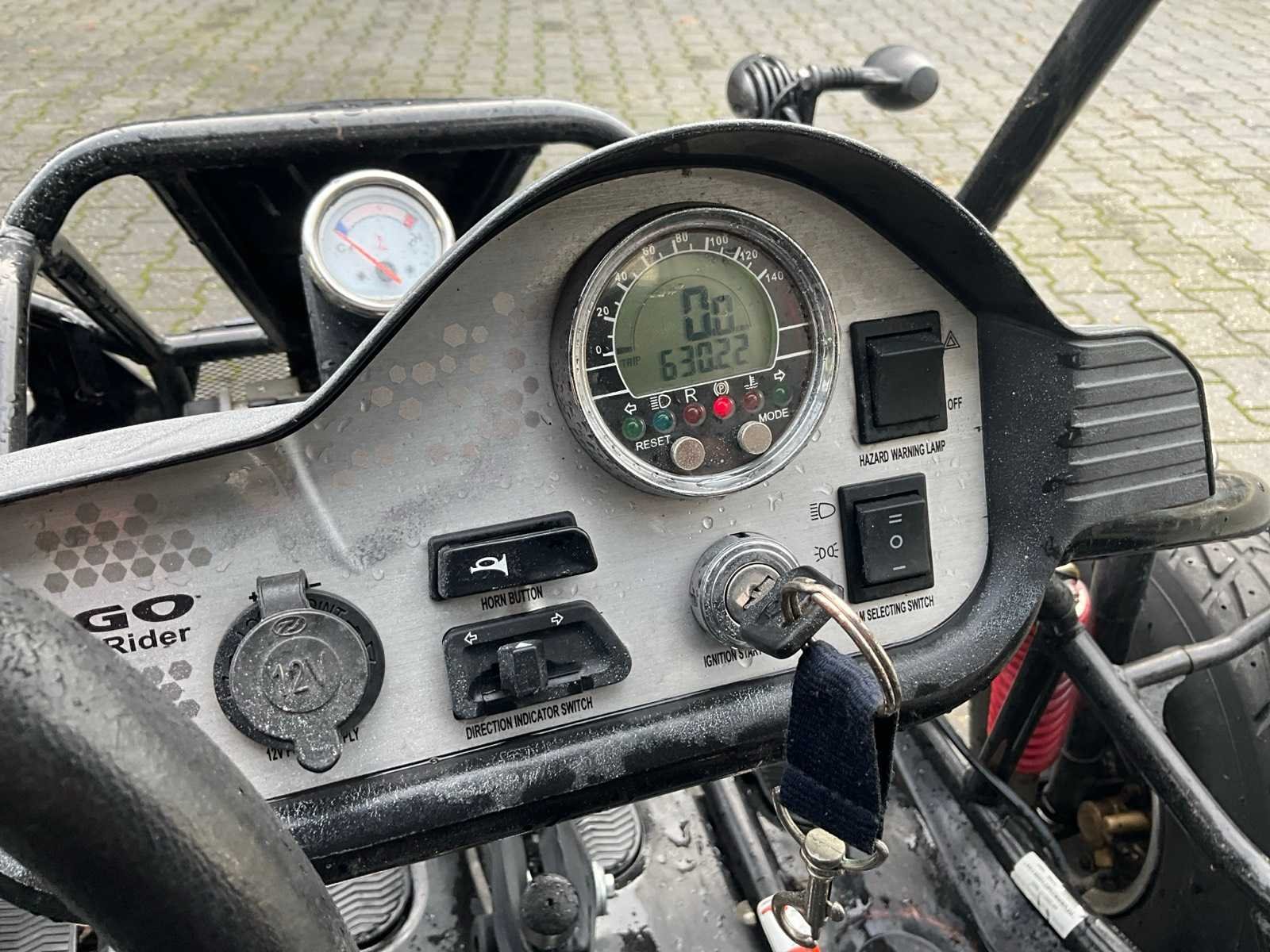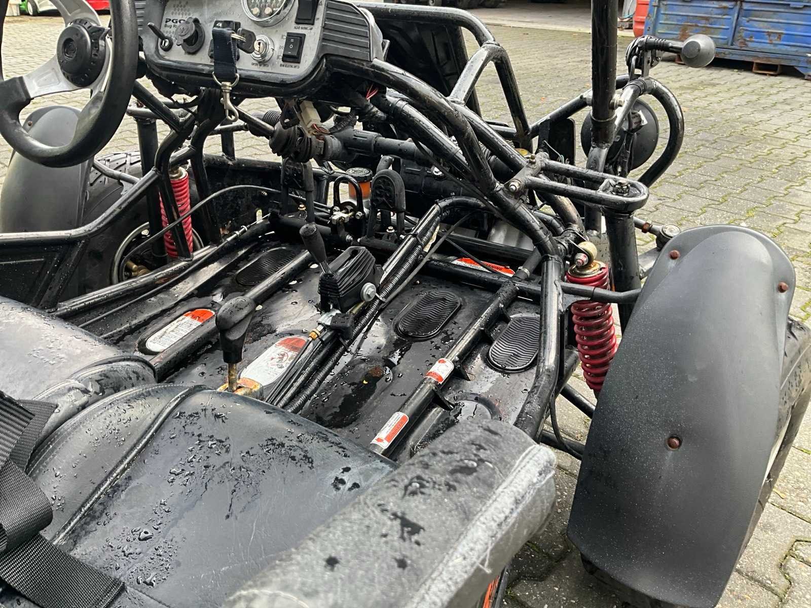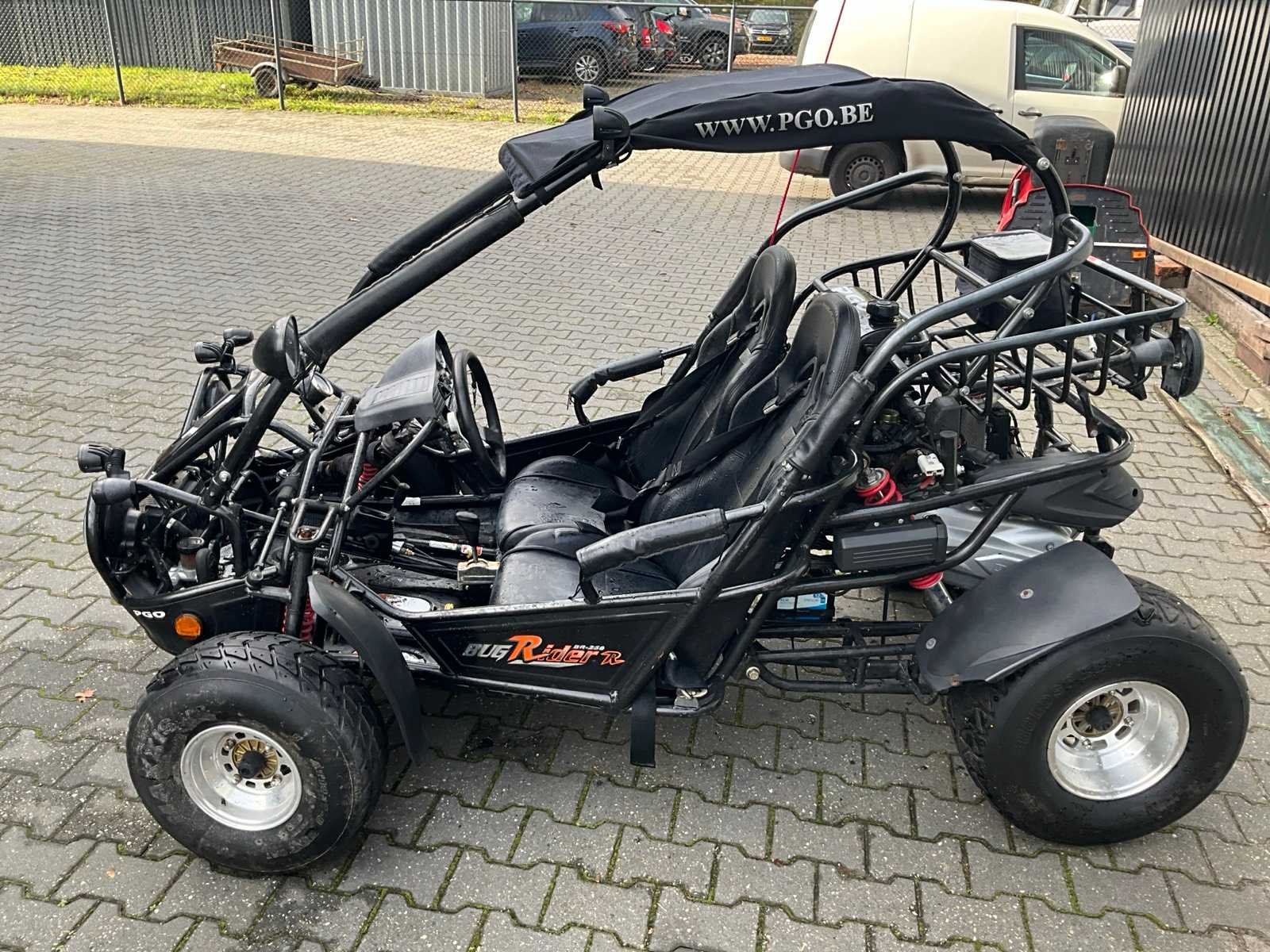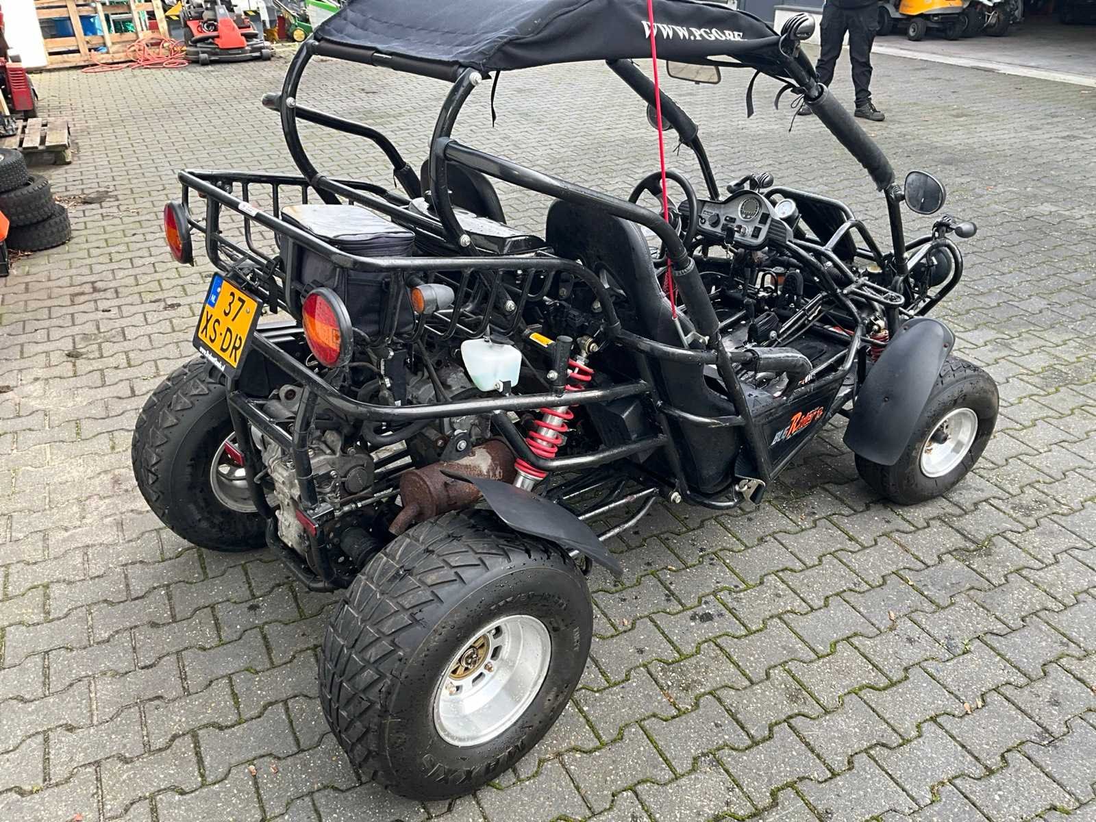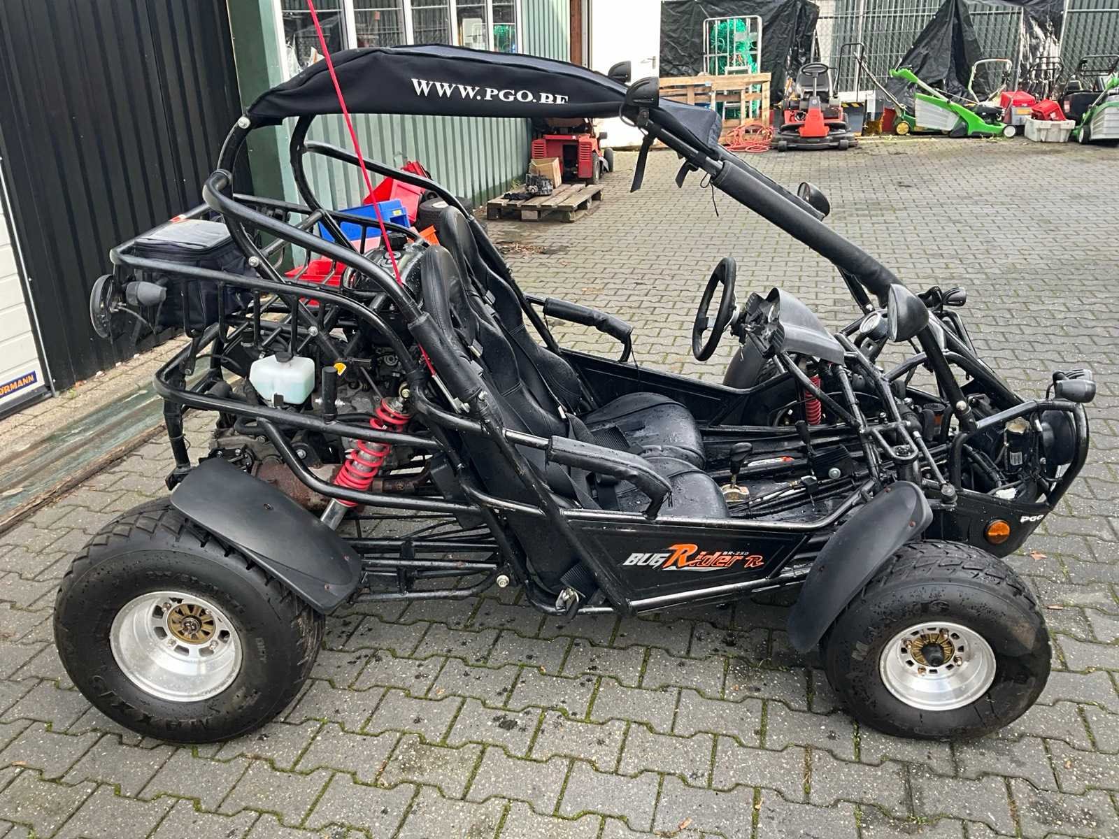 Voorzien van 2 zitplaatsen; PGO Benzinemotor; watergekoeld; automaat; 2 wiel aangedreven Let op, rijdt enkel achteruit! Merk: PGO Model: BR-250 D Aantal zitplaatsen: 2 Transmissie: Automaat Datum eerste toelating (NL): 2008-05-08 Datum eerste toelating: 2008-05-08 Bouwjaar: 2008 Vermogen (kW): 12kW Vermogen (pk): 16hp Cilinderinhoud: 249cc Brandstof: benzine Kenteken: 37-XS-DR Aantal deuren: 0 Carrosserie: onbekend Kleur: niet van toepassing