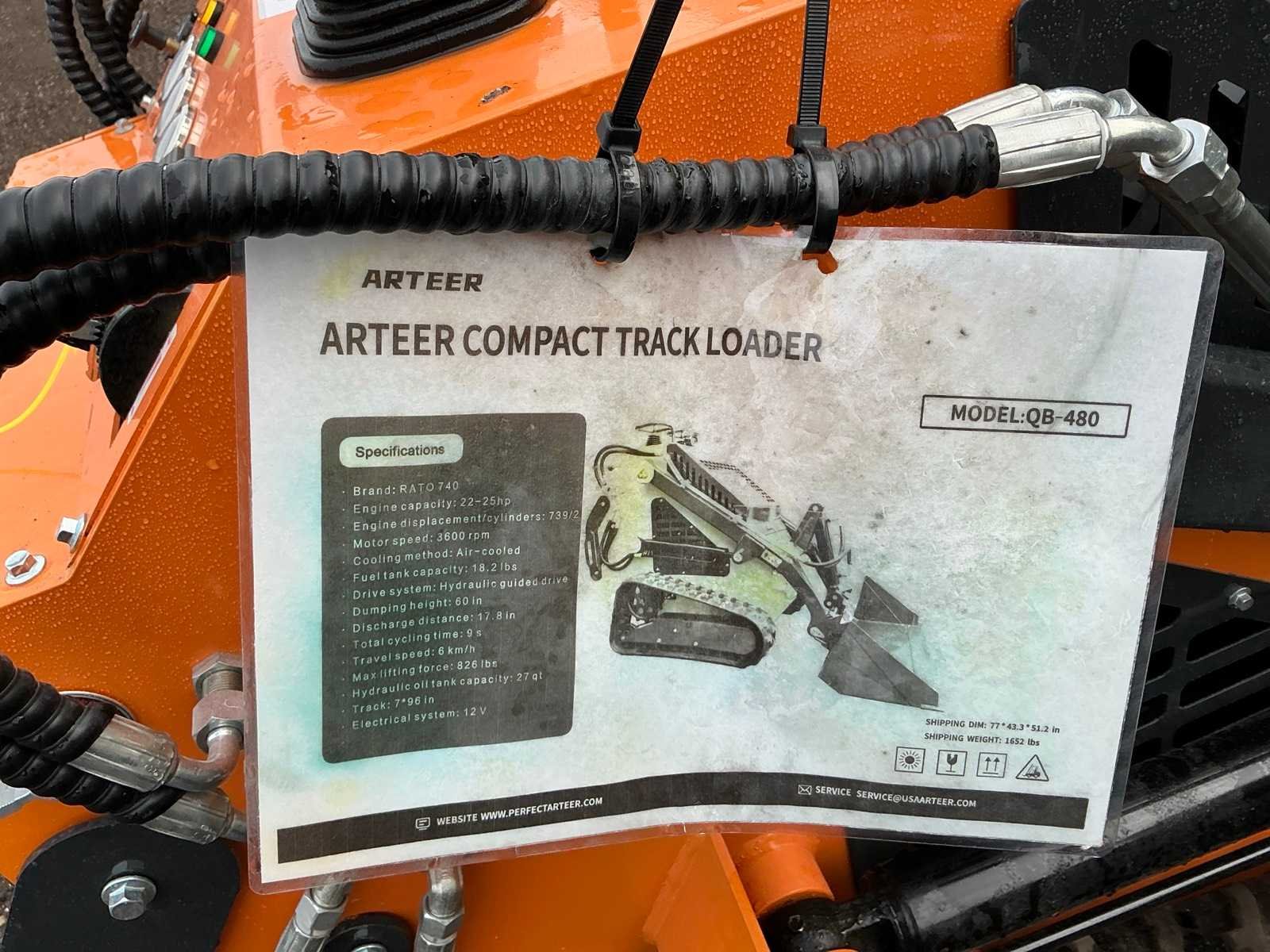 Ongebruikt, dichtenbak 1030mm, mechanische wissel, 1x extra functie, 1x vrije retour, olie koeler, tracks maat 180x72x34, meerijdtreede, leuningen massa schakelaar, led werkverlichting Merk: Arteer Type: QB 480 Bouwjaar: 2025 Serienummer: ART2025CK888001930 Motorvermogen (kW): 18kW Aantal cilinders: 2 Brandstof: Benzine Graafbak afm. b: 1030mm Afgelezen urenstand: 1.1 Eigen gewicht: 800kg Totale afmeting L: 2200mm Totale afmeting Breedte: 1050mm Totale afmeting Hoogte: 1300mm