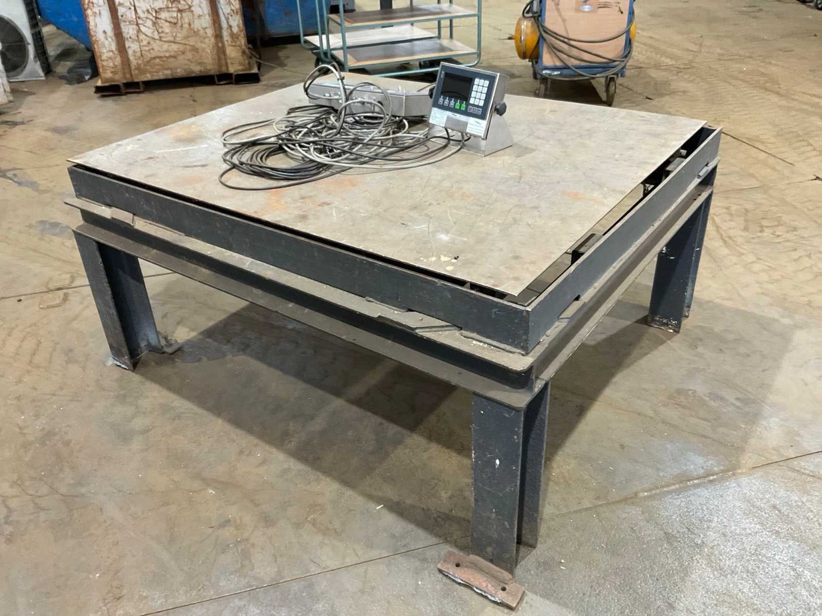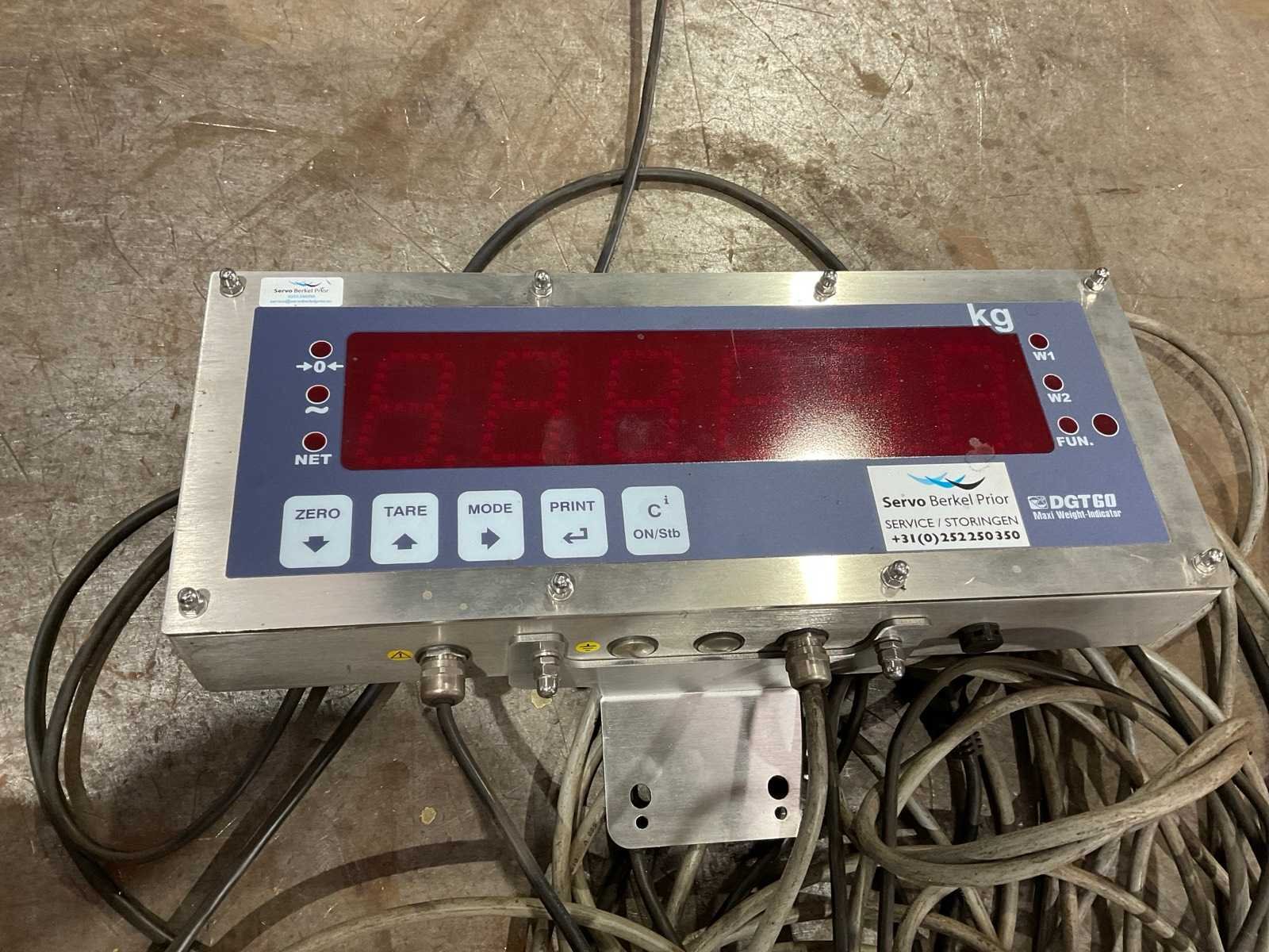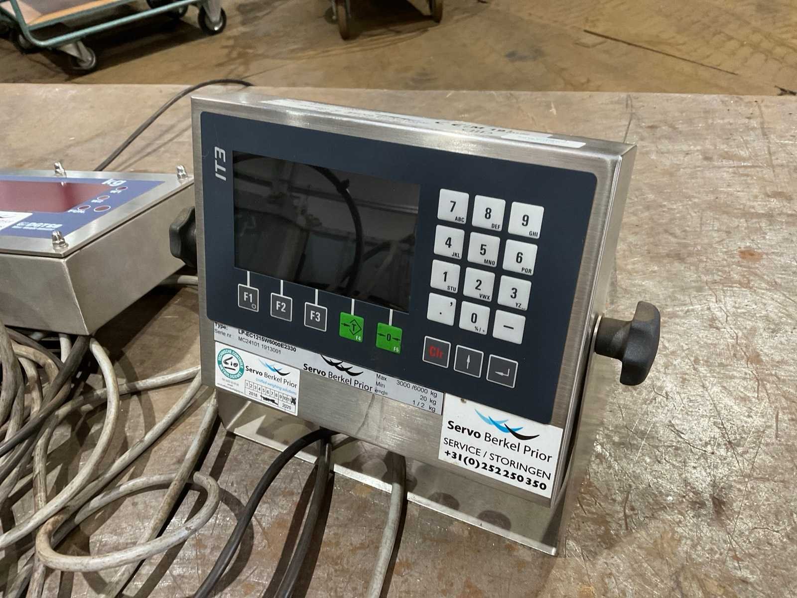 Max gewicht: 5000kg, voorzien van: 750mm hoog frame (plaatsing op grond mogelijk), Servo Berkel Prior uitleeskast, Merk: Servo Berkel Prior Afleesnauwkeurigheid: 1000g Aansluiting: 230V Digitale uitlezing: true Totale afmeting Breedte: 1580mm Totale afmeting Hoogte: 740mm Totale afmeting L: 1350mm