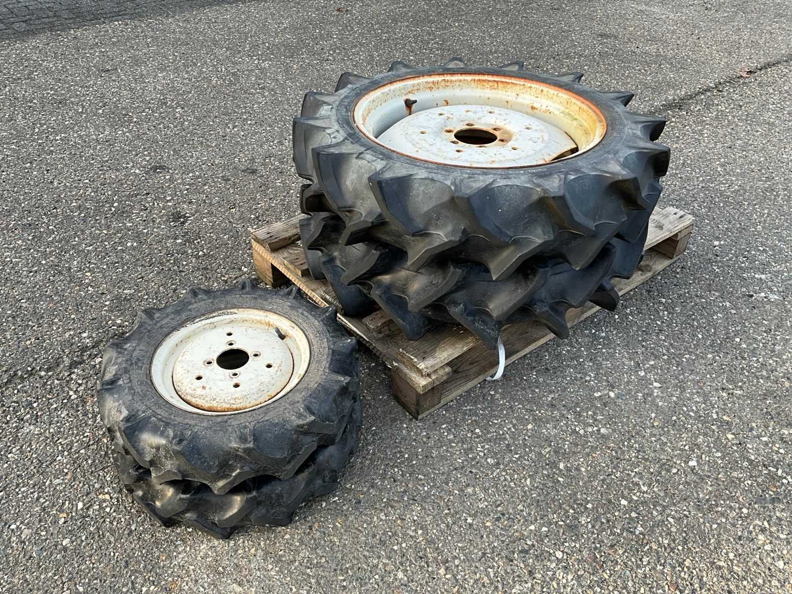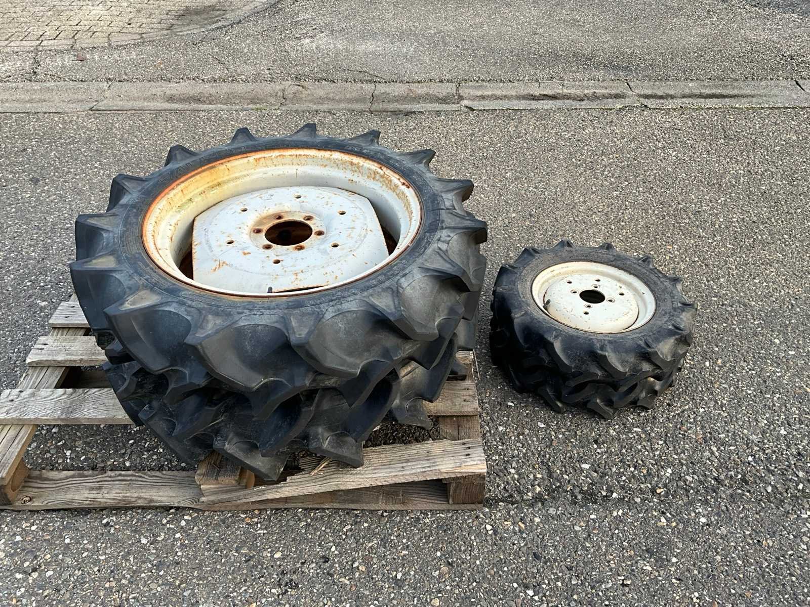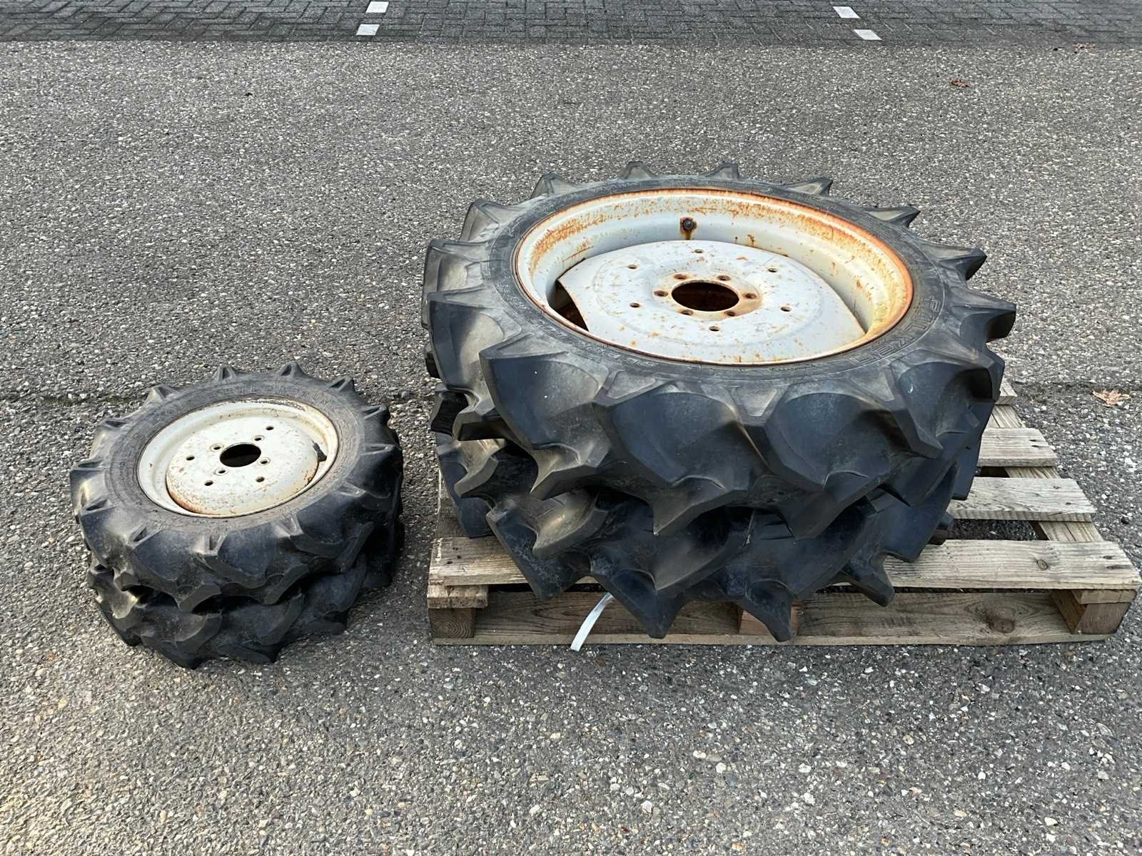 2x 5.00-12 4-gaats velg steek 100mm, 2x 8.3-24 6-gaats velg steek 150mm
