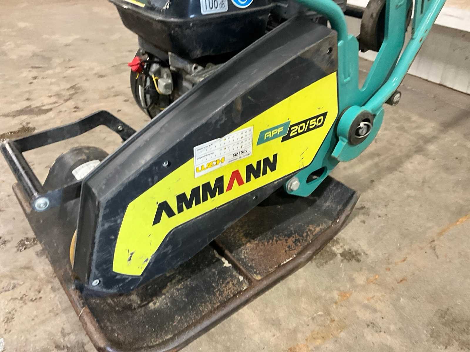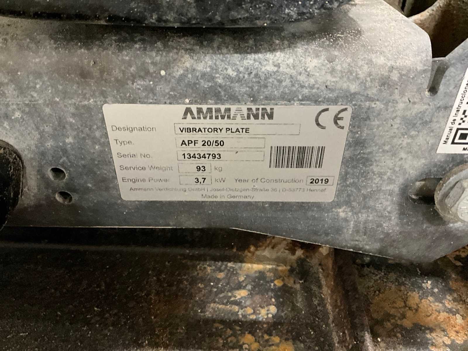 Voorzien van wielstel; Merk: Ammann Type: APF2050 Bouwjaar: 2019 Grondplaat afm. b: 500mm Centrifugale kracht: 20kN Merk motor: Honda Motorvermogen (kW): 3.7kW Brandstof: Benzine Eigen gewicht: 93kg