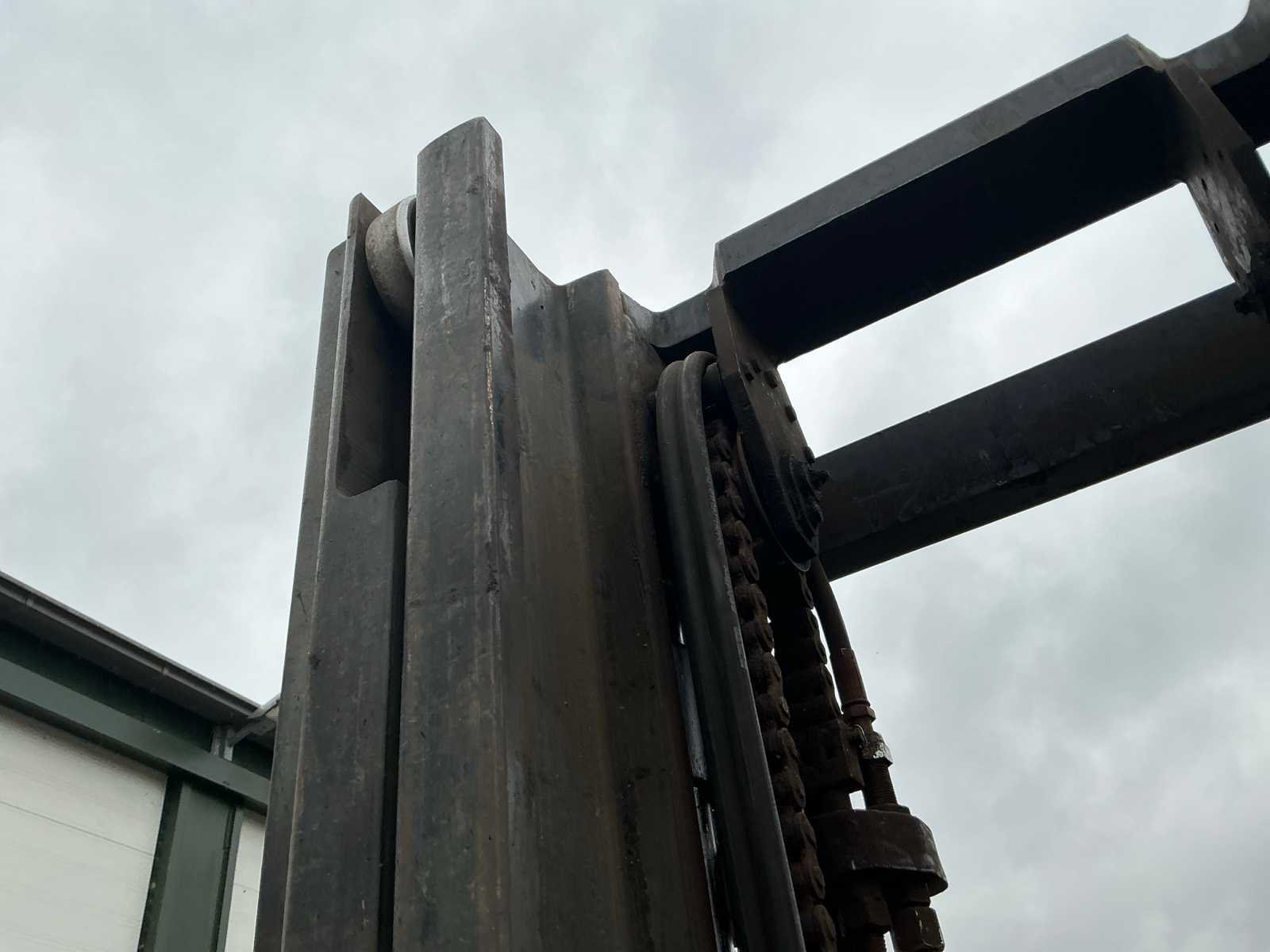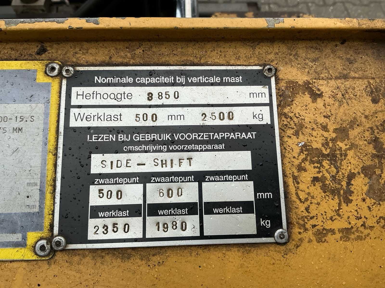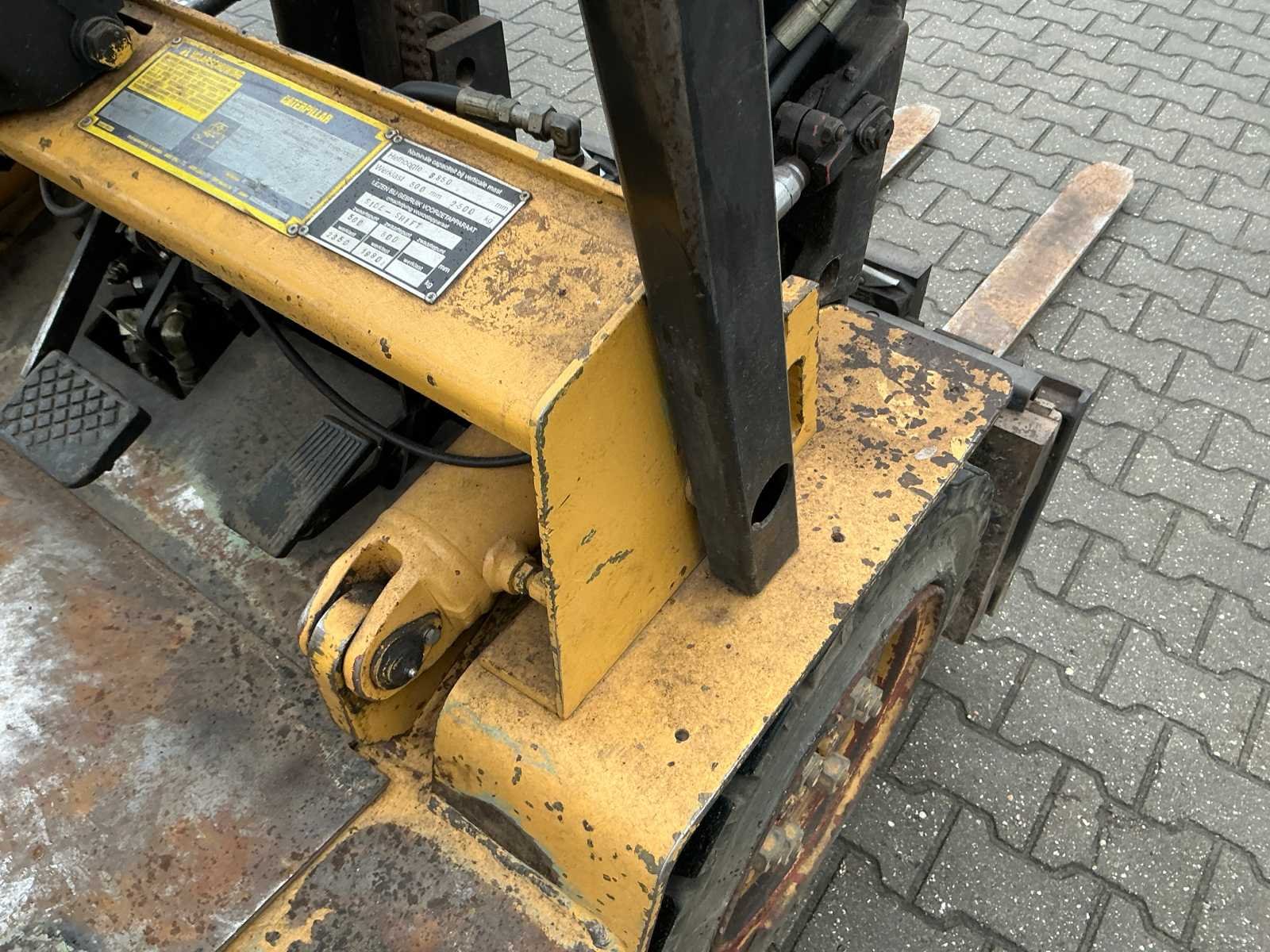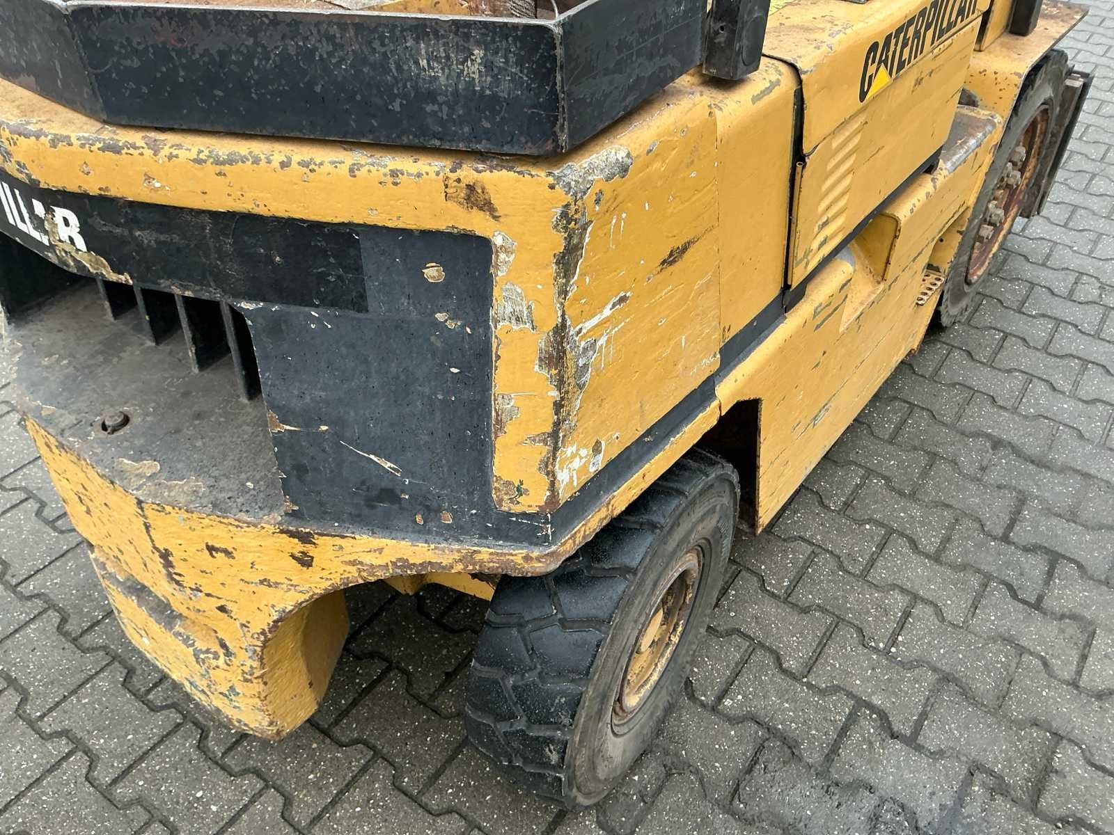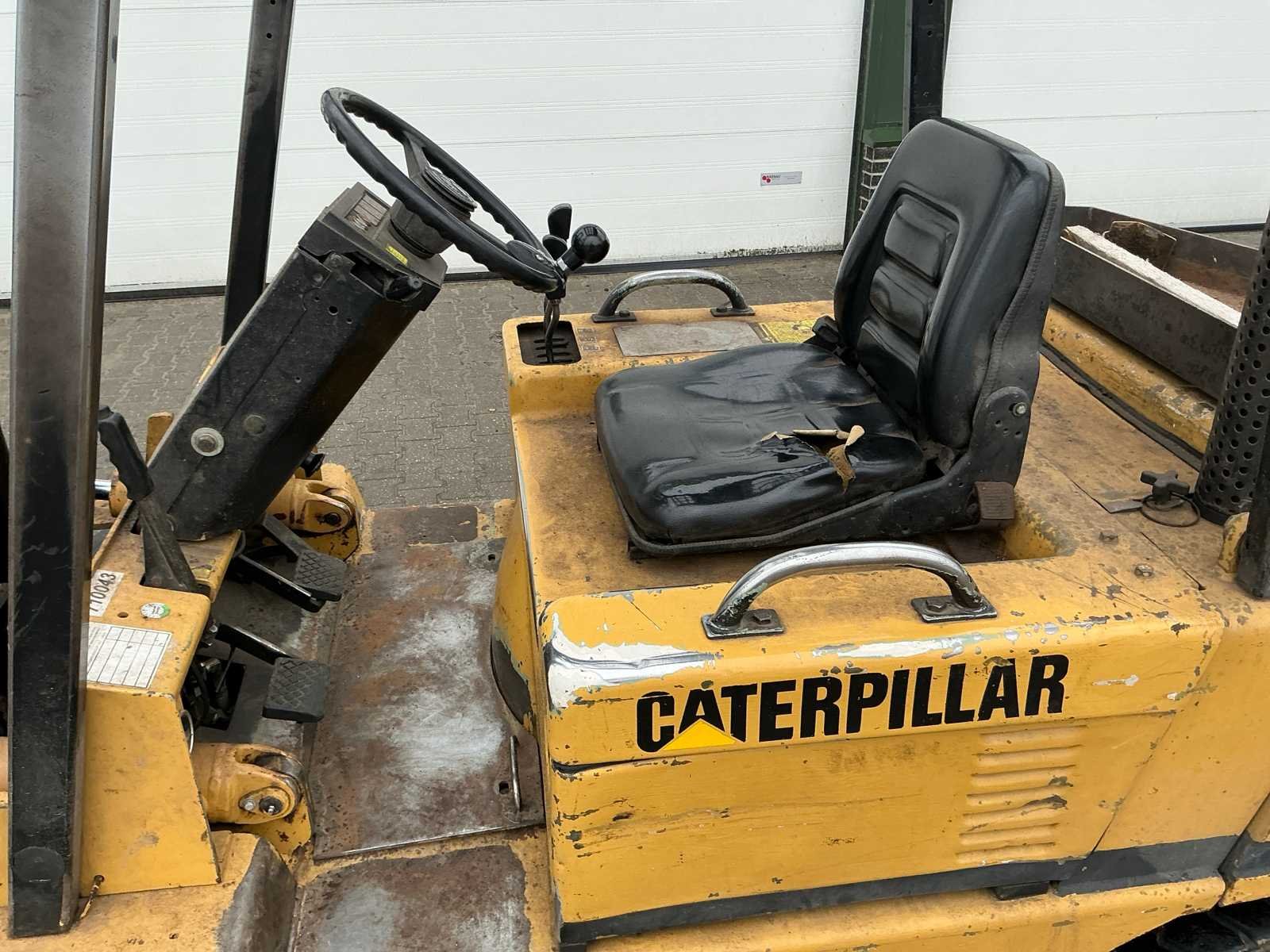Voorzien van: duplex mast, werkverlichting voor er achter, 1300mm vorken, side shift, Let op! voorste as dient nagekeken te worden maakt geluid op hoge snelheid Merk: Caterpillar Type: V50D Bouwjaar: 1991 Brandstof: Diesel Mast: Duplex Soort band: Volrubber banden Aantal wielen: 4 Afgelezen urenstand: 15512 Side-shift: true Duplex mast: true Hefvermogen: 2500kg Lepellengte: 1300mm Hefhoogte: 3850mm Vol rubber banden: true Minimale doorrijhoogte: 2650mm Totale afmeting L: 2600mm Totale afmeting Breedte: 1200mm Totale afmeting Hoogte: 2650mm Diesel: true