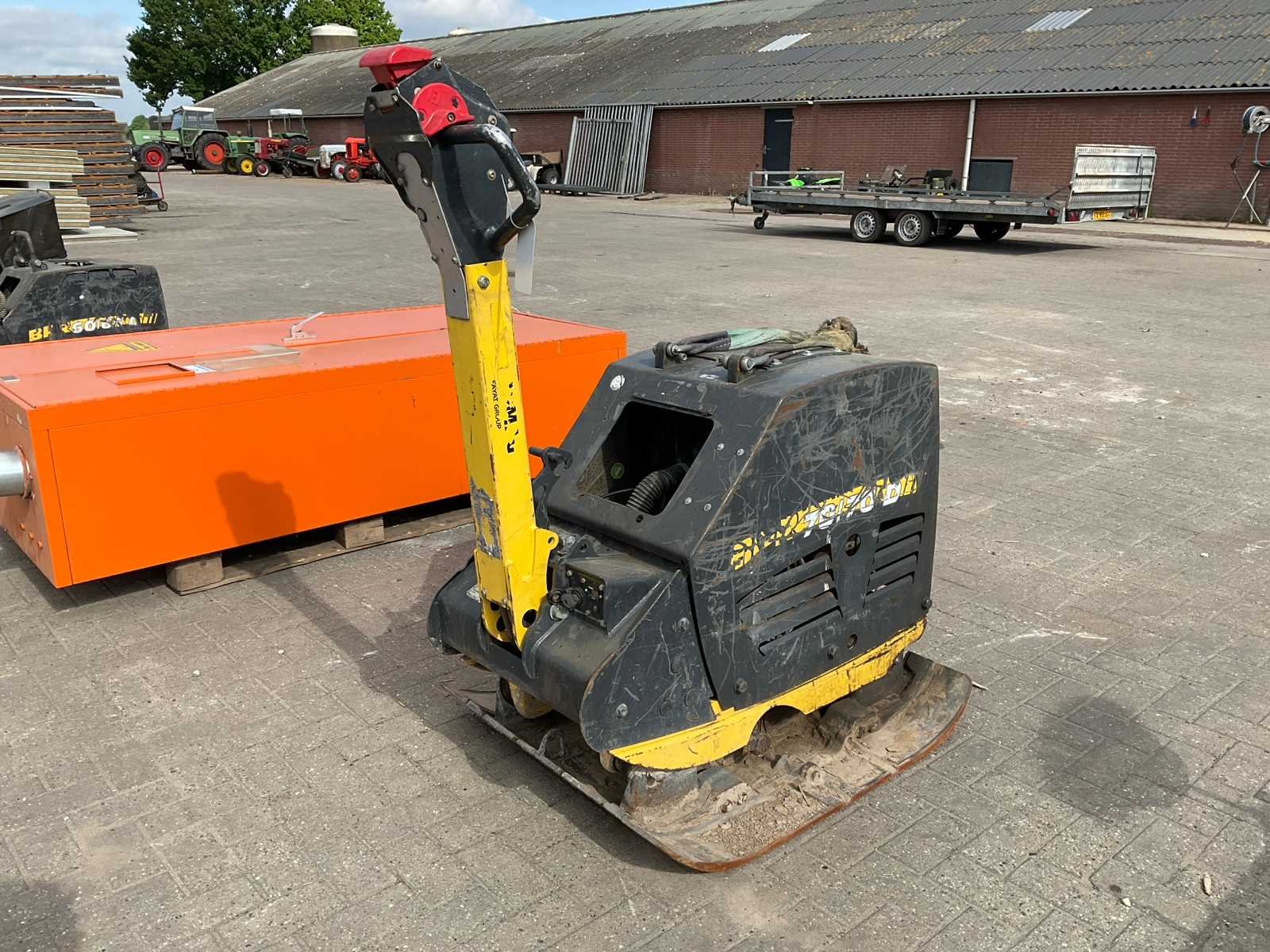 Merk: Bomag Type: BPR 70/70 D Bouwjaar: 2015 Serienummer: 101695301624 Grondplaat afm. l: 900mm Grondplaat afm. b: 700mm Merk motor: Hatz 1B40T-6 Motorvermogen (kW): 9.7kW Brandstof: Diesel Eigen gewicht: 580kg Totale afmeting L: 1000mm Totale afmeting Breedte: 700mm Totale afmeting Hoogte: 1300mm