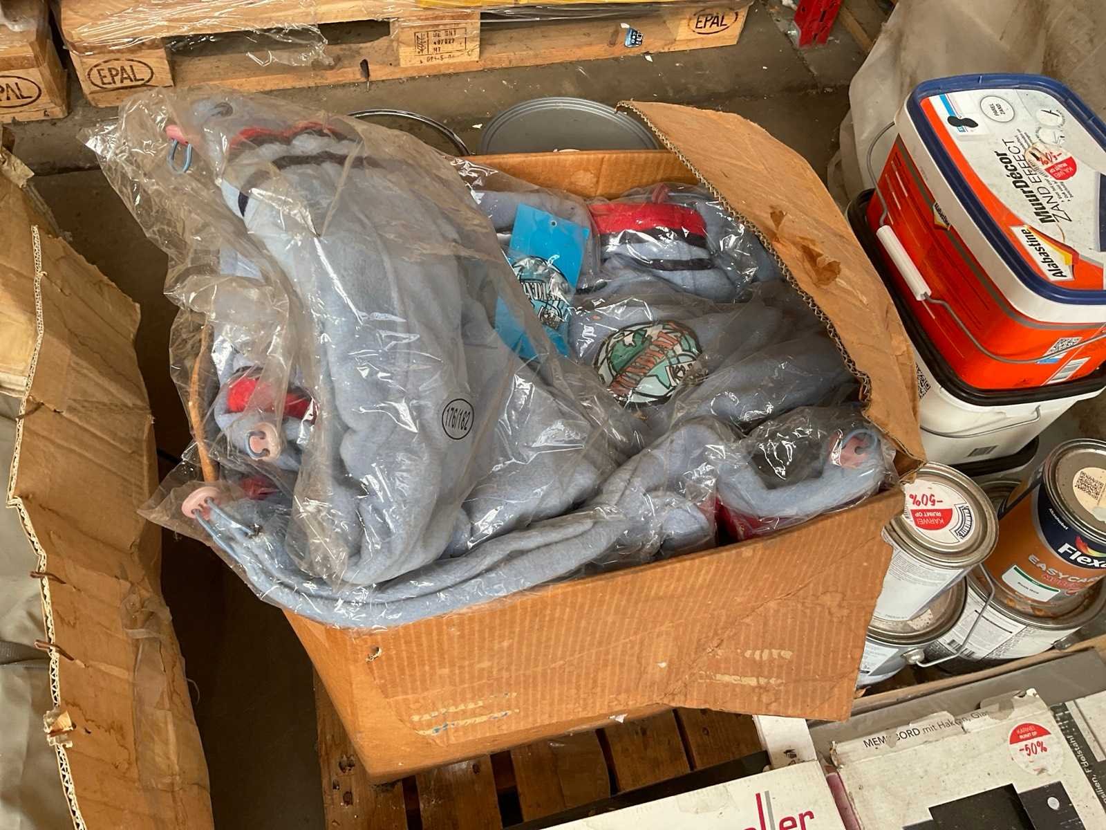 O,a ongebruikte fleece truien; diverse verf/lak soorten; meerdere memoborden