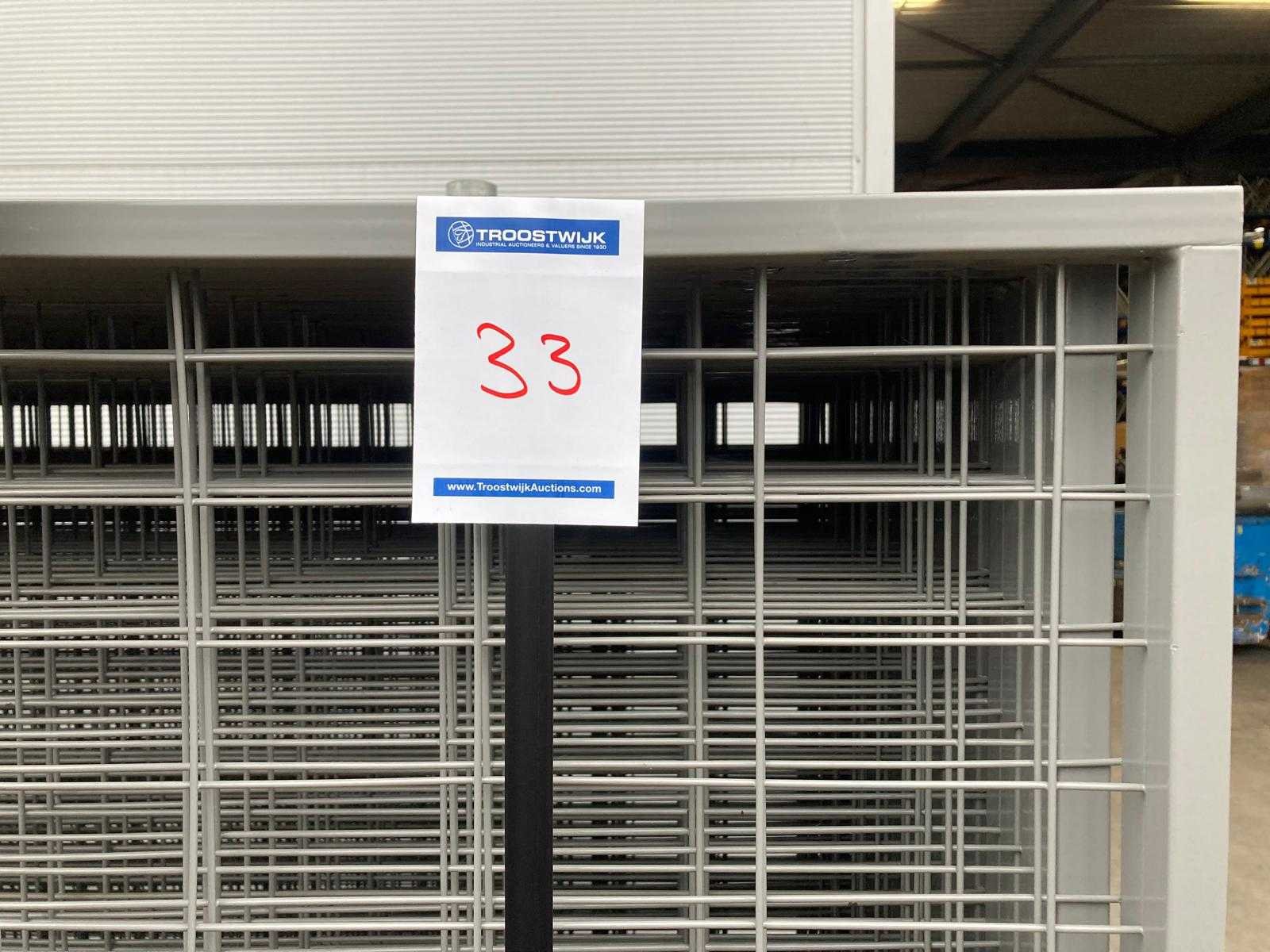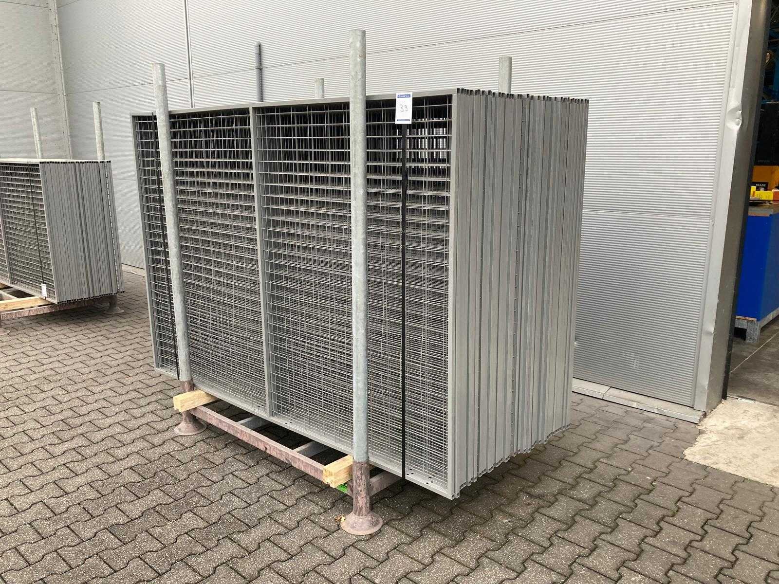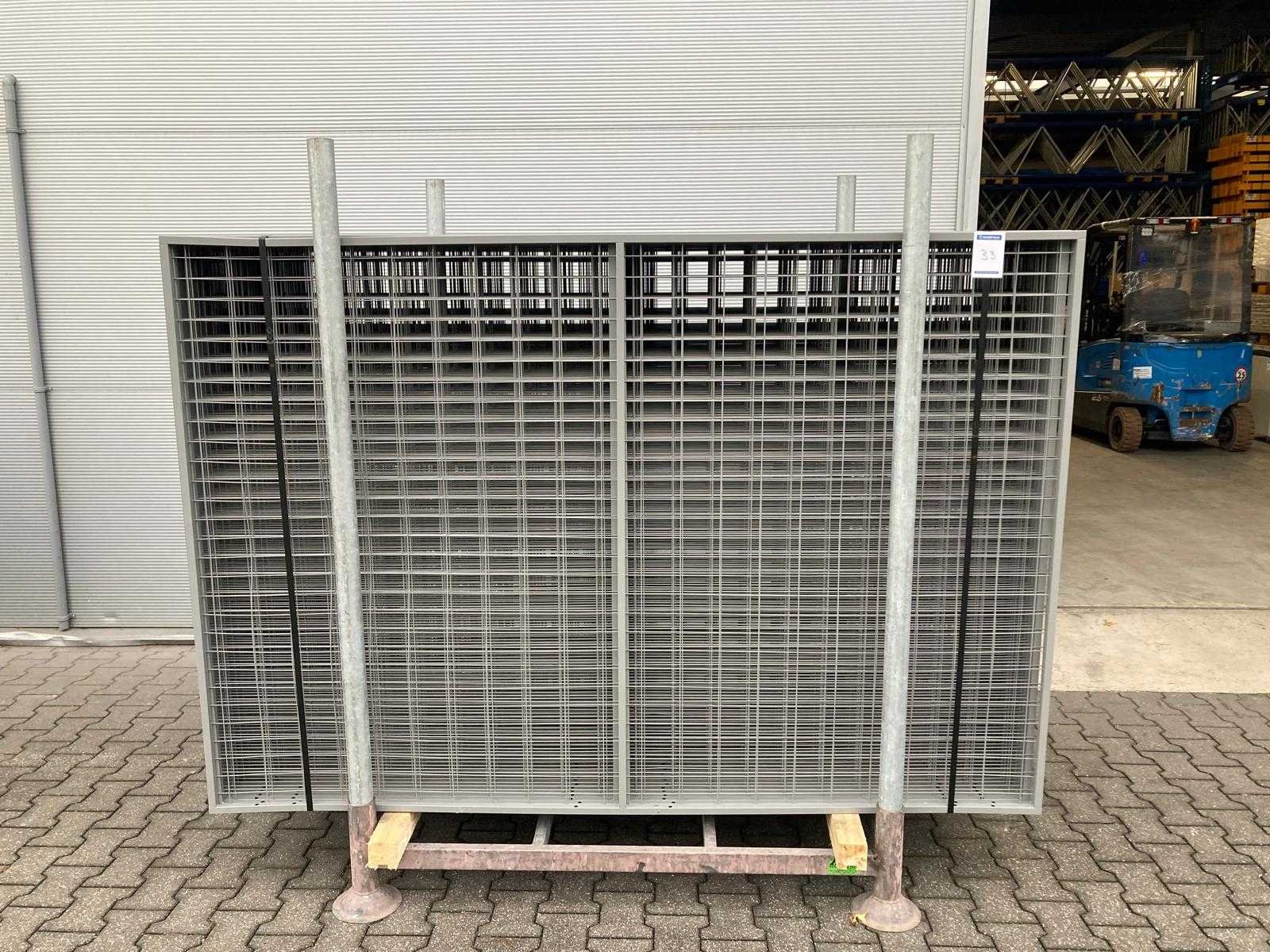 Een systeem dat aan de achterkant van magazijnstellingen wordt gemonteerd om te voorkomen dat producten of pallets naar beneden vallen; 2200x1200mm; zonder stapelbok Lengte: 2200cm Hoogte: 1200cm