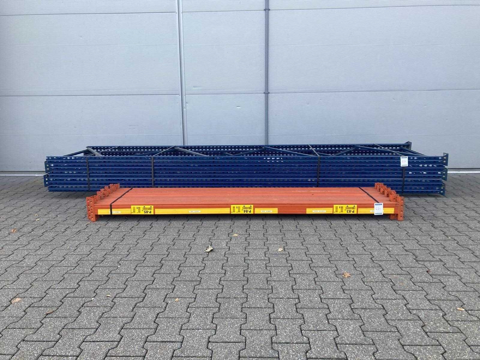 5x staander 4340x1100x80mm; 12x ligger 2700x100x50mm; gebundeld; Merk: Mecalux Aantal secties: 4 Sectie afm. b: 2700mm Sectie diepte: 1100mm Sectie afm. h: 4340mm Aantal staanders: 5 Aantal liggers: 12 Demontabel: true