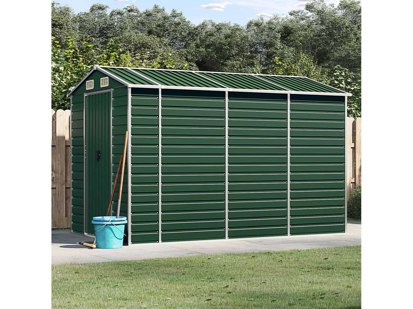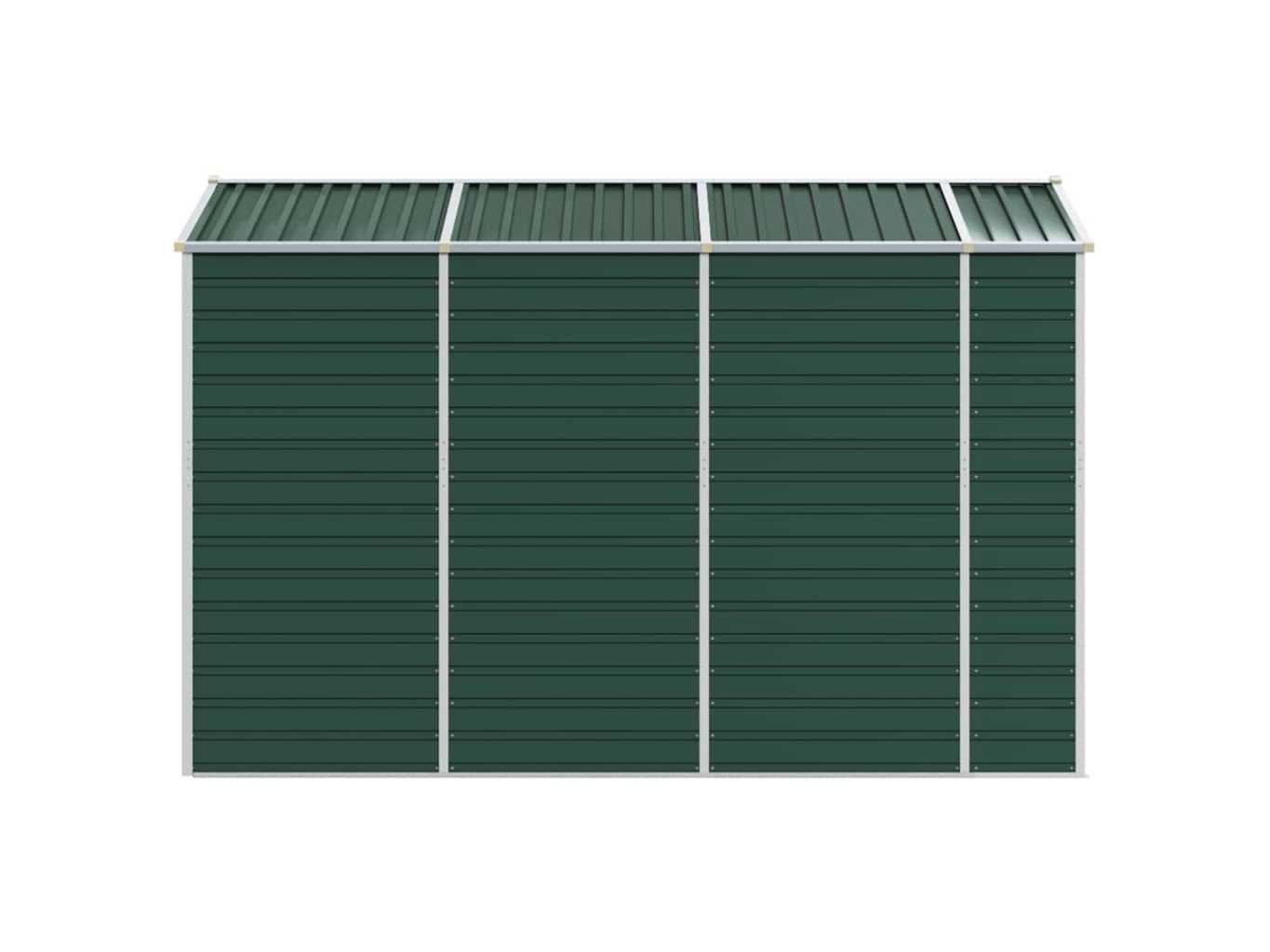 Breid je tuinopbergmogelijkheden uit en bescherm je gereedschap met deze multifunctionele tuinschuur. Robuust materiaal: het tuinschuurtje is gemaakt van gegalvaniseerd staal, dat roestvorming voorkomt en lang meegaat. Staal is een buitengewoon hard en sterk materiaal. Het biedt stevigheid en stabiliteit. Galvanisatie biedt een betere bescherming tegen corrosie en is handig voor producten die buiten of in ruwe omgevingen worden gebruikt. Voldoende opbergruimte: deze metalen schuur biedt voldoende ruimte om je brandhout, tuingereedschap, meubels, uitrusting en meer in op te bergen. Handige handgrepen: de deur van de opbergschuur is voorzien van handgrepen voor gemakkelijke toegang. Goede ventilatie: de berging heeft 4 ventilatieopeningen die zorgen voor ventilatie, om de ophoping van vocht en geurtjes in de schuur te verminderen. Schuin ontwerp: dankzij het schuine dak loopt water er ongehinderd vanaf. Kenmerken Kleur: groen Materiaal: gegalvaniseerd staal Totale afmetingen: 191 x 300 x 198 cm (B x D x H) Afmetingen deur: 80 x 170 cm (B x H) Merk: vidaXL Model: zadeldak Product type: tuinhuis Kleur: donkergroen Gewicht: 120kg Lengte: 300cm Breedte: 191cm Hoogte: 198cm Materiaal: Verzinkt-gespoten staal
