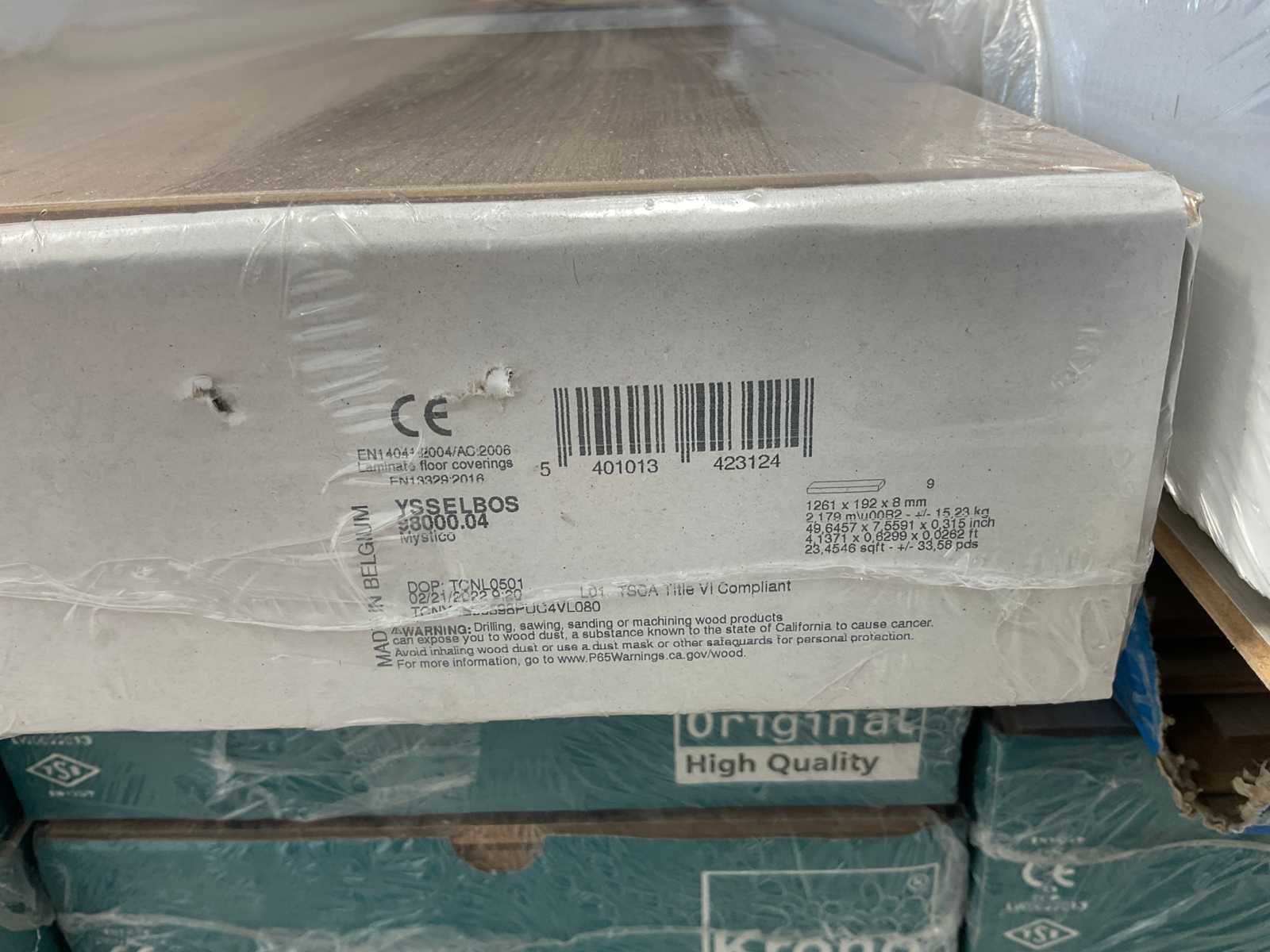 Mixpallet met diverse soorten laminaat – ongeveer 15 pakken, goed voor circa 33m². Bekijk de foto’s voor specificaties en details.