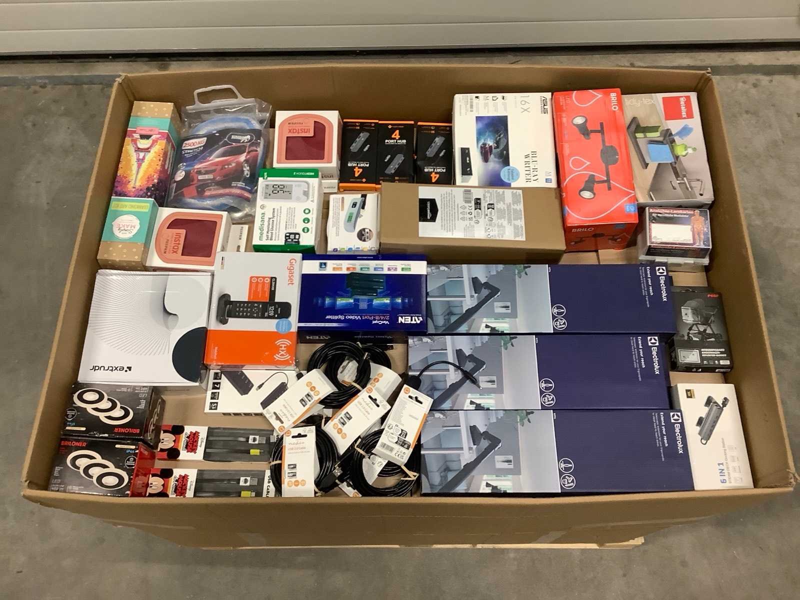 Partij overstockgoederen merken o.a. nedis, briloner en asus