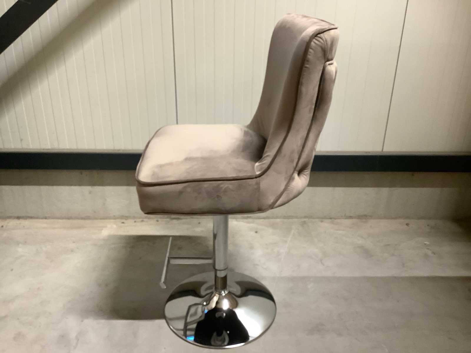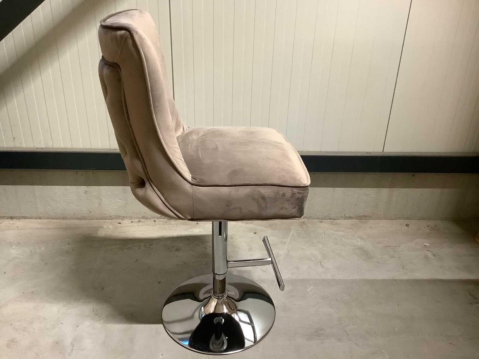 Dit betreft een product nieuw in doos. Let op: in hoogte verstelbaar. Bezorgtermijn 14 dagen Merk: Great Home Kleur: Taupe ( Chrome legs ) Lengte: 52cm Breedte: 61cm Hoogte: 110122cm Materiaal: Metaal / Stof