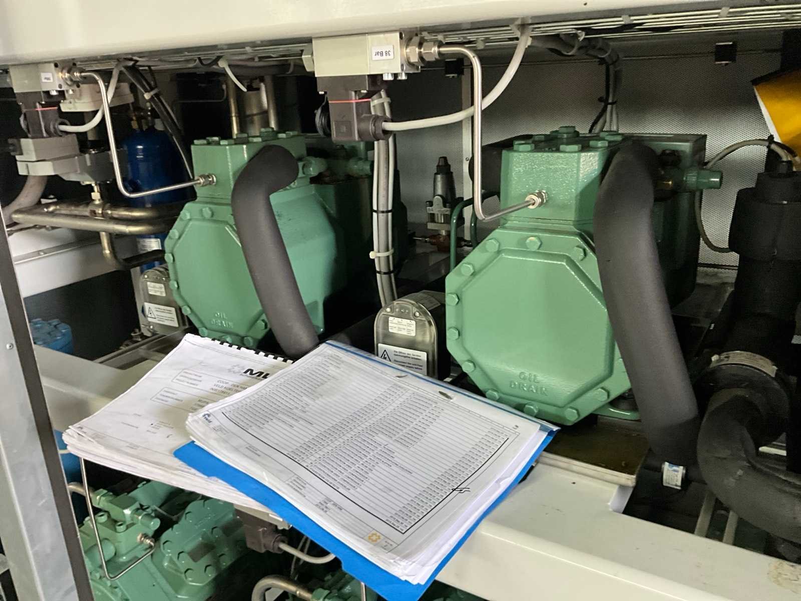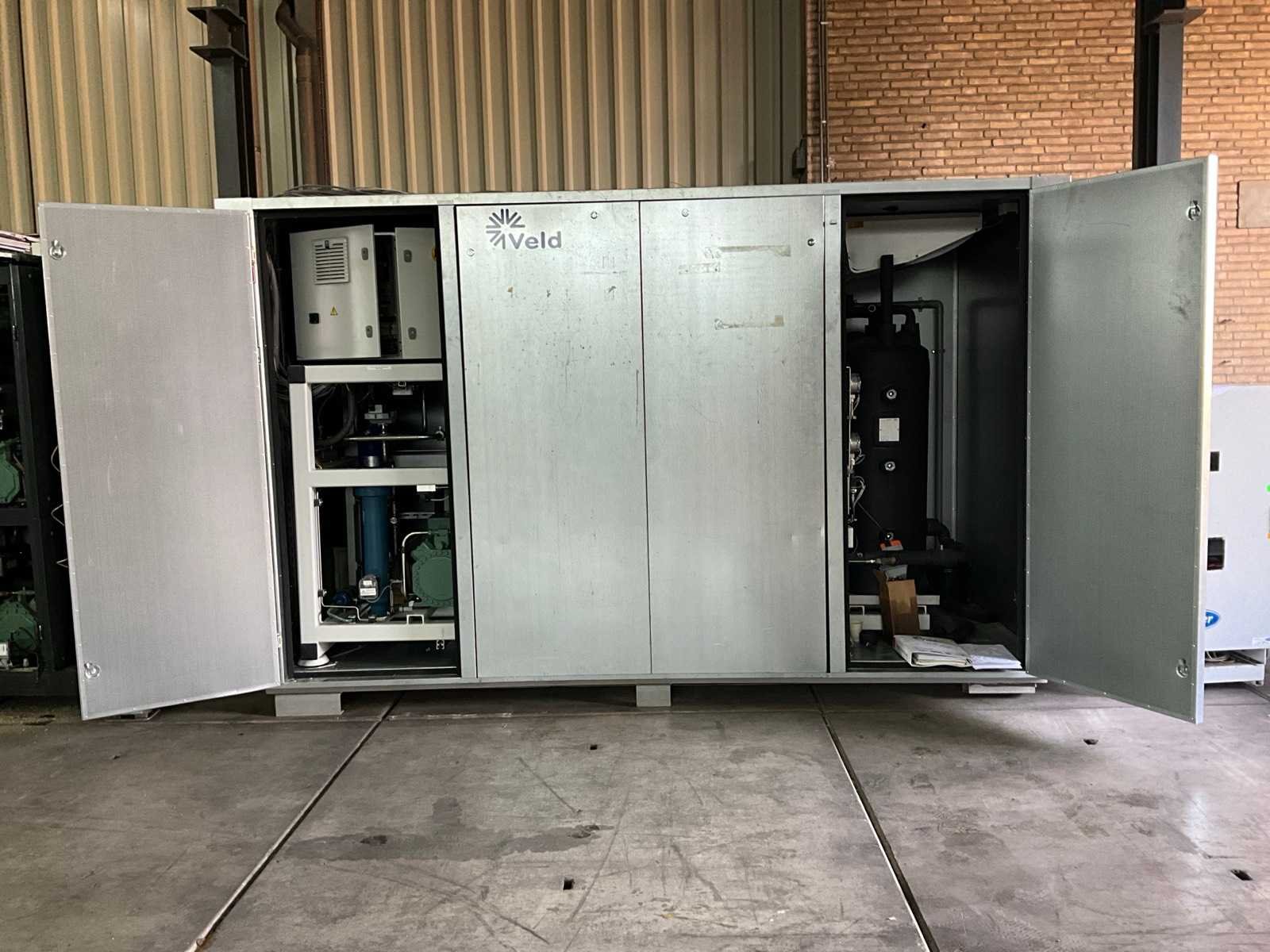 Merk: Veld Aansluiting: 400V Type koudemiddel: R 744 Totale afmeting Hoogte: 2360mm Totale afmeting Breedte: 3850mm Eigen gewicht: 3080kg Totale afmeting L: 1600mm Vermogen: 51kW Type: Booster B14kss B 51kW Bouwjaar: 2015
