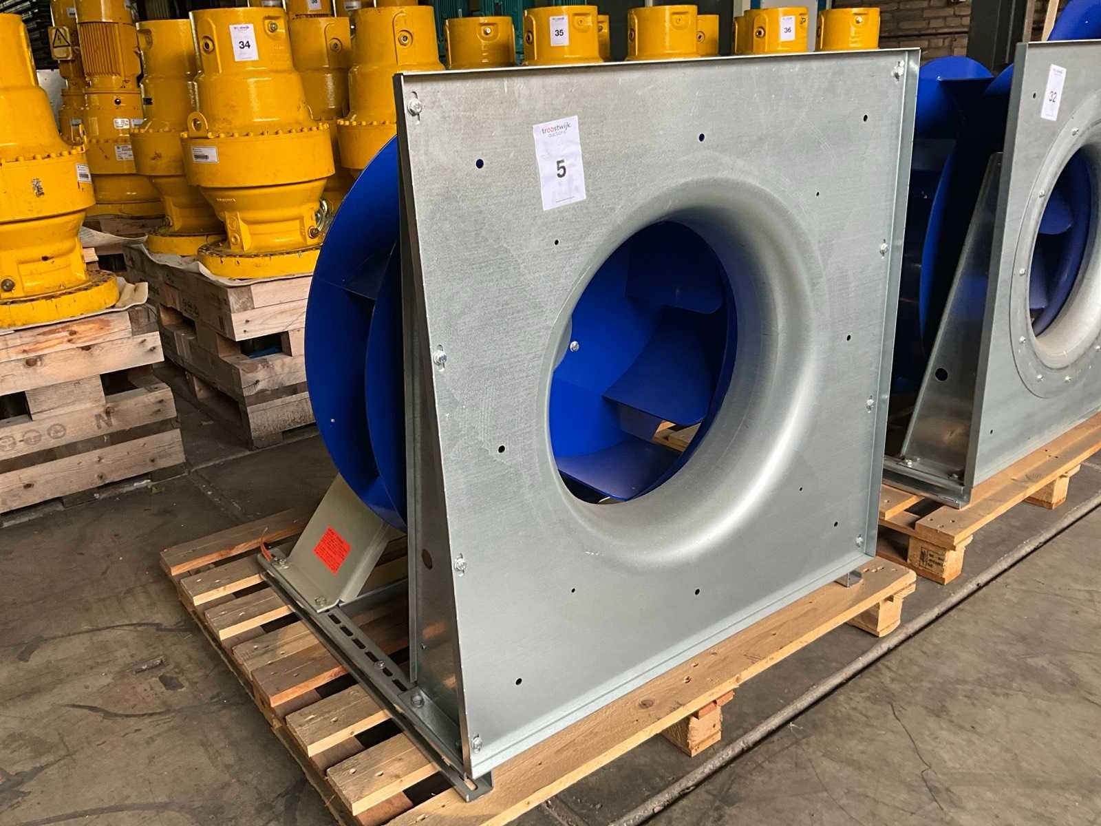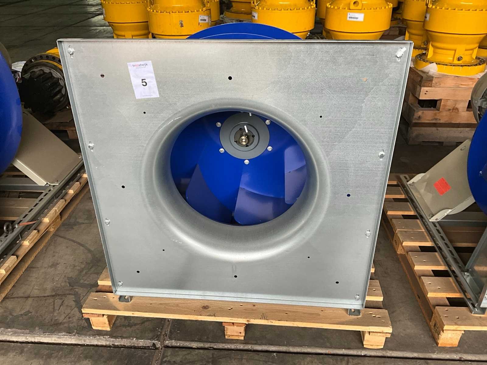 Flens maat circa: 96x96 cm, 1050 rpm, 400/690V, vermogen: 5.5 kW Merk: Zielh-Abegg / Siemens Product type: ER80C-8DN.H7.1R Gewicht: 177kg Lengte: 98cm Breedte: 96cm Hoogte: 101cm