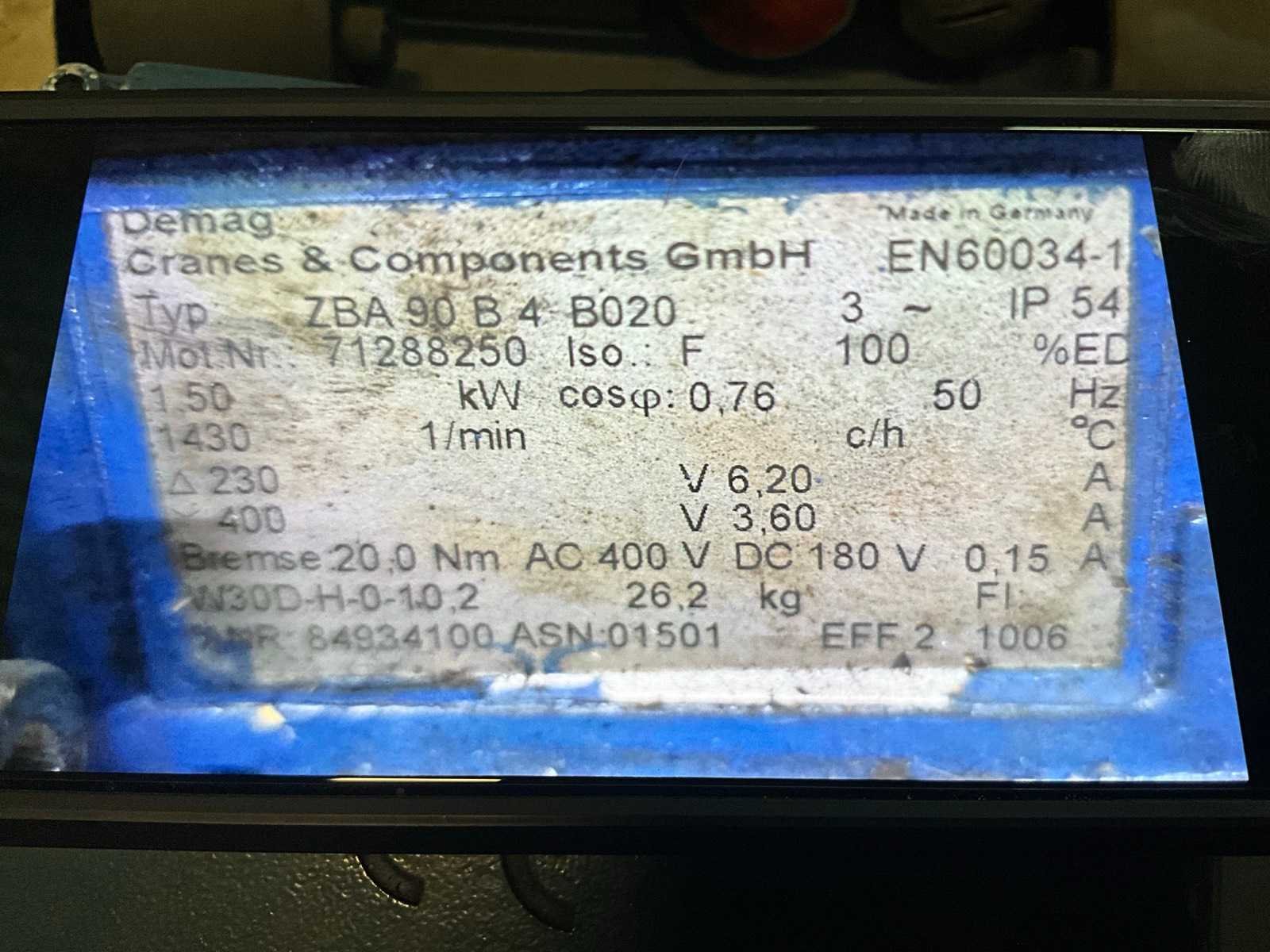 Gewicht (5x) 26,2 kg. Merk: Demag Product type: WUH30DD / ZBA90 B4 Aansluiting: 400V Lengte: 72cm Breedte: 20cm Hoogte: 30cm