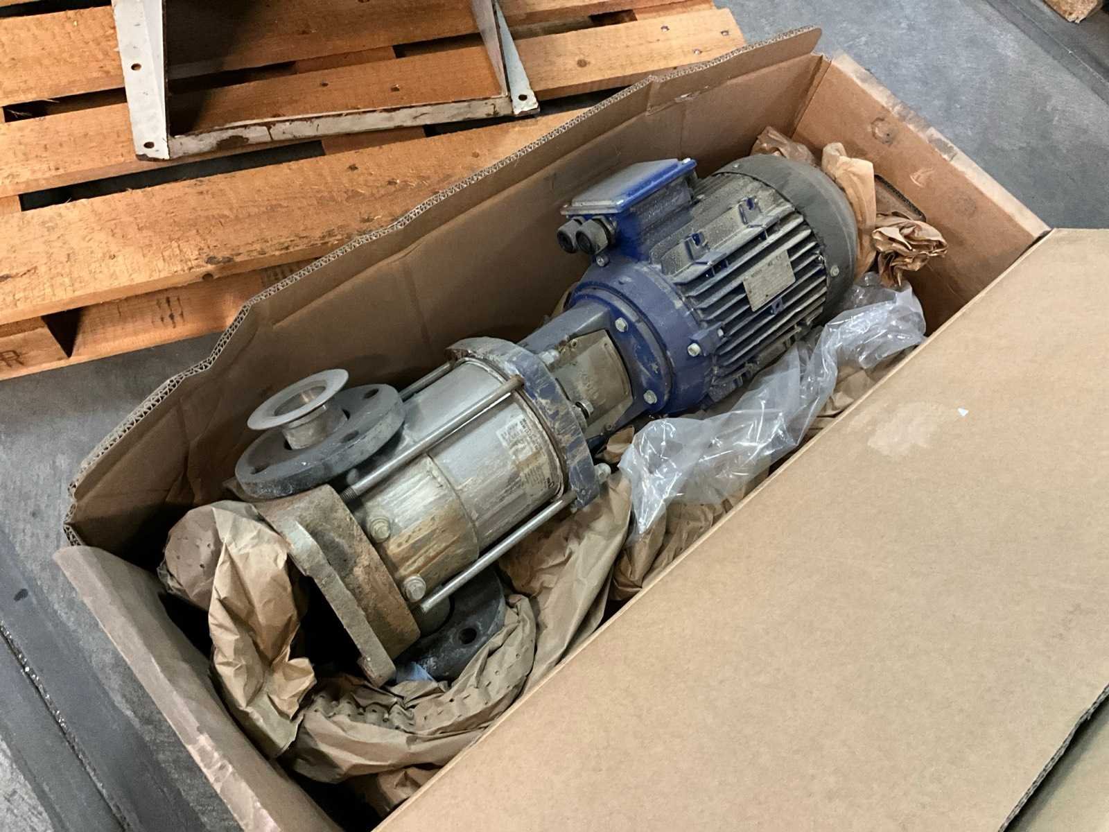 Voeding: 400 / 690 V AC, 50 Hz, Aansluiting: DN 50 Merk: KSB Type: Movitec VF 15/4 C Serienummer: 9975199640 / 000100 Vermogen: 4kW Eigen gewicht: 61.9kg Totale afmeting L: 320mm Totale afmeting Breedte: 230mm Totale afmeting Hoogte: 760mm