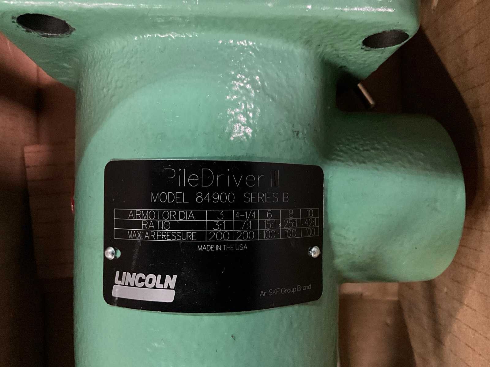 Werkdruk perslucht: 7–14 bar, uitgangsdruk vet tot circa 290 bar Merk: Lincoln Type: 84900 serie B Afmeting l: 200mm Afmeting b: 200mm Afmeting h: 650mm