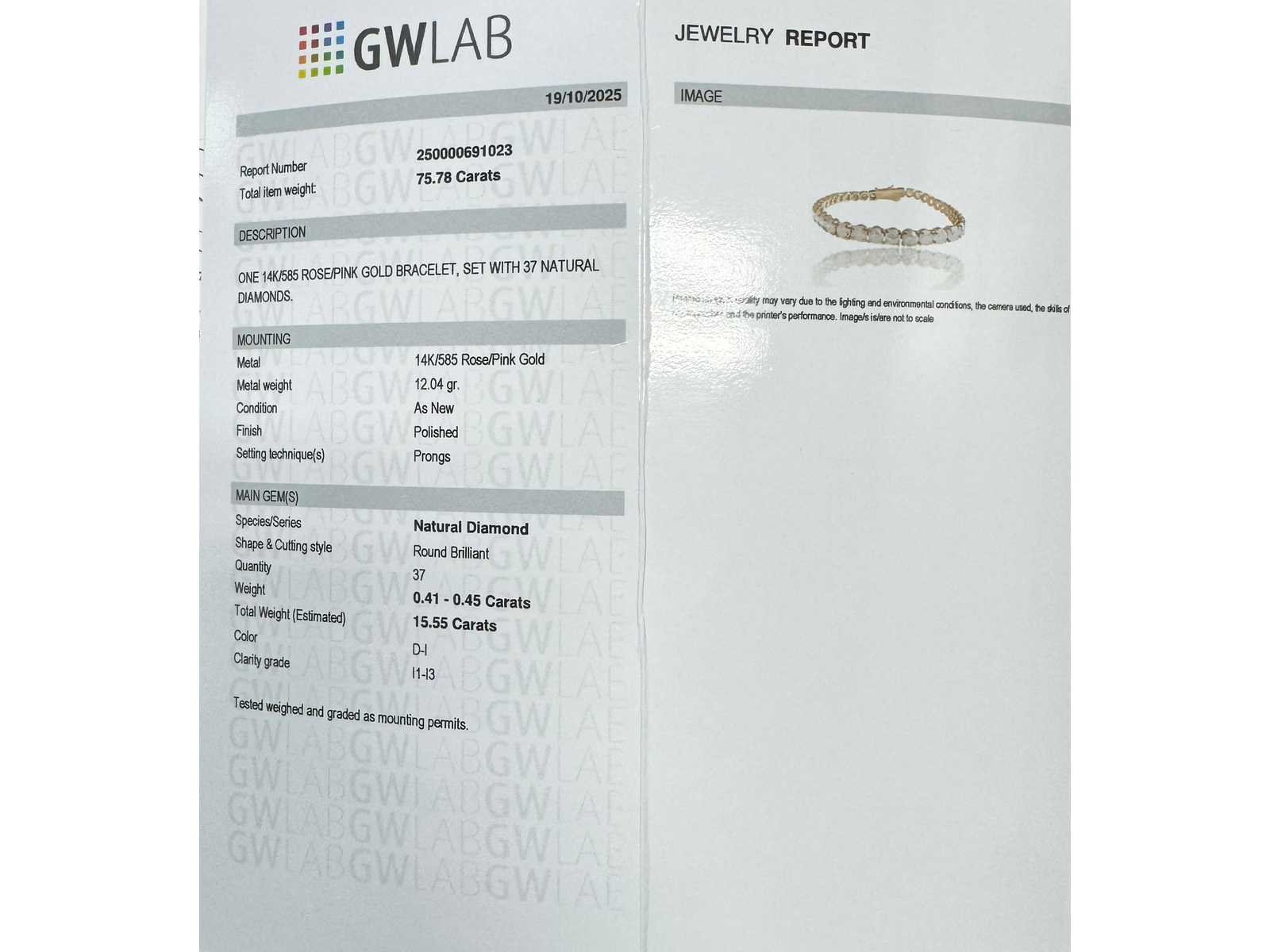 14 krt rosé gouden tennisarmband met natuurlijke diamant 15,55 crt