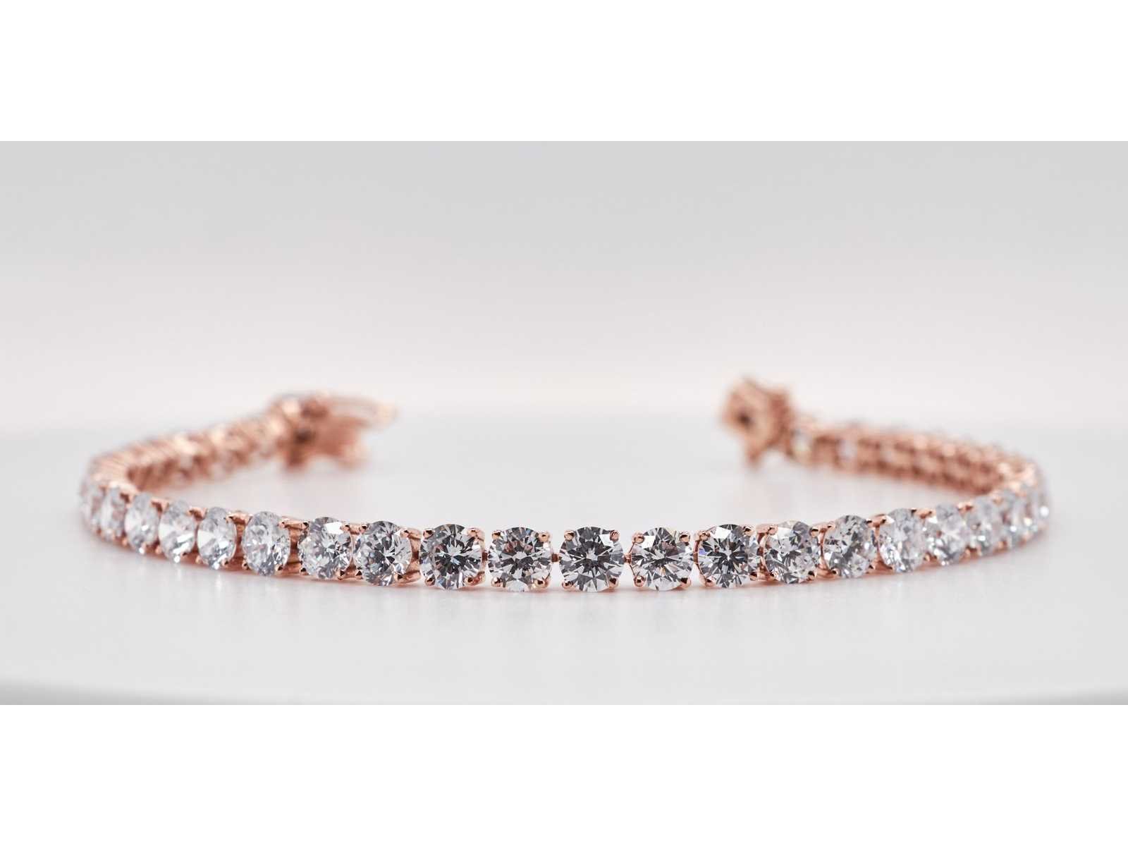 Ongebruikt Slijpvorm: Rond Briljant Carat: 15,55 crt Kleur: D-I Duidelijkheid: I1-I3 Bezichtiging op afspraak Model: Tennisarmband Materiaal: Rose goud Slijpvorm diamant: Briljant Slijpkwaliteit diamant: Briljant Slijpvorm edelsteen: Briljant Gewicht: 15.15g Lengte: 18cm Lage schatting: 13800€