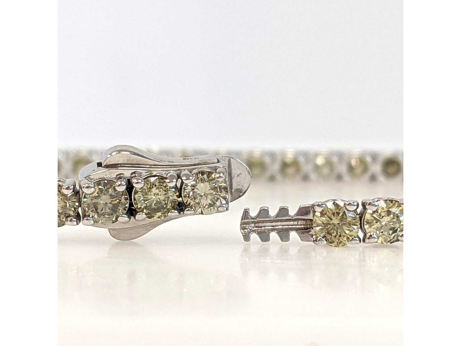 Witgouden tennisarmband met natuurlijke diamanten Geslepen: Rond Brilliant Karaat: 6,29 cttw / 55 stenen Kleur: Natuurlijk gekleurd Clarity: SI - I1 Grootte: 18 cm Bezichtiging op afspraak Materiaal: Witgoud Lengte: 18cm Certificaat: ja Lage schatting: 9800€