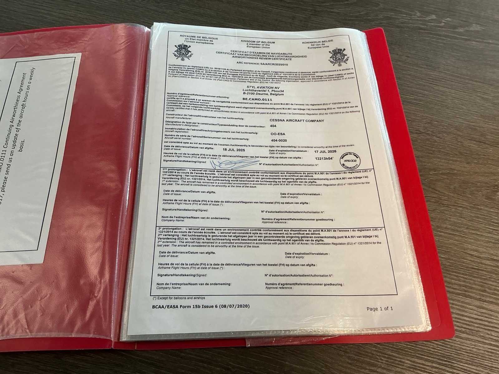 Let op! Bezichtiging na aanmelding en afhalen op Groningen Airport Eelde. Aanmelden voor de kijkdag op 9 december aanstaande van 13.00 tot 16.00 uur kan via: aanmelden@troostwijkauctions.com. AANMELDEN VOOR DE KIJKDAG IS VERPLICHT. ZONDER AANMELDING IS HET HELAAS NIET MOGELIJK OM DEEL TE NEMEN AAN DE KIJKDAG! U ontvangt na uw aanmelding nadere informatie met alle relevante details inzake de exacte locatie, parkeren en eventuele andere relevante details. Voor meer informatie of nadere inlichtingen kan contact worden opgenomen met de Customer Service van Troostwijk Auctions via: E-mail: aanmelden@troostwijkauctions.com Tel.: +31 (0) 20 249 06 94 Merk: Cessna 404 Titan II Courier ‘Long Endurance’ Bereik: 2550km Afgelezen urenstand: 13309hr Draaiuren rechter motor: 1332hr Draaiuren linker motor: 2238hr Kruissnelheid: 215ktas Aantal landingen: 9058 Max. laadvermogen: 3800kg Max. snelheid (knopen): 225ktas Registratie nummer: OO-ESA Serienummer: 404-0020 Bouwjaar: 1978 Type: 404 Titan Courier