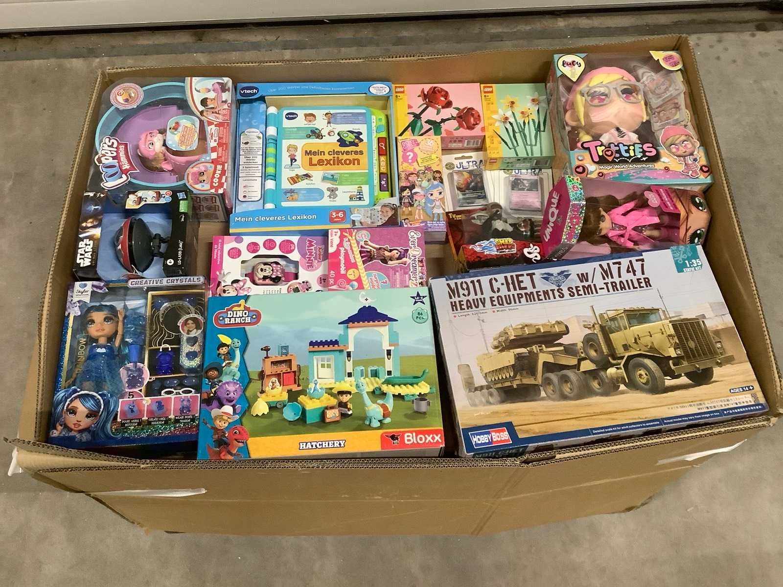 Dit betreft een partij speelgoed van een grote online retailer. De partij bestaat uit diverse speelgoed categorieën. Ongecontroleerd: werking onbekend (mix van werkend, incompleet, beschadigd, te gebruiken voor onderdelen). Kom op de kijkdag om te om zo een goed beeld te krijgen van de reden van retour. Bezorgtermijn 14 dagen