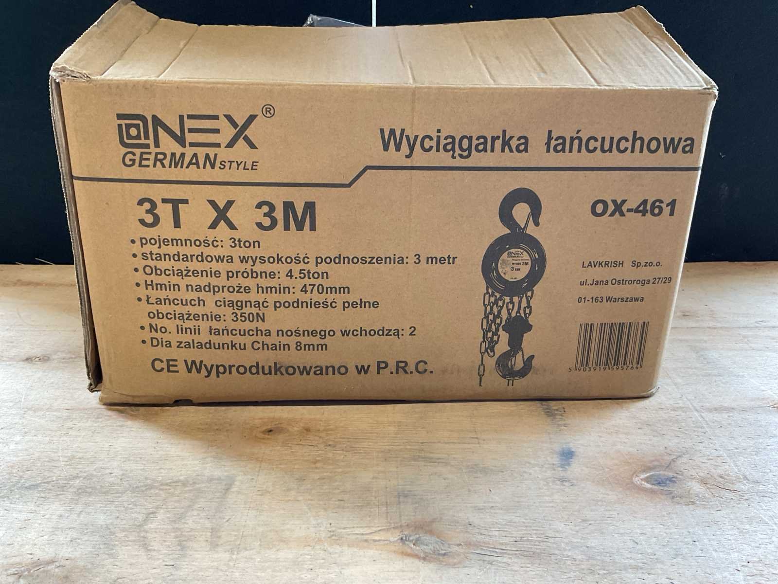 Merk: Onex German Style Type: OX-461 Bouwjaar: 2025 Hijsvermogen: 3000kg Max. hefhoogte: 3m Eigen gewicht: 15.8kg Totale afmeting L: 340mm Totale afmeting Breedte: 230mm Totale afmeting Hoogte: 180mm