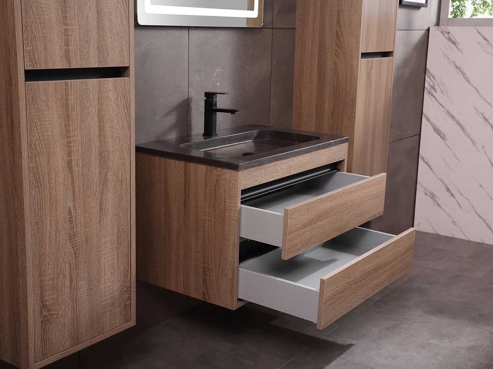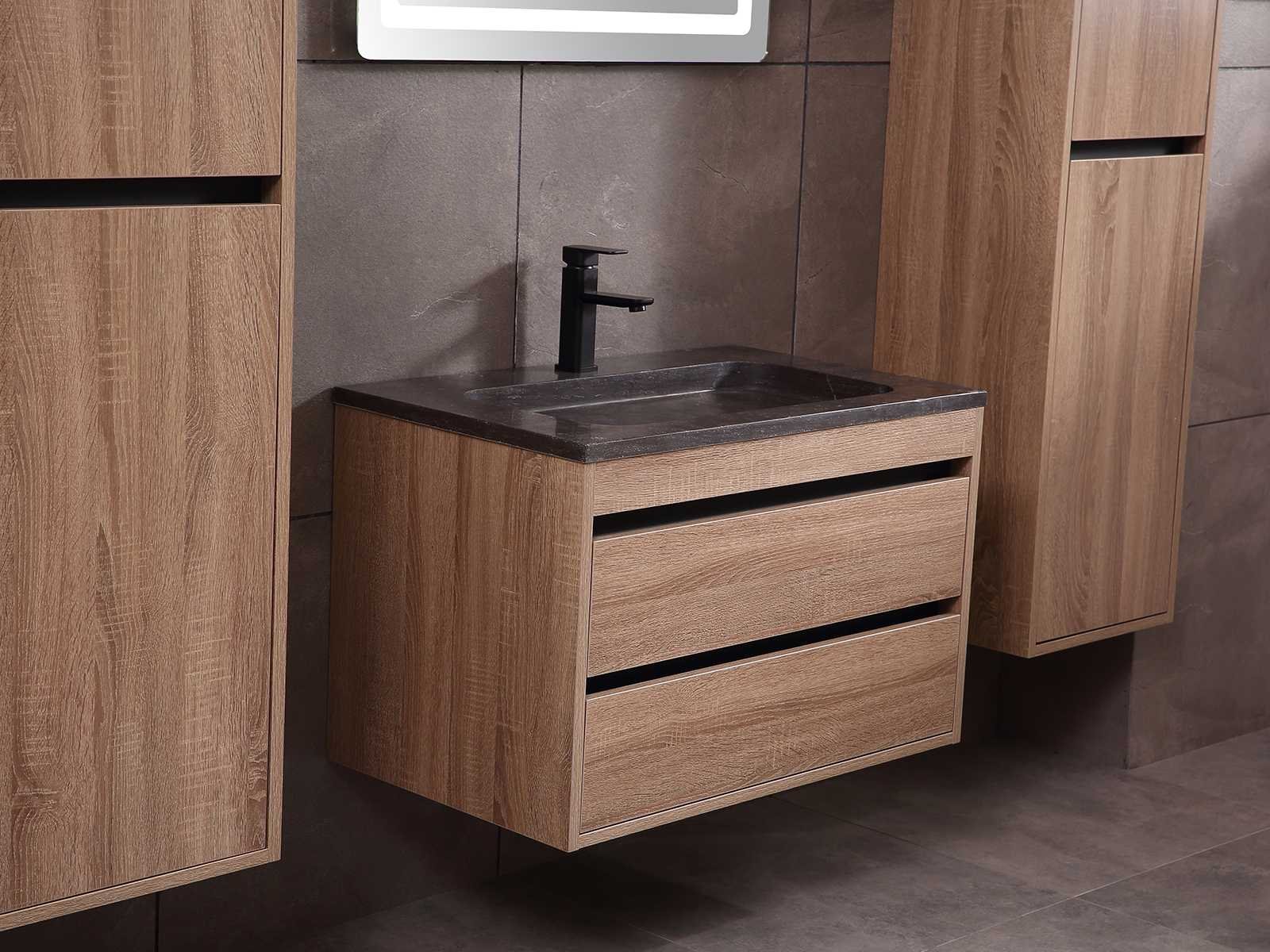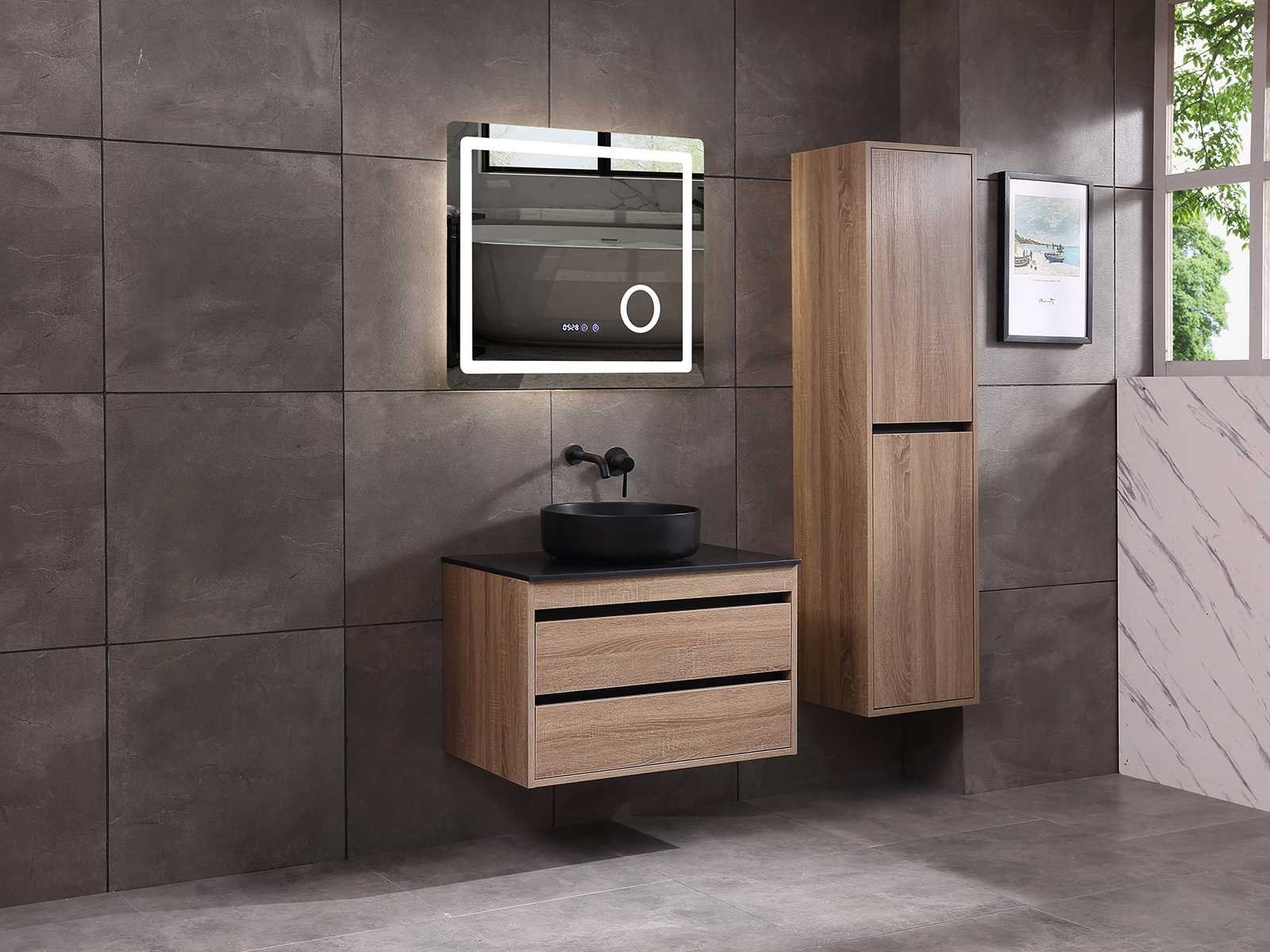 Afmeting meubel: bxdxh 80x49x50cm - hangkast 40x35x160cm, Kleur bruin eiken, Materiaal 2cm 5-laags multiplex(zeer sterk en vochtbestendig), Hangkast softclose deuren en extra planchets (hangkast is universeel en kan zowel links als rechts naast het meubel gehangen worden), Kranen exclusief, Lades 2 stuks met softclose, Wastafel natuursteen of solid surface (keuze uit diverse modellen van de laatste foto's vaste of losse wasbakken met een mat witte of mat zwarte solid surface top, vaste bakken zijn ook zonder kraangaten beschikbaar zodat u een muurkraan kunt gebruiken! Keuze graag aangeven op de afhaaldag), Spiegel ledspiegel met ledverlichting(6000K led-dioden)/vergrootglas/verwarming(anti condens)/klok met touchscreen (mag ook voor een ronde spiegel geruild worden indien gewenst of tegen een kleine meerprijs een luxure variant met display, bluetooth en speakers, neem daarvoor contact met ons op voor een passende aanbieding op info@mawialux.nl), Afvoeren exclusief , Conditie: Nieuw in doos, Bijzonderheden 2 jaar garantie, compleet met installatiekit, mat zwarte aluminium grepen achter de inkepingen van de lades en deuren, natuursteen wastafel is behandeld met coating, zeer hoge kwaliteit, Extra's de hangkast mag geruild worden voor een kraan en afvoerset naar keus(graag aangeven op de afhaaldag) of als u een extra hangkast nodig heeft kunt u ons ook mailen voor een passende aanbieding Merk: mawialux Hoogte: 50cm Lengte: 49cm Breedte: 80cm Materiaal: 2cm 5-laags multiplex(zeer sterk en vochtbestendig) Kleur: bruin eiken Spiegel met verlichting: ja Lades: 2