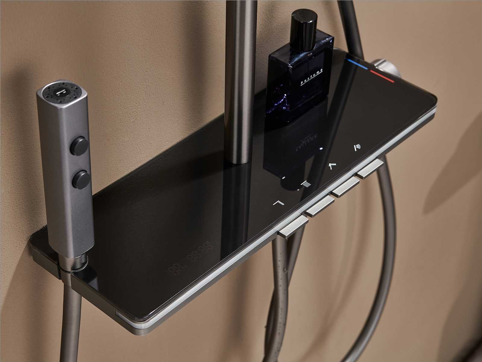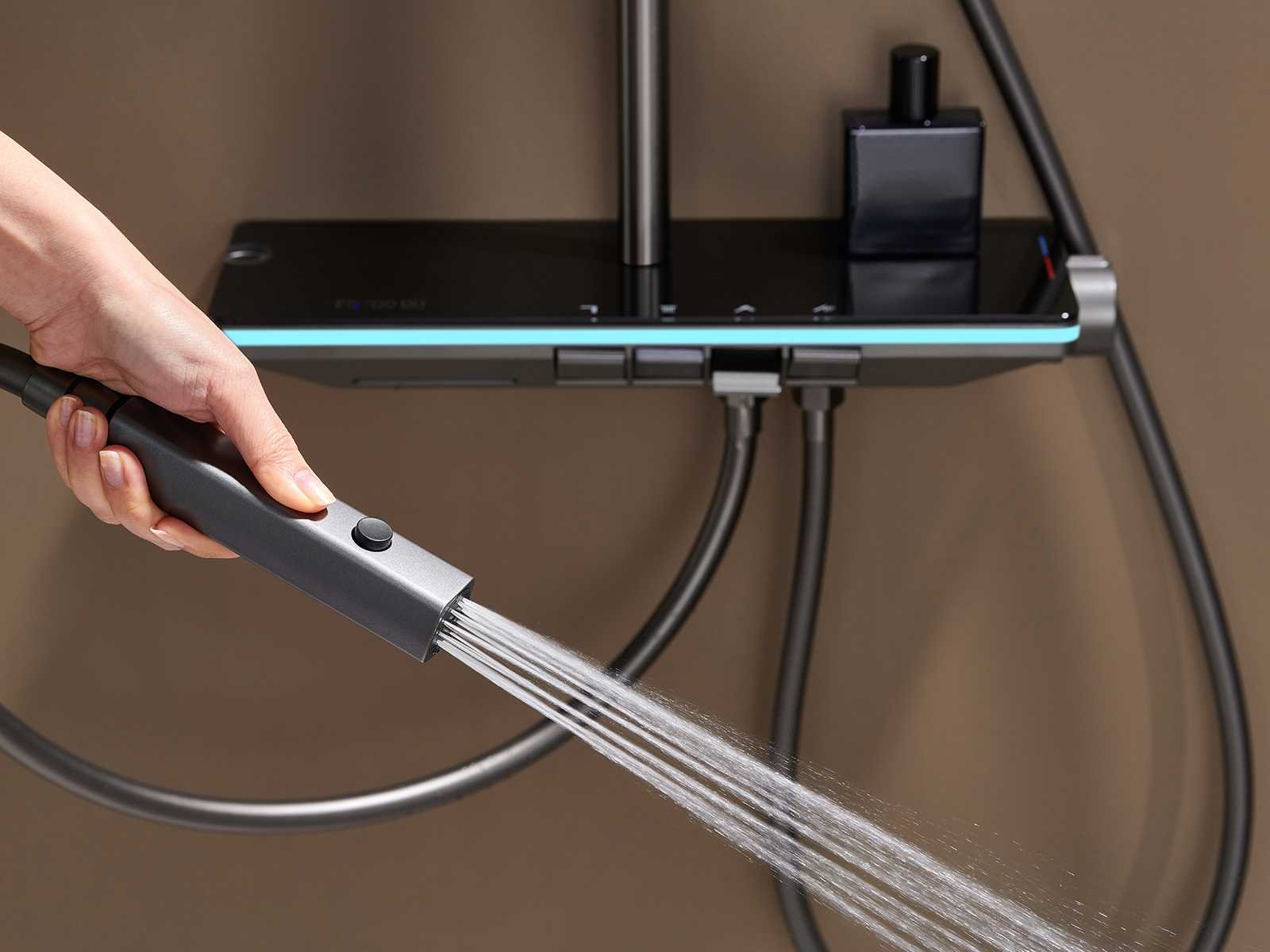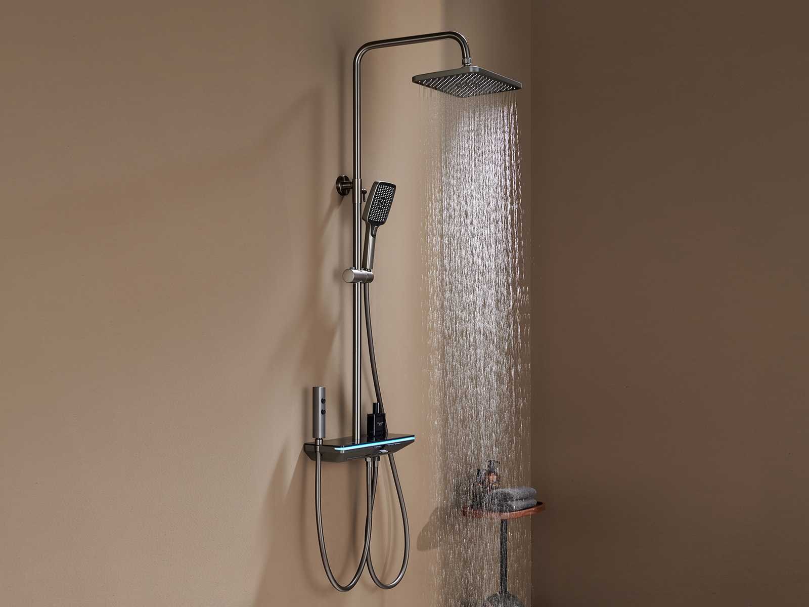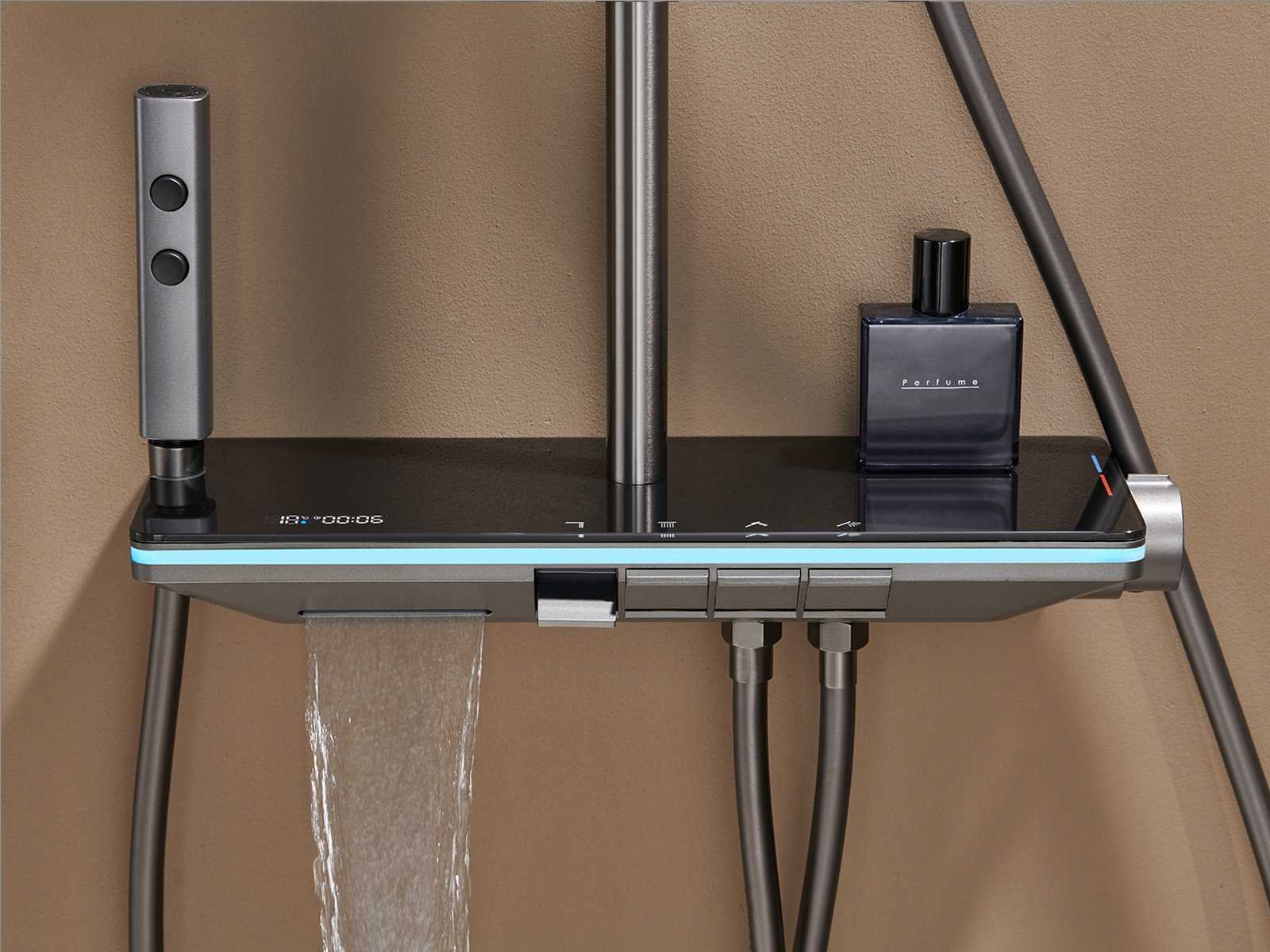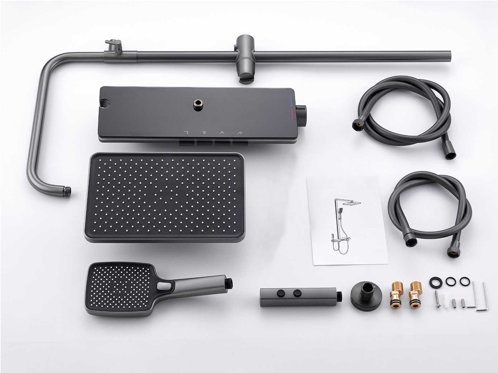De doucheset is uitgerust met vier functies. Hoofddouche, 2x losse handdouche en badkraan uitloop. Door de aanwezigheid van de baduitloop is deze doucheset uitermate geschikt voor douchebaden. Naast deze vier functies is de doucheset uitgerust met een digitaal display waarop je in een oogopslag de temperatuur van het water kunt aflezen. Daarnaast word er gebruik gemaakt van keramische binnenwerken zodat je jarenlang plezier zult hebben van jouw regendoucheset. Doordat de doucheset in hoogte verstelbaar is past hij in vrijwel elke badkamer! Hoogte verstelbaar 80 - 120 cm. Materiaal: RVS / messing. Kleur: gunmetal grey of mat wit (keuze aangeven op de afhaaldag) Kraan: mengkraan. Binnenwerk: keramisch. Douchekop: 30x20 cm kantel/draaibaar. Handdouche: verstelbaar met doucheslang en 2 functies. Voorzien van: digitale micromotor aansturing door middel van waterflow. Geen stroom nodig. Temperatuur digitaal afleesbaar. Tijdsduur digitaal afleesbaar. Keramisch binnenwerk. Badkraan uitloop (waterval). Bijzonderheden: waterfuncties worden bediend door druktoetsen (meerdere functies hierdoor tegelijk mogelijk), h.o.h. afstand van 150 mm. Merk: Mawialux Model: Julian Kleur: Gunmetal grey of mat wit