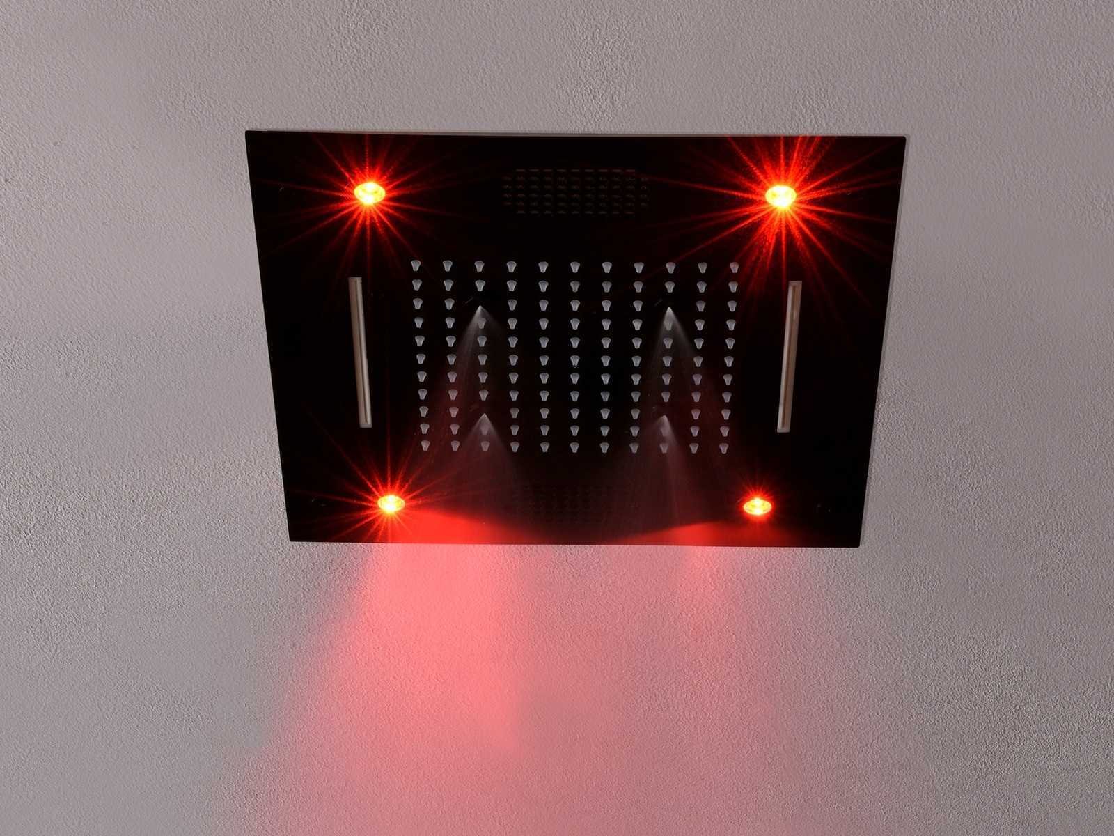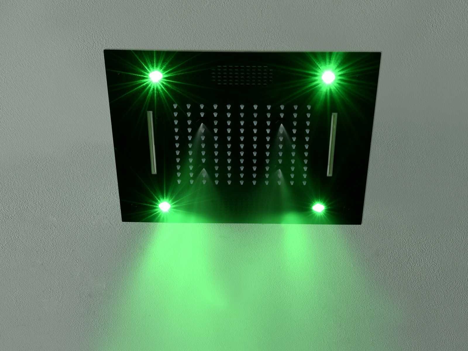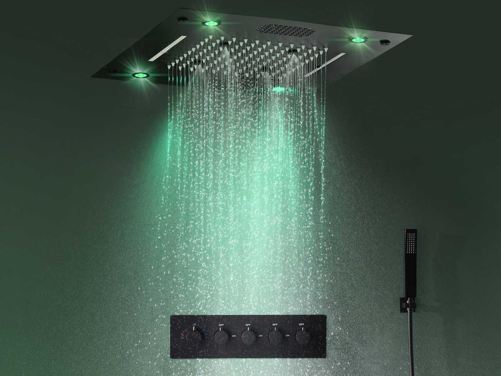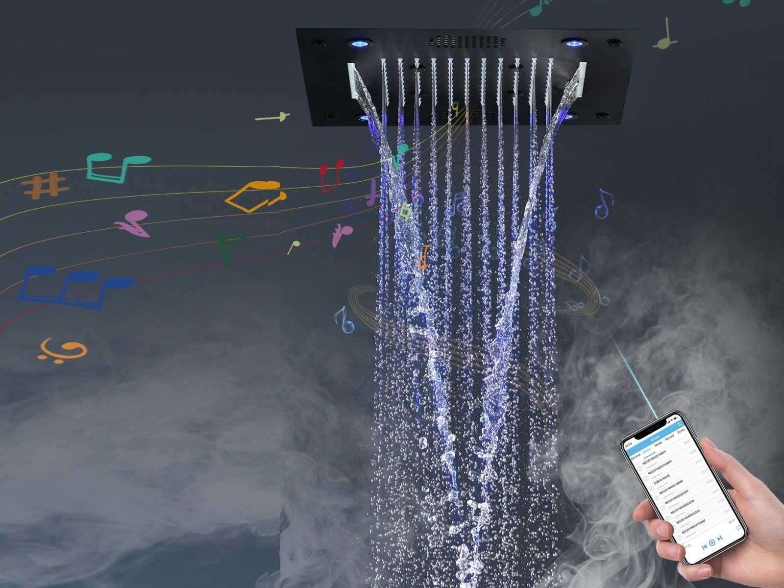 Inbouw regendouche met radio en ledverlichting, Materiaal messing en 304 rvs, Kraan smart control thermostaatkraan met 4 regelknoppen (houd de temperatuur altijd constant), Binnenwerk keramisch, Douchekop 40x40 cm met 3 functies uit 304 rvs en 4 stuks ledverlichting, Handdouche verstelbaar met doucheslang en messing ophanging, Voorzien van ingebouwde bluetooth met 2 speakers, douchekop met 3 functies regendouche met 2 watervallen en 4 stuks vernevelaars, badkraan uitloop, 4 stuks ledverlichting met instelbare kleuren welke bedienbaar zijn met de meegeleverde afstandsbediening, kunststof wateruitlopen om gemakkelijk kalkaanslag te verwijderen, keramisch binnenwerk goed voor 800.000 keer open/dicht zonder lekkage, plaatdikte: 12 UM, werkdruk: 2-16kgf/cm2, werking temperatuur: 0 tot 90 graden Celsius, anti kalk behandeld, Conditie: Nieuw, Bijzonderheden 2 jaar garantie, hoge kwaliteit, alle water functies kunnen allemaal tegelijk of onafzondelijk gebruikt/geregeld worden Handdouche: verstelbaar met doucheslang en messing ophanging. Voorzien van: 4 stuks LED verlichting in de douchekop welke met externe voeding te bedienen is (voeding meegeleverd). Douchekop met 2 functies: vernevelaar en regendouche. Kunststof wateruitlopen om gemakkelijk kalkaanslag te verwijderen. Keramisch binnenwerk. Merk: Mawialux Model: Tiger Kleur: Mat zwart Lengte: 40cm Breedte: 40cm