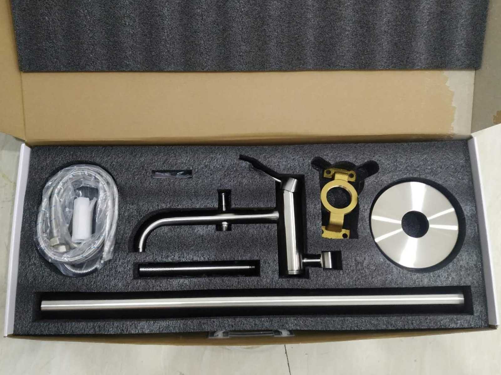 Materiaal messing, keuze kleuren: gunmetal grey of geborsteld rvs (kleurkeuze aangeven op de afhaaldag), Binnenwerk keramisch, Hoogte 90 cm, Handdouche ja met flexibele doucheslang en verstelbare ophanging, Voorzien van mengkraan, hendel voor schakeling tussen Handdouche of badkraanuitloop, vloerplaat, waterleidingen, aansluitmateriaal, LET OP: dit artikel kan gratis bezorgd worden binnen de Benelux(neem hiervoor contact met ons op via info@mawialux.nl) Merk: Mawialux Model: lagos Kleur: beschikbaar in 2 kleuren