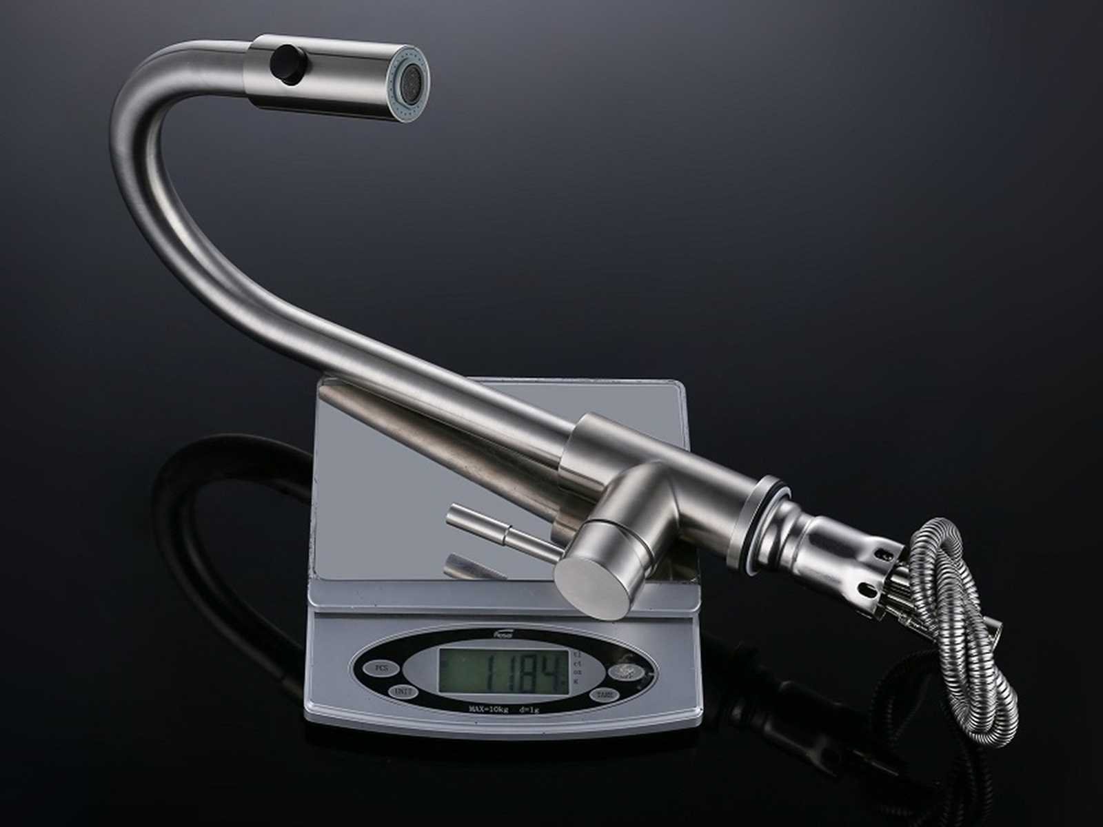 Materiaal 304 rvs, hoogte 42 cm, gewicht 2kg, voorzien van sproeikop met 2 functies, uitloop 360 graden draaibaar, waterslangen met aansluitmateriaal, sproeikop uitneembaar met extra lange flexibele waterslang LET OP: boven een bod van 50,- euro excl BTW en veilingkosten versturen we dit product gratis binnen de benelux naar u toe per post. Merk: Mawialux Model: Viola Kleur: RVS