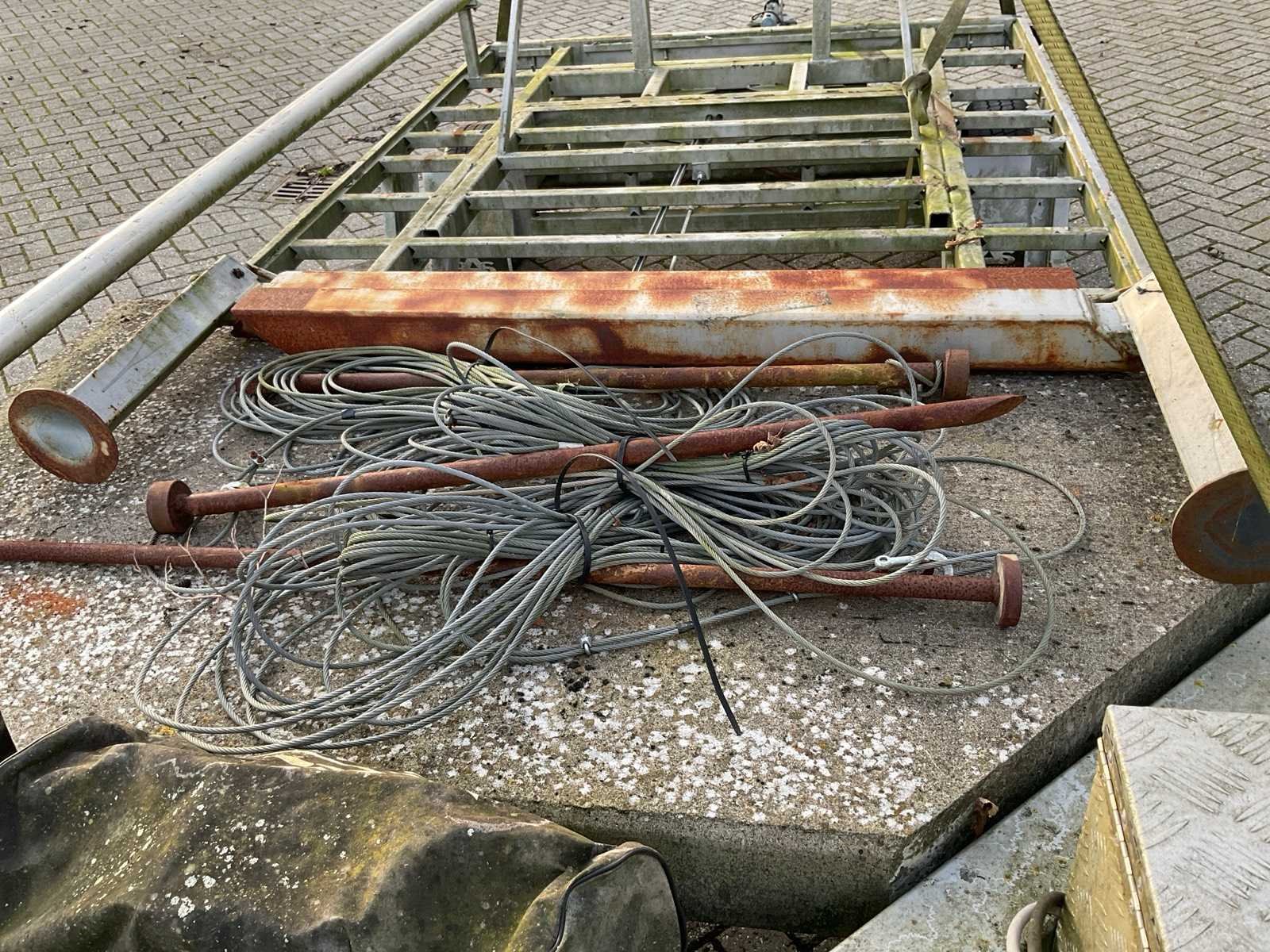 Betreft schamel aanhangwagen met 4-delige uitschuifbare mast, mastdelen zijn elk 7 meter lang/hoog, voorzien van 4x steunpoot, ballast gewicht, schoor staalkabels met haringen, opbergkist voorzien van accu voor de 2x elektrische lier van de zendmast, laadvloer hoogte 660mm, Merk: Anssems Type: DS-3 Bouwjaar: 2001 Chassisnummer: XLJ0S335000000090 Aantal assen: 3 Laadbak afmeting l: 590cm Laadbak afmeting b: 200cm Ledig gewicht: 1140kg Laadvermogen: 2360kg Datum eerste toelating: 2001-01-25 Datum eerste toelating (NL): 2001-01-25 Kenteken: WZ-90-SL Hoogte: 290cm Lengte: 880cm Breedte: 200cm Nationaliteit documenten: Nederlandse Zelf rijdend exporteren: Ja