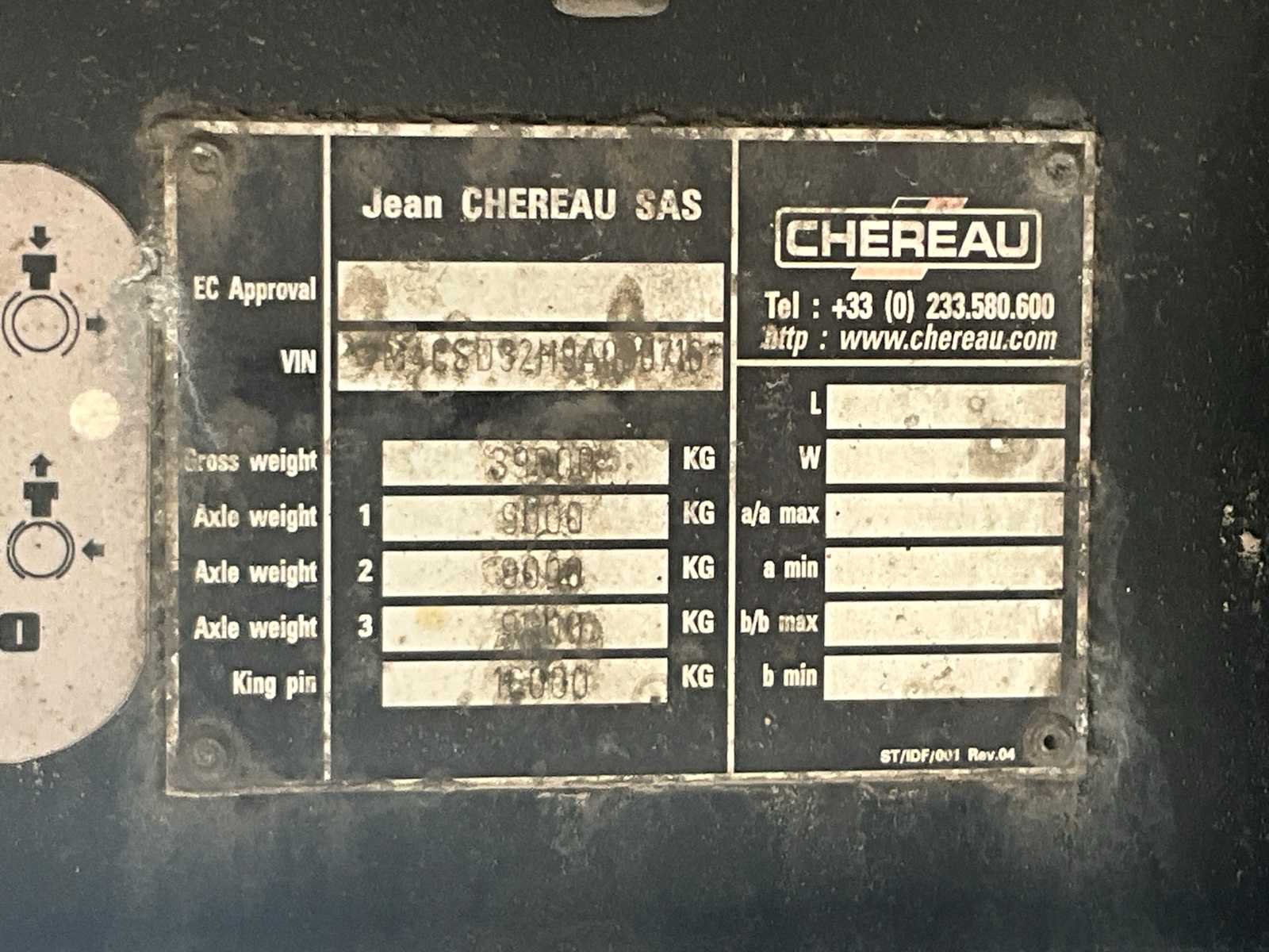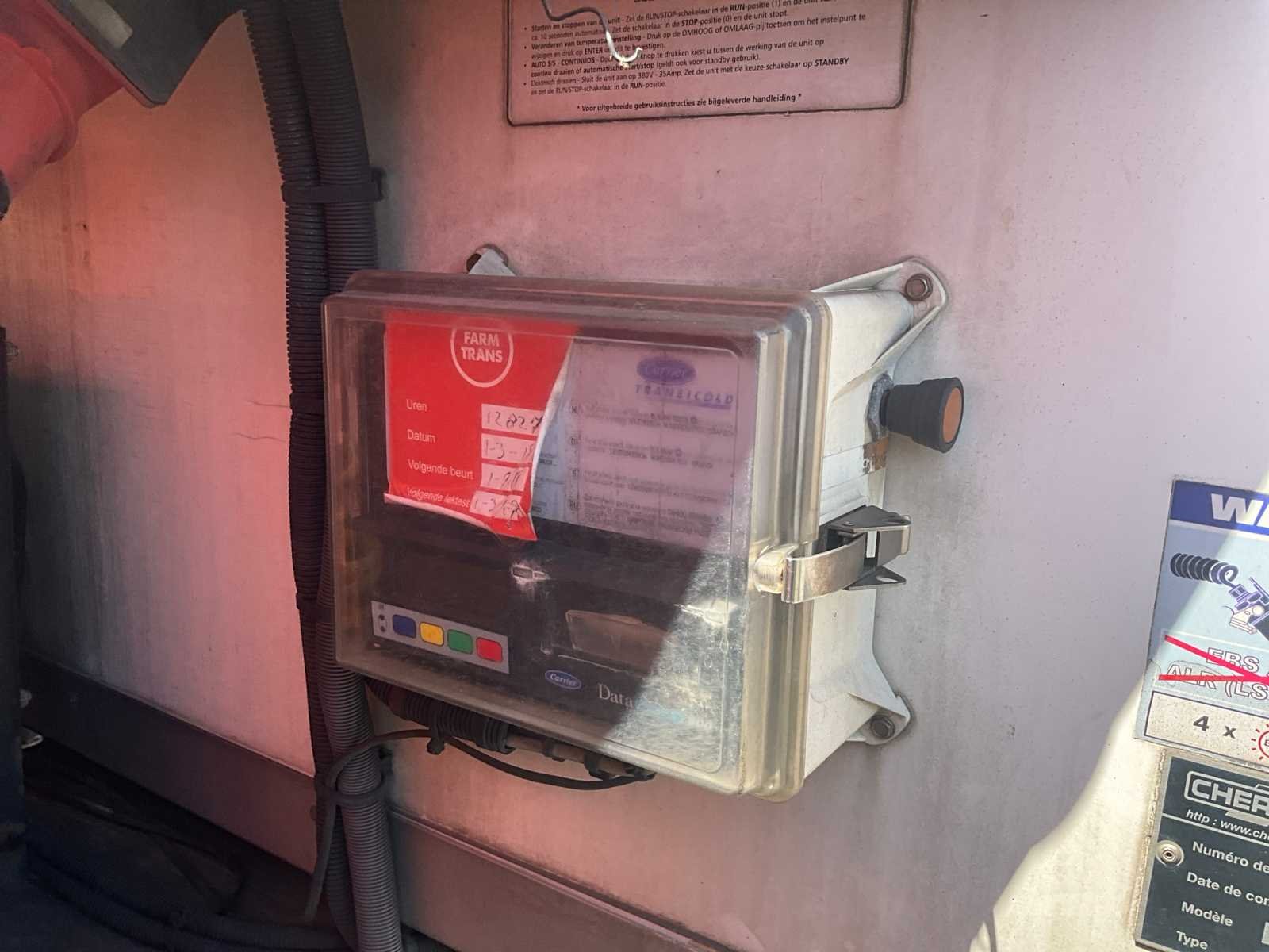 Carrier Vector 1850Mt koelunit, 2x 7-polige stekker 15-polige stekker, ABS stekker, 3-polige stekker, 3x SAF 9T as, schijfremmen, luchtvering, Dhollandia DHSMR80 2000kg laadklep, Merk: Chereau Type: CSD3 Bouwjaar: 2009 Chassisnummer VIN: VM4CSD32H9A000716 Kenteken: OK-08-VB Datum eerste toelating (NL): 2009-03-11 Datum eerste toelating: 2009-03-11 APK vervaldatum: 2024-06-19 Aantal assen: 3 Laadvermogen: 29300kg Koeltrailer: true Hydraulische laadklep: true Eigen gewicht: 9700kg Totale afmeting L: 14040mm Totale afmeting Breedte: 2600mm Totale afmeting Hoogte: 4000mm
