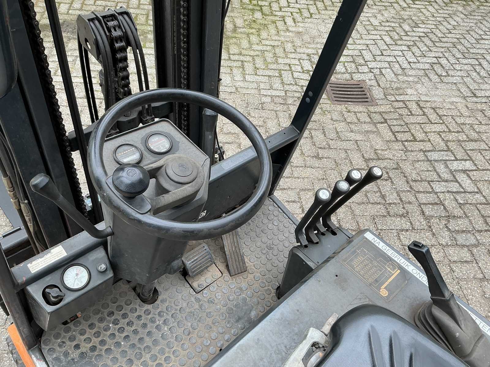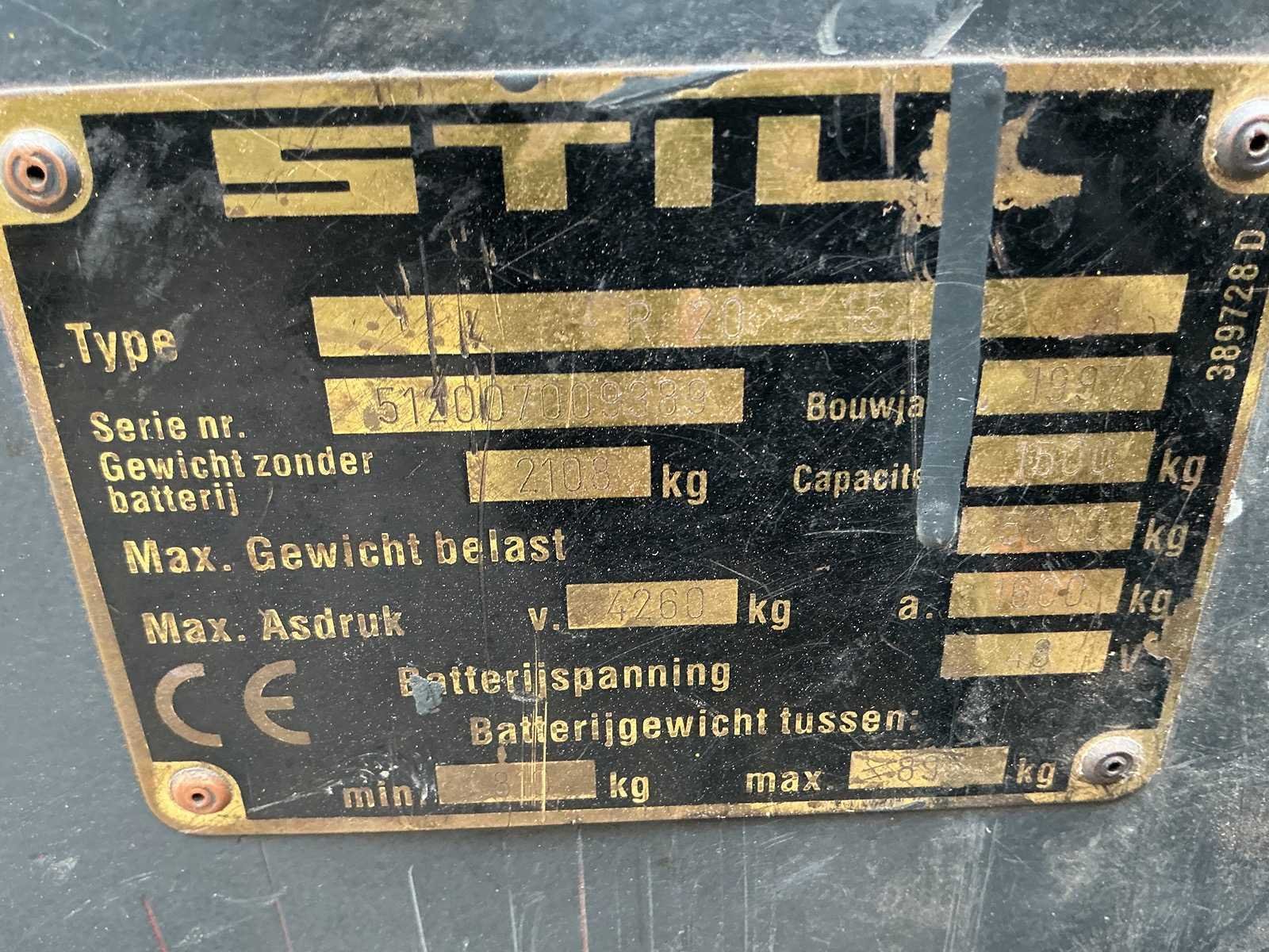 Merk: STILL Type: R20-15 Bouwjaar: 1997 Serienummer: 512007009839 Mast: Triplex Aantal wielen: 3 Afgelezen urenstand: 1238 Free-lift: true Side-shift: true Triple mast: true Hefvermogen: 1500kg Lepellengte: 1000mm Hefhoogte: 4820mm Minimale doorrijhoogte: 2140mm