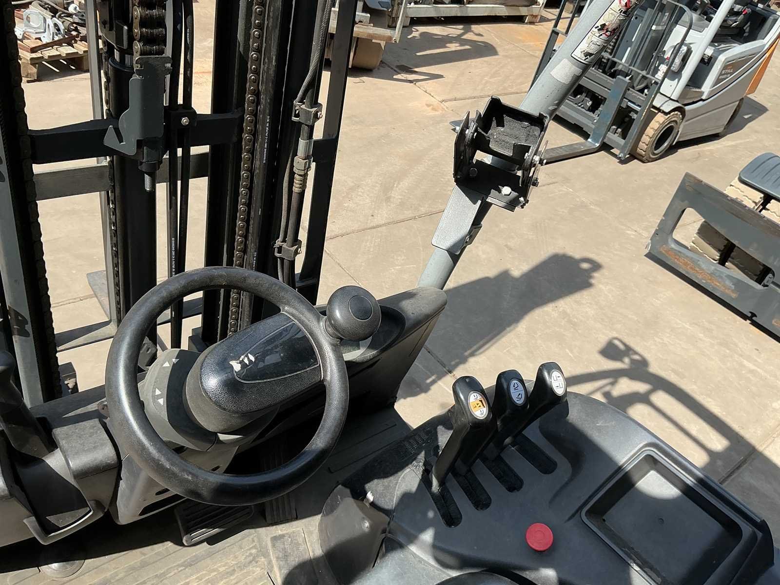 Merk: STILL Type: RX20-18 Bouwjaar: 2011 Serienummer: 516213B00154 Mast: Triplex Aantal wielen: 3 Afgelezen urenstand: 11318 Free-lift: true Side-shift: true Triple mast: true Hefvermogen: 1800kg Lepellengte: 1000mm Hefhoogte: 6180mm Minimale doorrijhoogte: 2760mm
