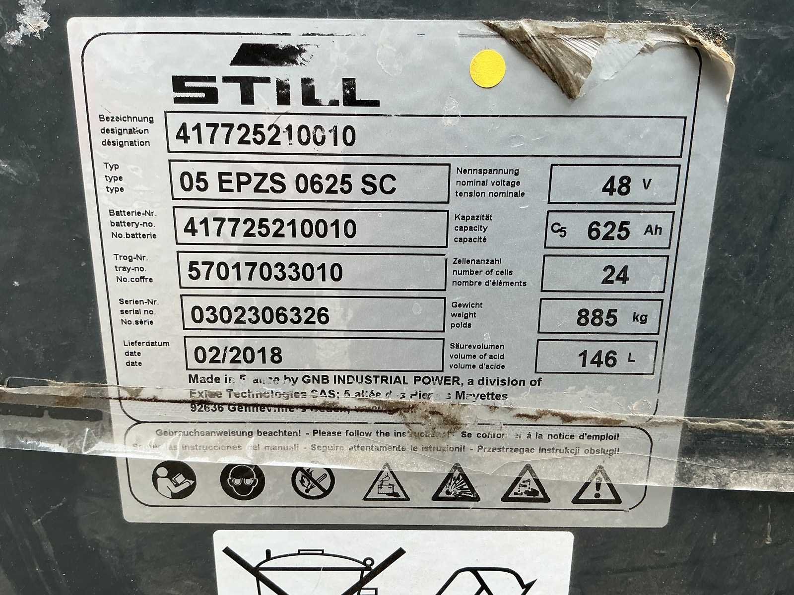 Merk: STILL Type: RX20-20 Bouwjaar: 2015 Serienummer: 516216F01256 Aantal wielen: 4 Afgelezen urenstand: 13058 Free-lift: true Side-shift: true Triple mast: true Hefvermogen: 2000kg Lepellengte: 1600mm Hefhoogte: 4765mm Minimale doorrijhoogte: 2160mm