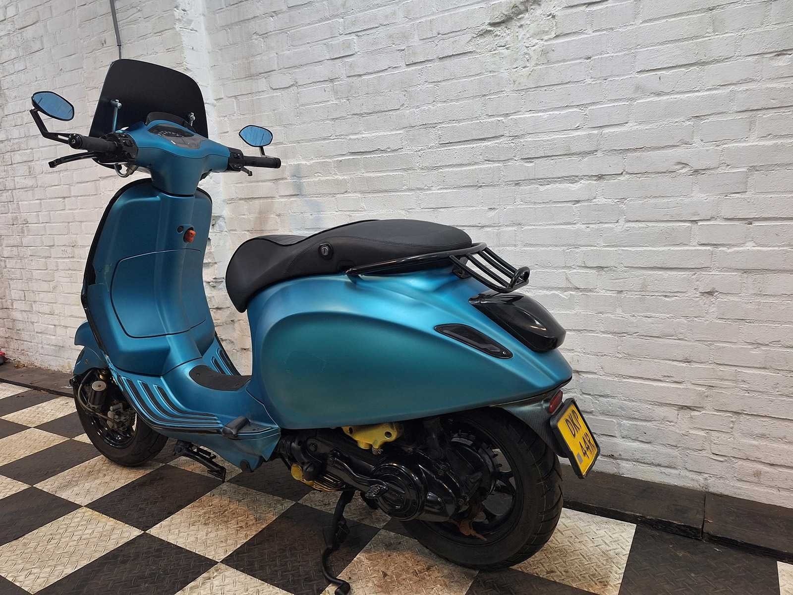 1 sleutel aanwezig voor scooter. Accessoires: laag windscherm, led verlichting, 80cc, polini sportuitlaat, diverse Zelioni onderdelen, speciale velgen Merk: Piaggio Vespa Model: 45 km bromscooter 4takt Type: Sprint Snelheid: 45km/h Kenteken: DKP44R Datum eerste toelating: 18-10-2017 Bouwjaar: 2017 Kleur: groen blauw