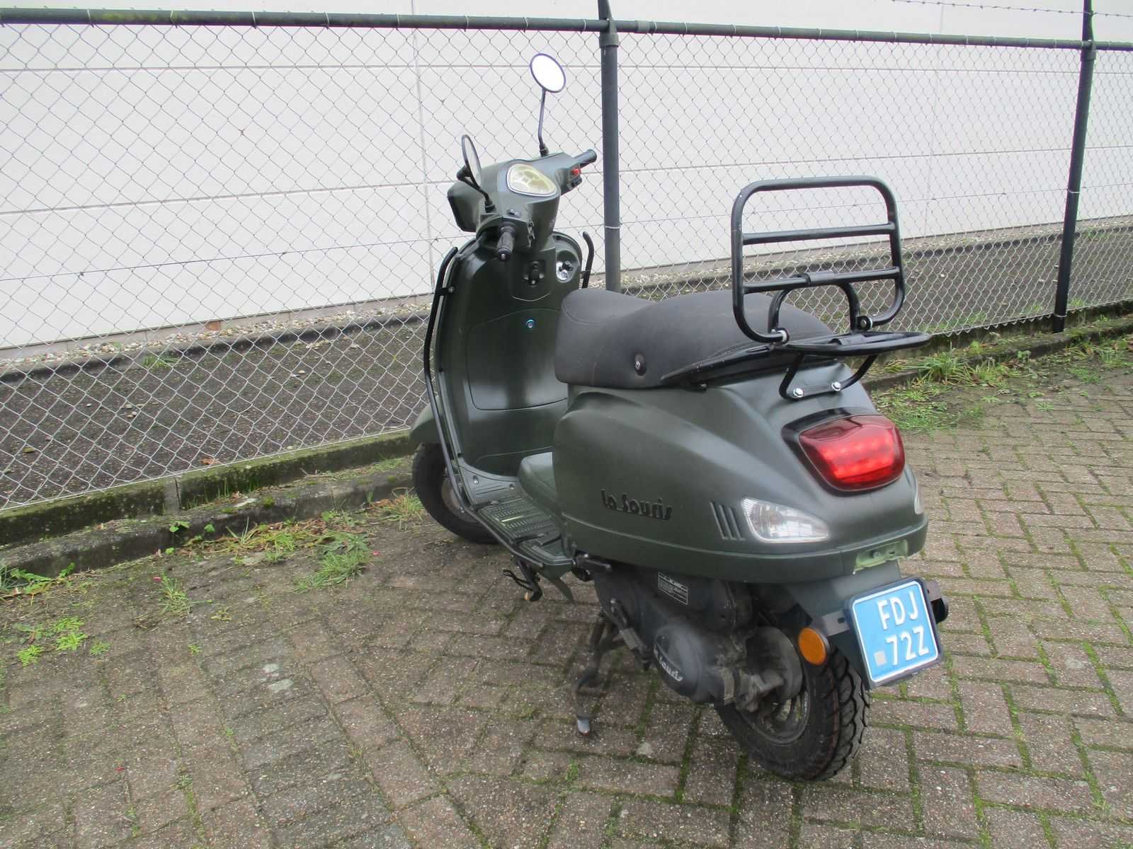 Snorscooter met 1 sleutel inclusief achter klaprek en voorzijde beugelset. Scooter van 1 ste eigenaar, motor loopt. Merk: La Souris Model: Snorscooter Type: Sourini S Sport Handelsbenaming: SOURINI S Snelheid: 25km/h Kenteken: FDJ-72-Z Datum eerste toelating: 2020-11-20 Bouwjaar: 20-11-2020 Transmissie: automaat Brandstof: benzine Kleur: niet van toepassing Afgelezen kilometerstand: 6315km