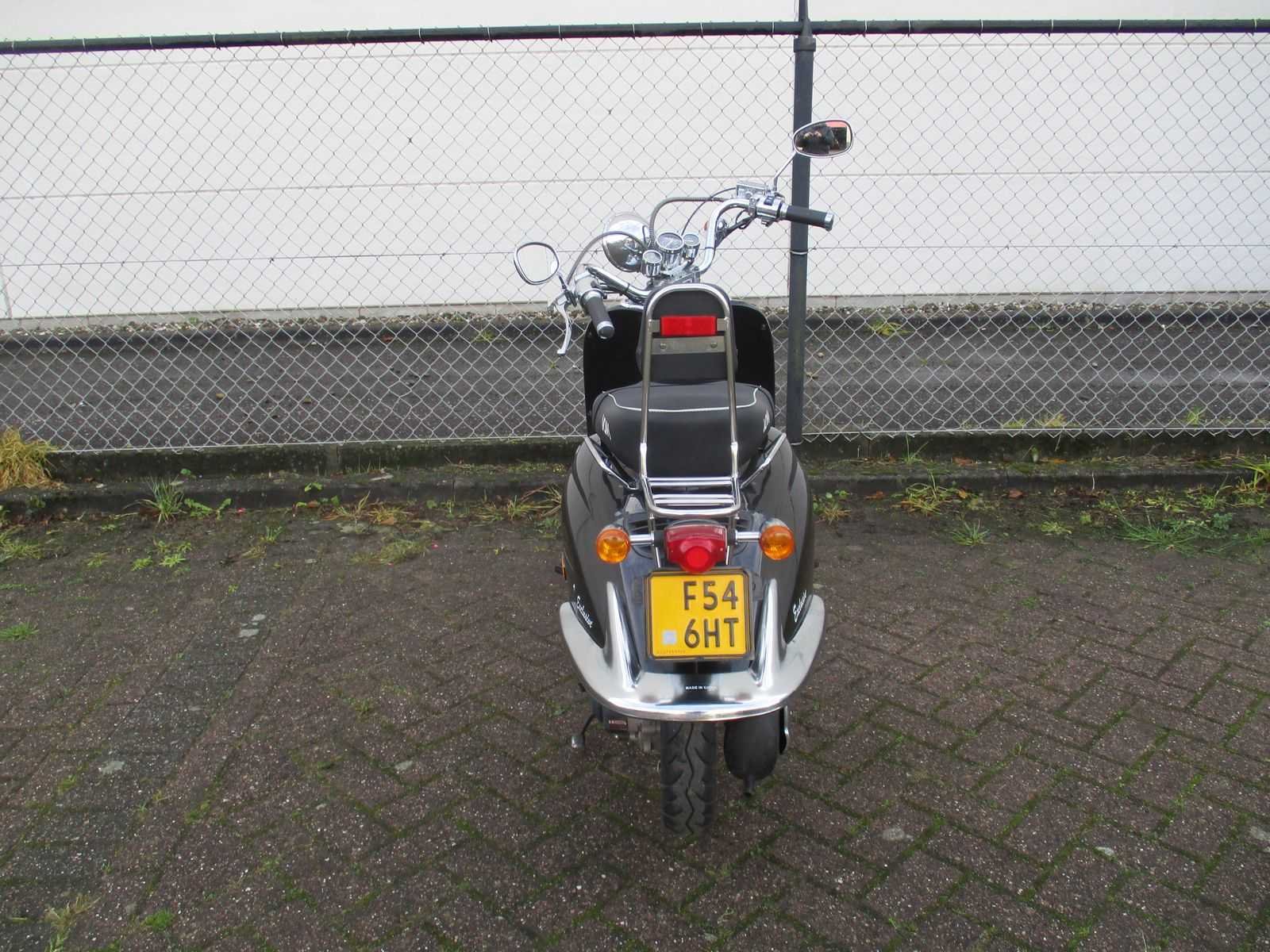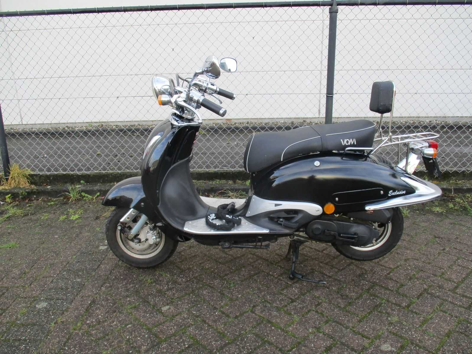 Bromscooter met 1 sleutel inclusief Sissy bar, aluminium treeplankjes en kettingslot (1 sleutel). Motor loopt. Merk: VOM Bella Model: Bromscooter Type: Exclusieve Retro Snelheid: 45km/h Kenteken: F-546-HT Datum eerste toelating: 12-07-2012 Bouwjaar: 2012 Transmissie: automaat Brandstof: benzine Kleur: n.v.t. Afgelezen kilometerstand: 5285km
