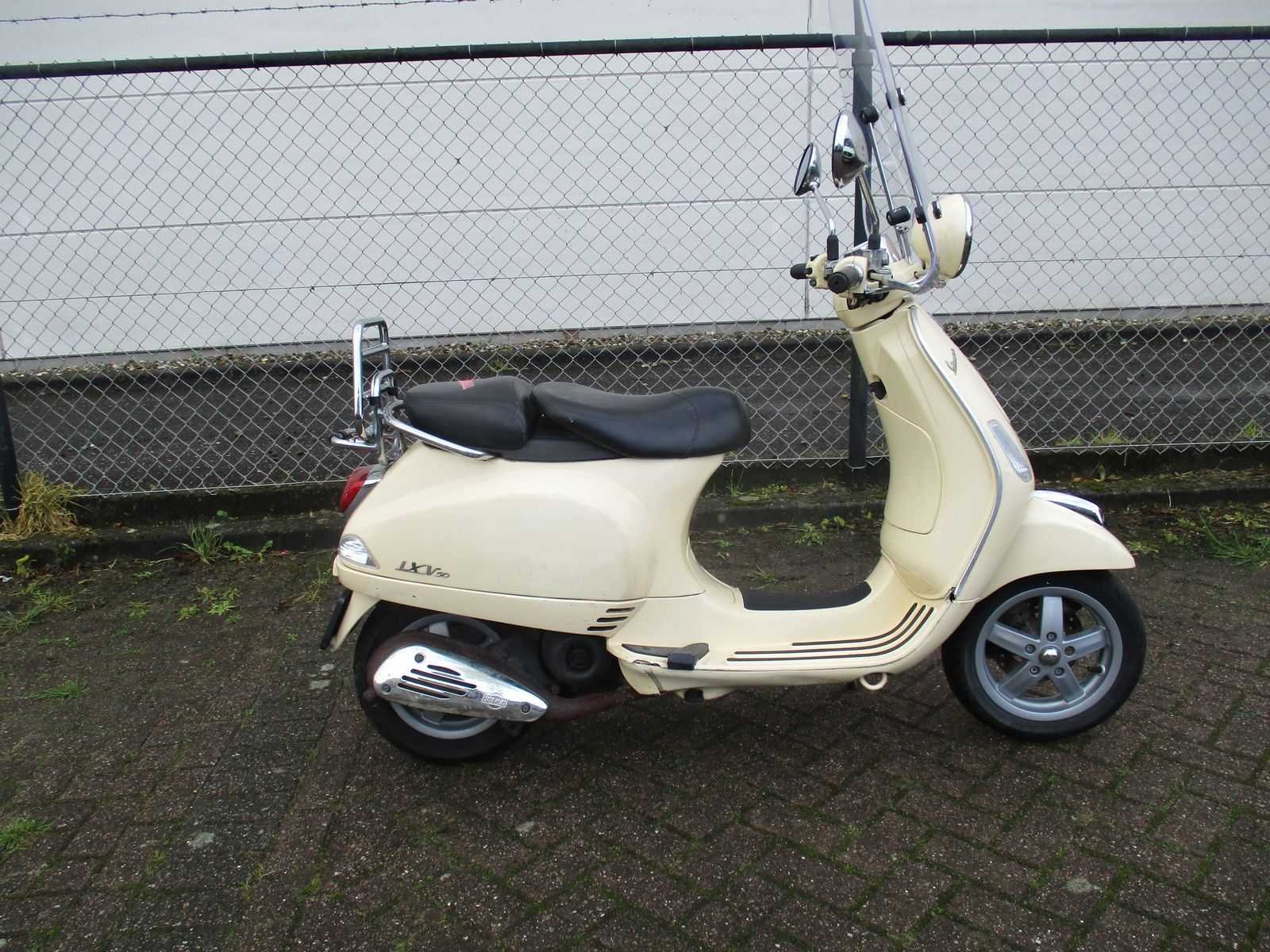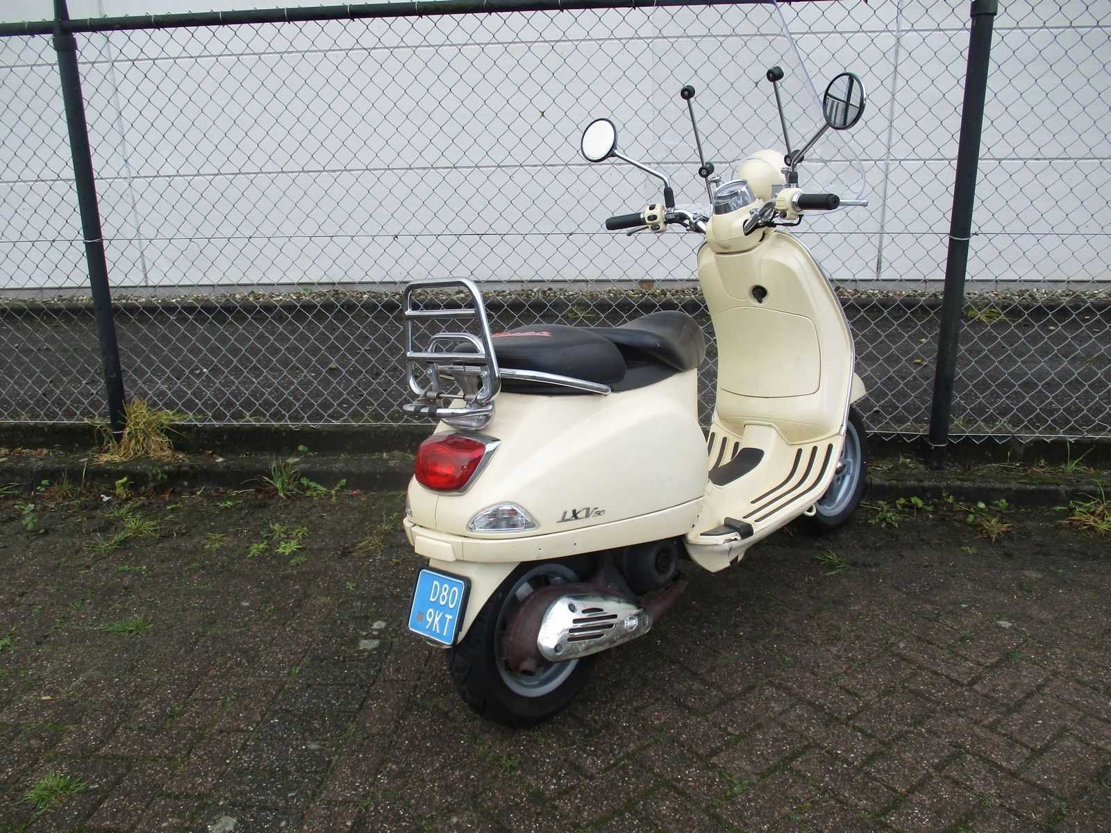 Snorscooter met 1 sleutel inclusief hoog windscherm en achter klaprek. Scooter heeft enige tijd stilgestaan en zal nagezien moeten worden. Loopt niet! Verdere technische staat onbekend. Merk: Vespa LXV 50 Model: Snorscooter Snelheid: 25km/h Kenteken: D-809-KT Datum eerste toelating: 27-04-2010 Bouwjaar: 2010 Transmissie: automaat Brandstof: benzine Kleur: n.v.t. Afgelezen kilometerstand: 26449km