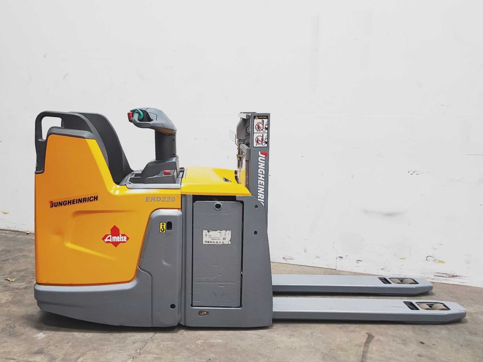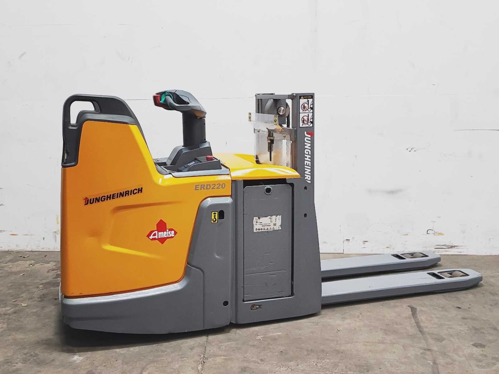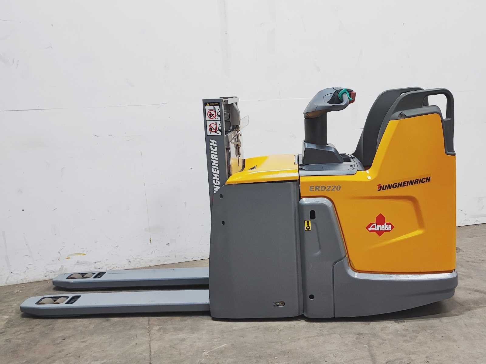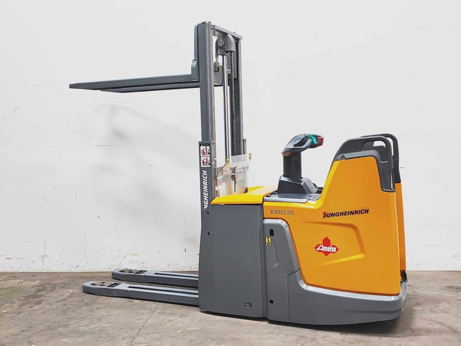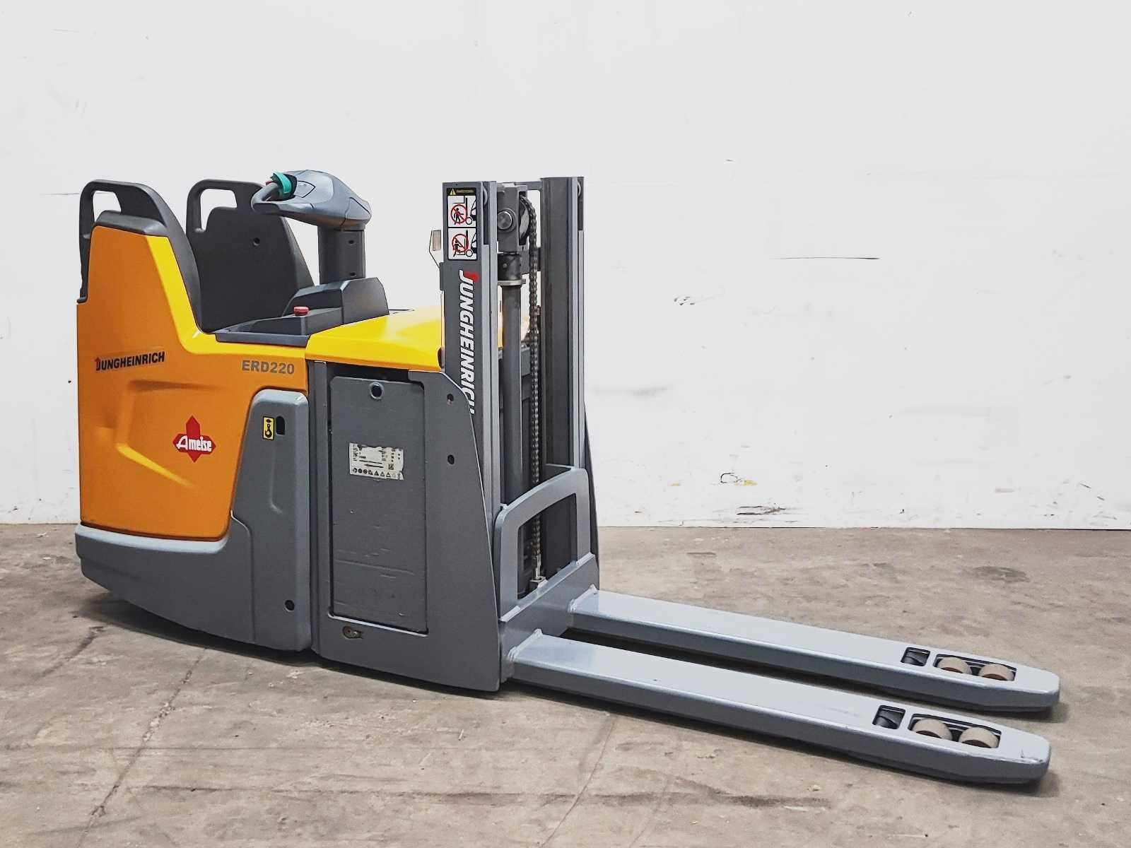 Jungheinrich ERD 220 elektro dubbelstock stapelaar v.v. duplo mast met dubbelstock functie, hefhoogte 200 / 1800 mm, hefvermogen 2000 / 1000 kg Merk: Jungheinrich Type: ERD 220 Bouwjaar: 2018 Serienummer: 90559128 Hefvermogen: 2000kg Hefhoogte: 1800mm Lepellengte: 1180mm Afgelezen urenstand: 8856 Eigen gewicht: 1190kg Minimale doorrijhoogte: 1270mm Totale afmeting L: 2700mm Totale afmeting Breedte: 740mm Totale afmeting Hoogte: 1270mm Meerij stapelaar: true Accu lader: true
