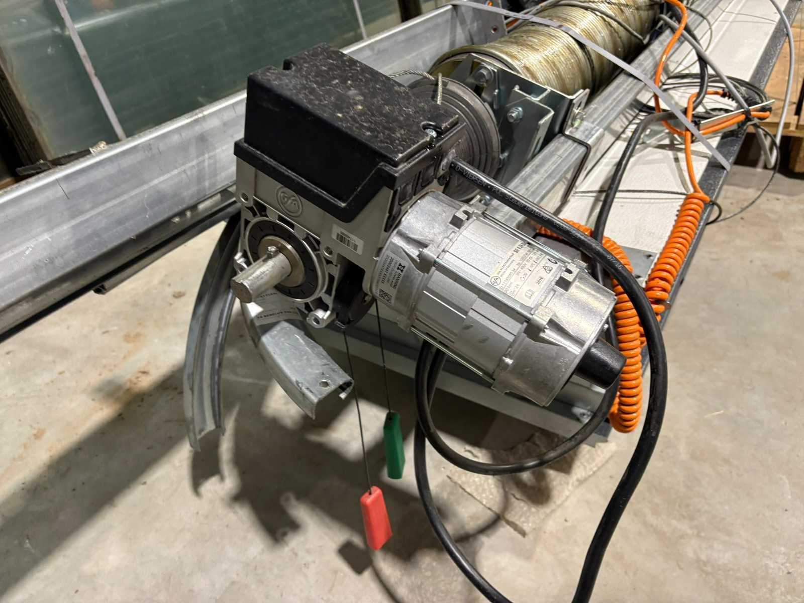 Complete elektrisch bedienbare overheaddeur; met verenpakket; railsen; bediening; aandrijfmotor; montage materialen; reeds gedemonteerd door verkoper; Merk: Ryterna Binnendeur: true Buitendeur: true Beglaasd: true Afmeting h: 4000mm Afmeting b: 3500mm Bouwjaar: 2021