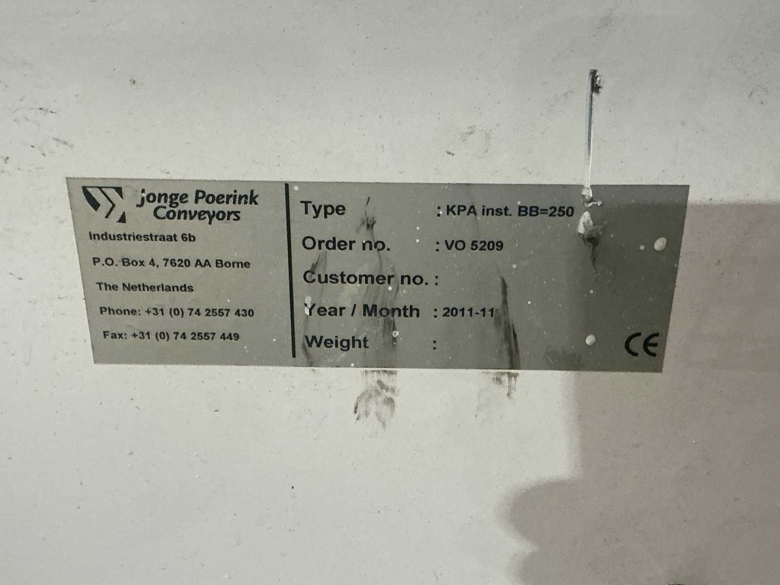 Merk: Jonge Poerink Conveyors Type: KPA inst. BB=250