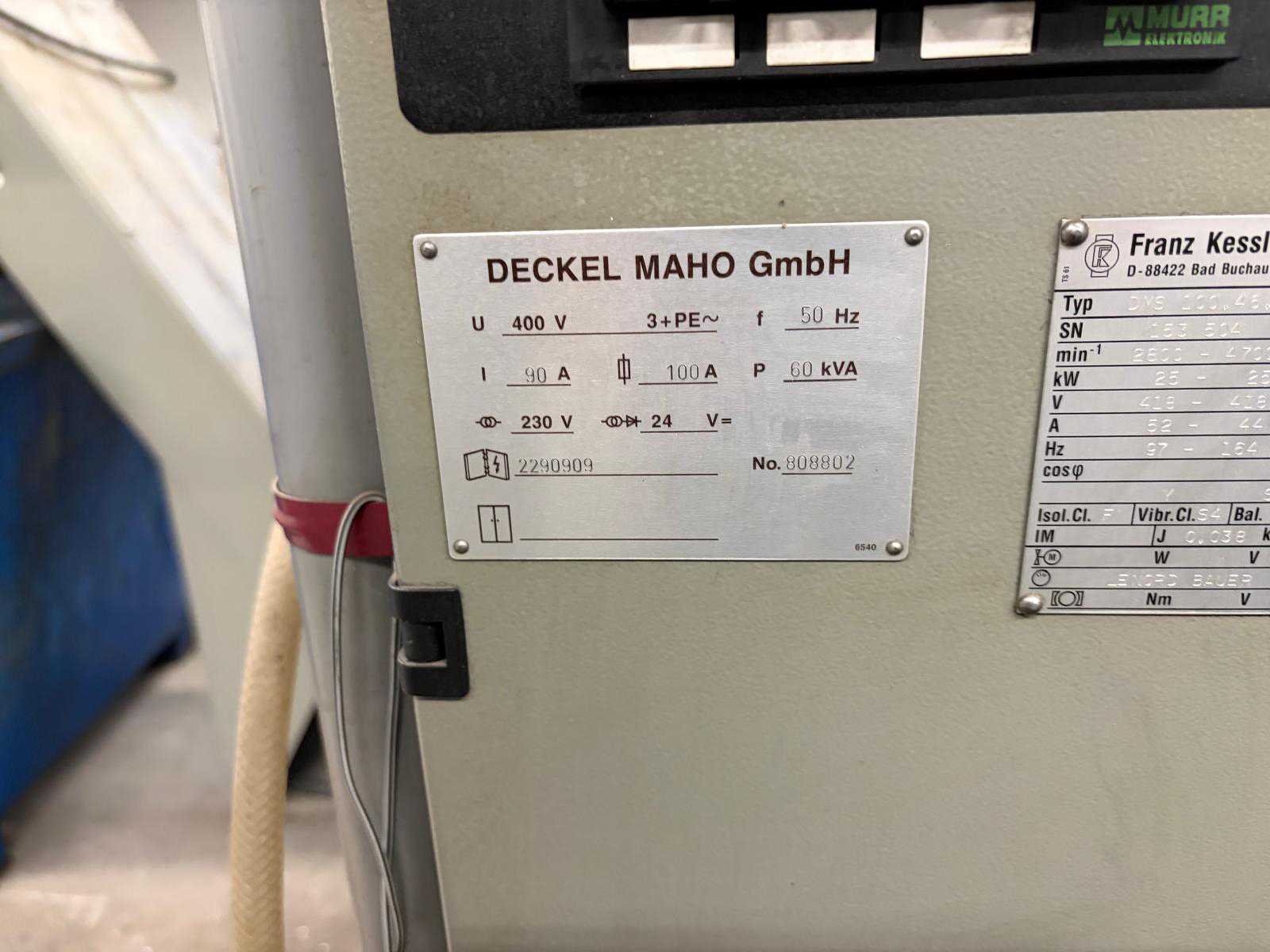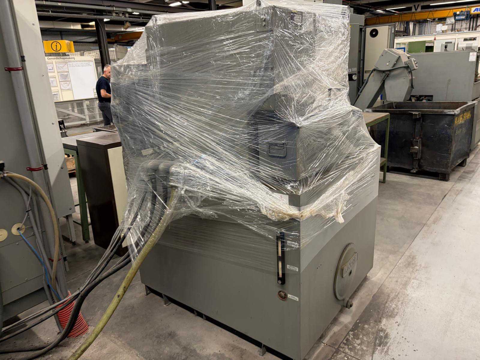 Tafel afmetingen 1250x800 mm, carroussel gereedschap wisselmagazijn v.v. 30 plaatsen. Let op!! uitlevering 15 December Merk: Deckel Maho Type: DMC 100V hi-dyn Serienummer: 28820006152 Opname iso: 40 Verplaatsing x-as: 1000mm Verplaatsing y-as: 800mm Verplaatsing z-as: 500mm Snelheid van n =: 2800rpm Snelheid tot n =: 18000rpm CNC-besturing, merk, type: DMG Spanentransporteur: true Koelmiddelpomp: true Werkstuk gewicht max.: 1200kg -assig: 3 Motorvermogen (kW): 25kW Aansluiting: 400V Totale afmeting Hoogte: 2960mm Totale afmeting Breedte: 3890mm Totale afmeting L: 4090mm Machinegewicht: 9000kg