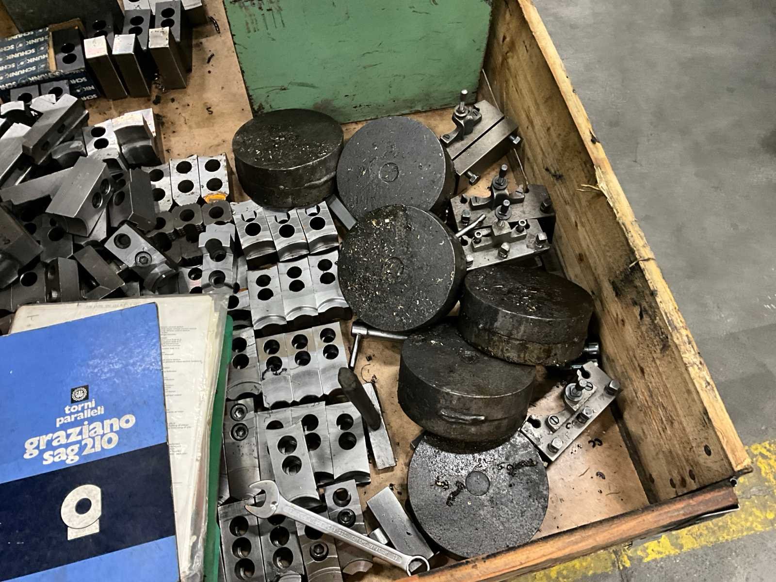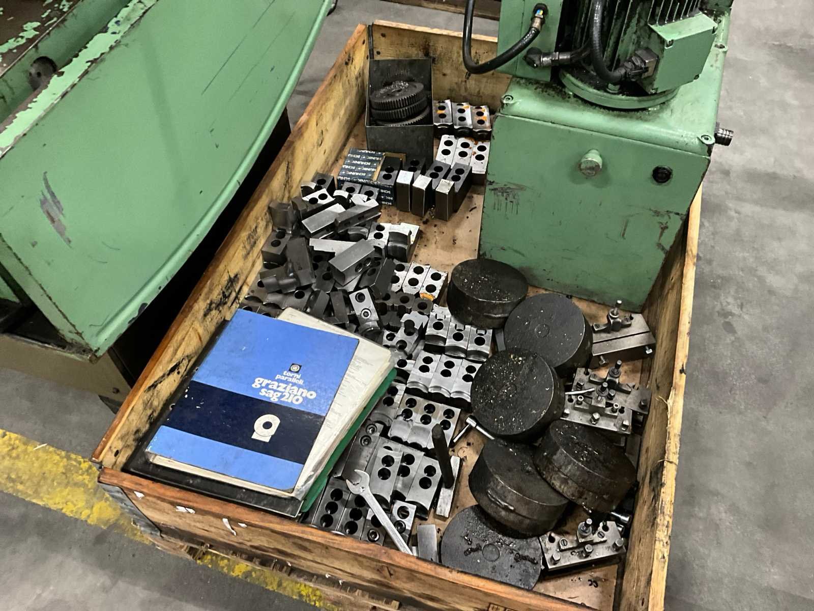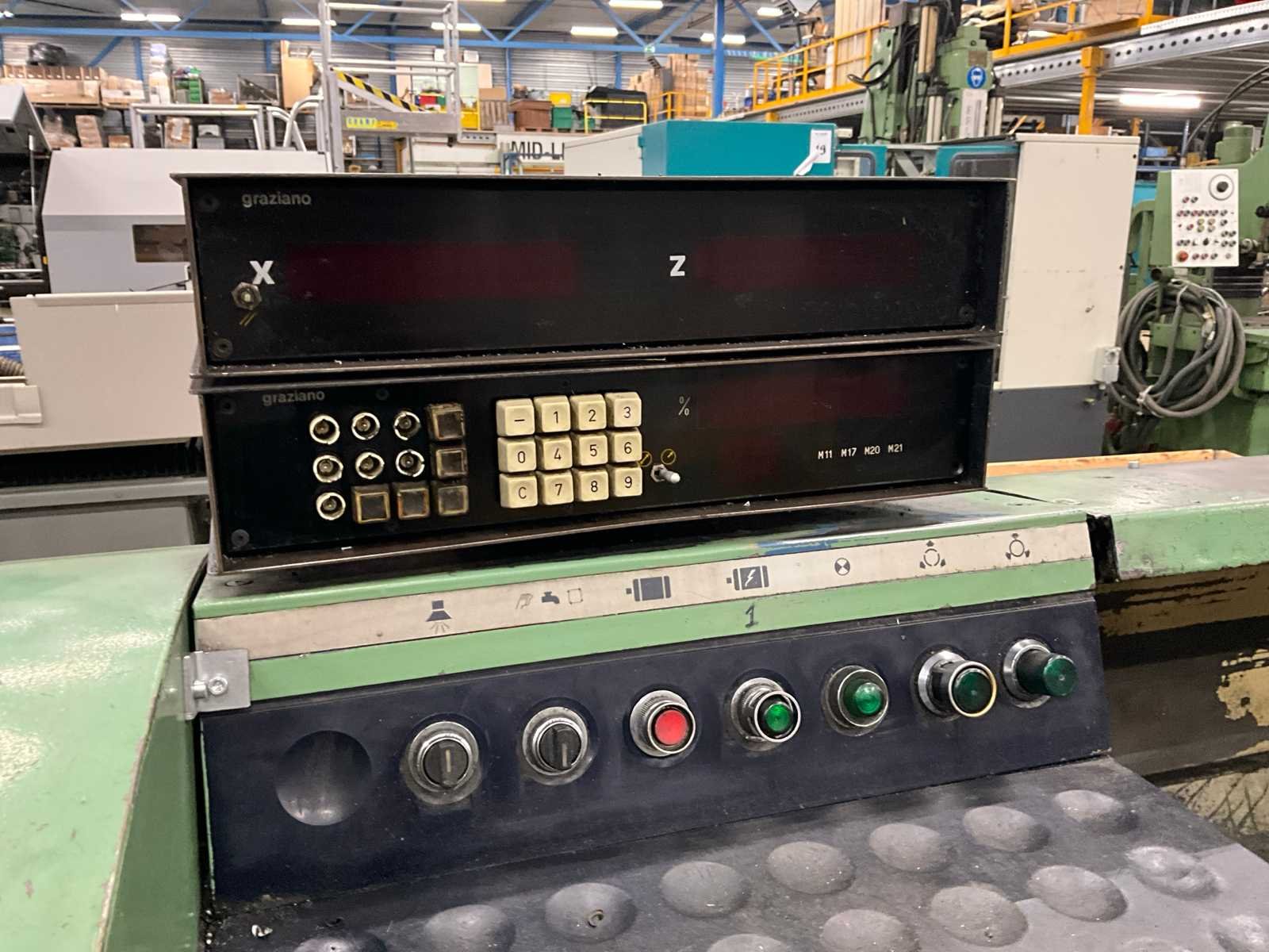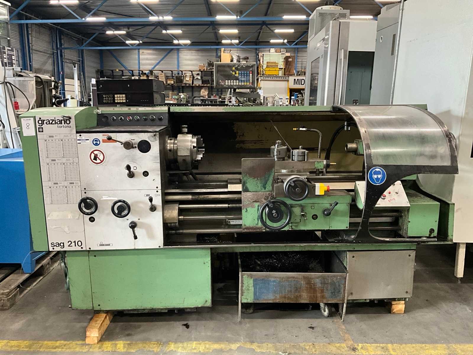 Voorzien van DITRON D60 -2V digitale X-Y uitlezing en diverse machine toebehoren in pallet Merk: Graziano Tortona Type: sag 210 imc Draailengte: 1000mm Draai: 500mm Holle spil Ø: 35mm Aantal snelheden: 4 Koelmiddelpomp: true Aansluiting: 400V Machinegewicht: 2300kg Afmeting l: 2850mm Afmeting b: 1500mm Afmeting h: 850mm