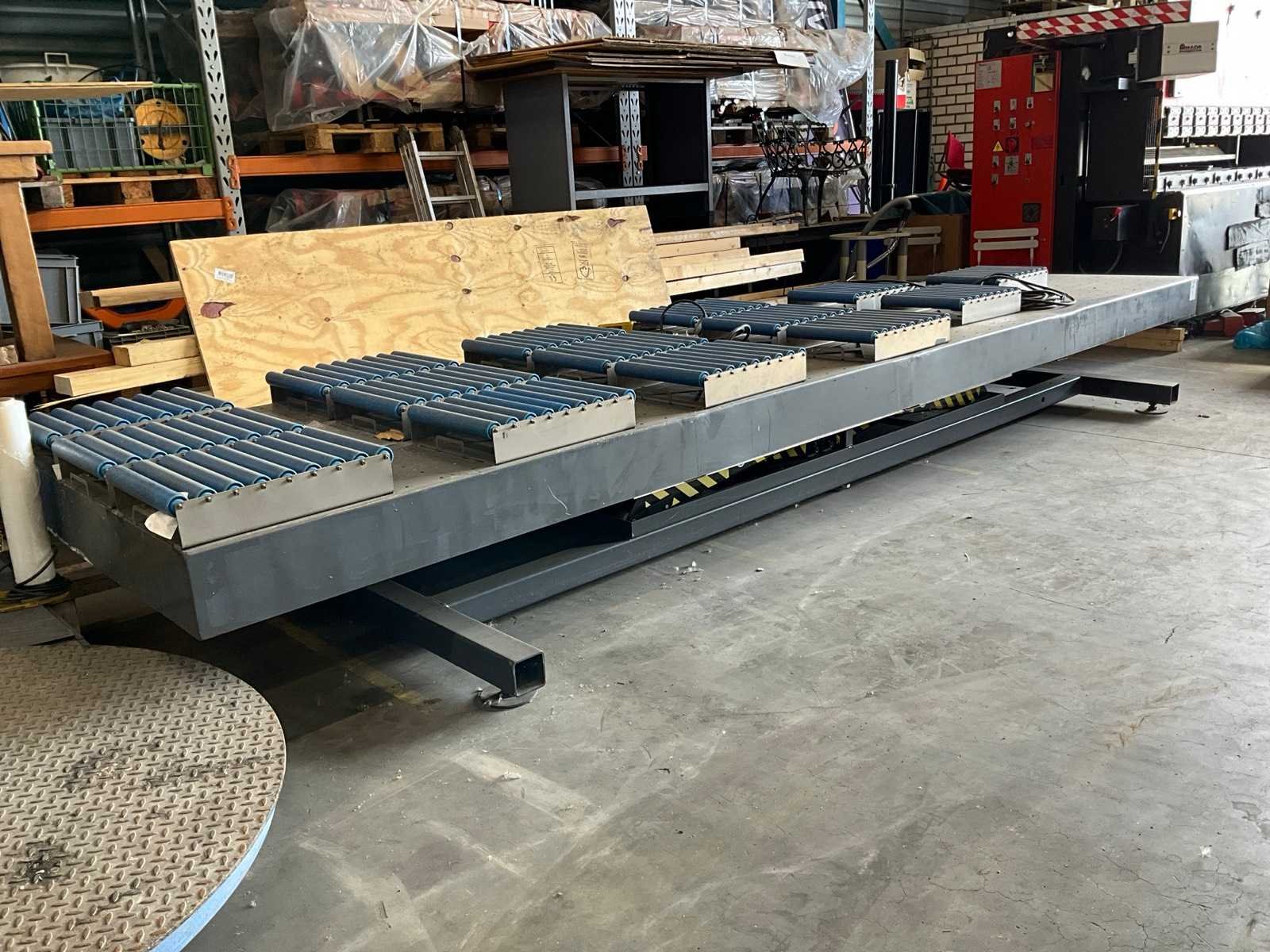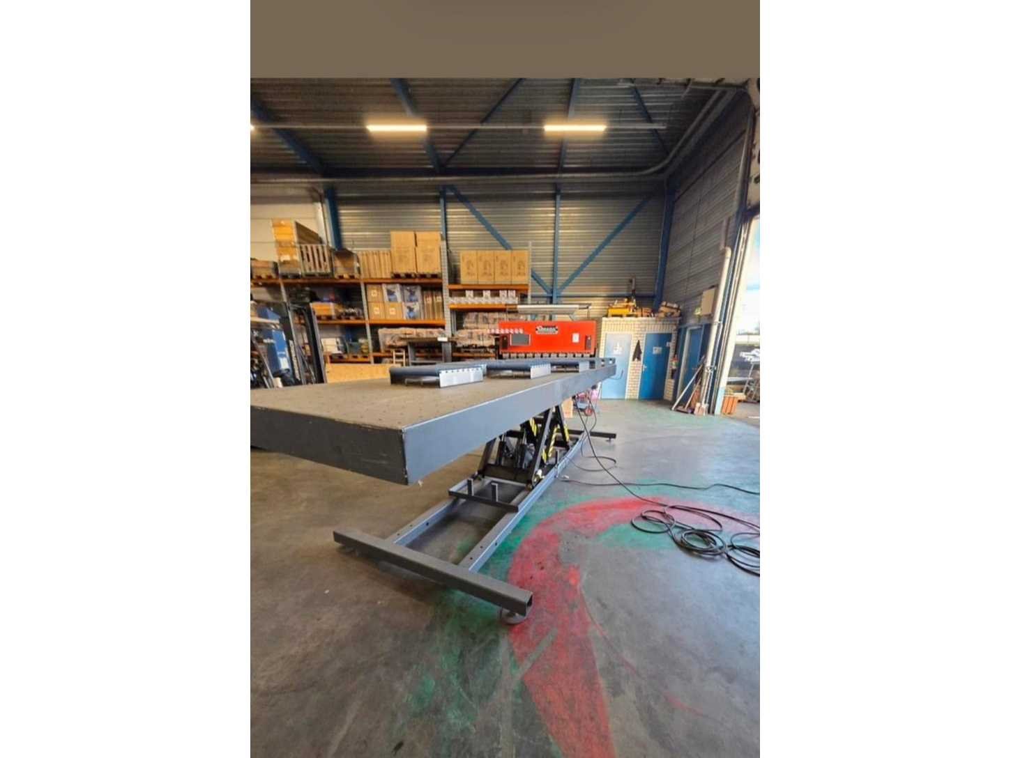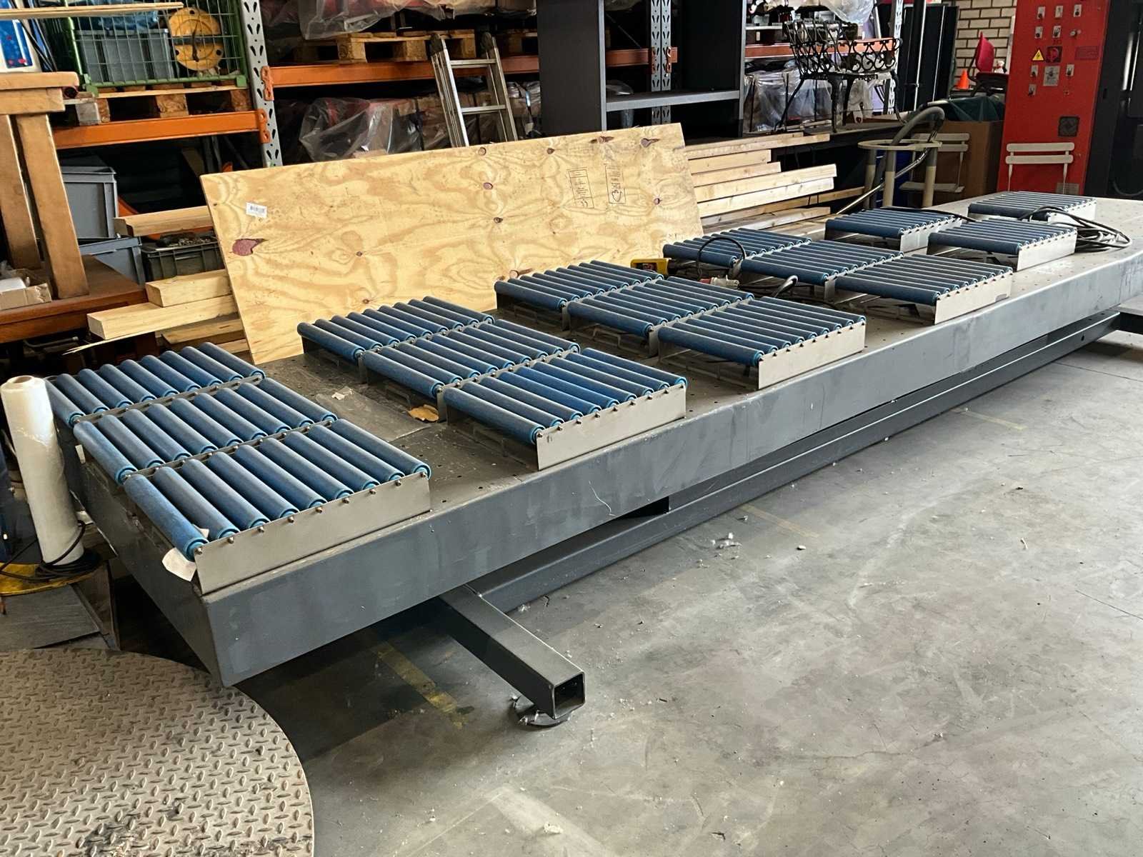 Hefvermogen 4000 kg; voorzien van 15 bovenop gebouwde rollenbanen 400x500 mm; voorzien van onder gebouwde schaarliften. Let op!! uitlevering 15 December Merk: Silverstone Type: HW4000D Bouwjaar: 2014 Afmeting l: 5500mm Afmeting b: 1360mm Afmeting h: 600mm