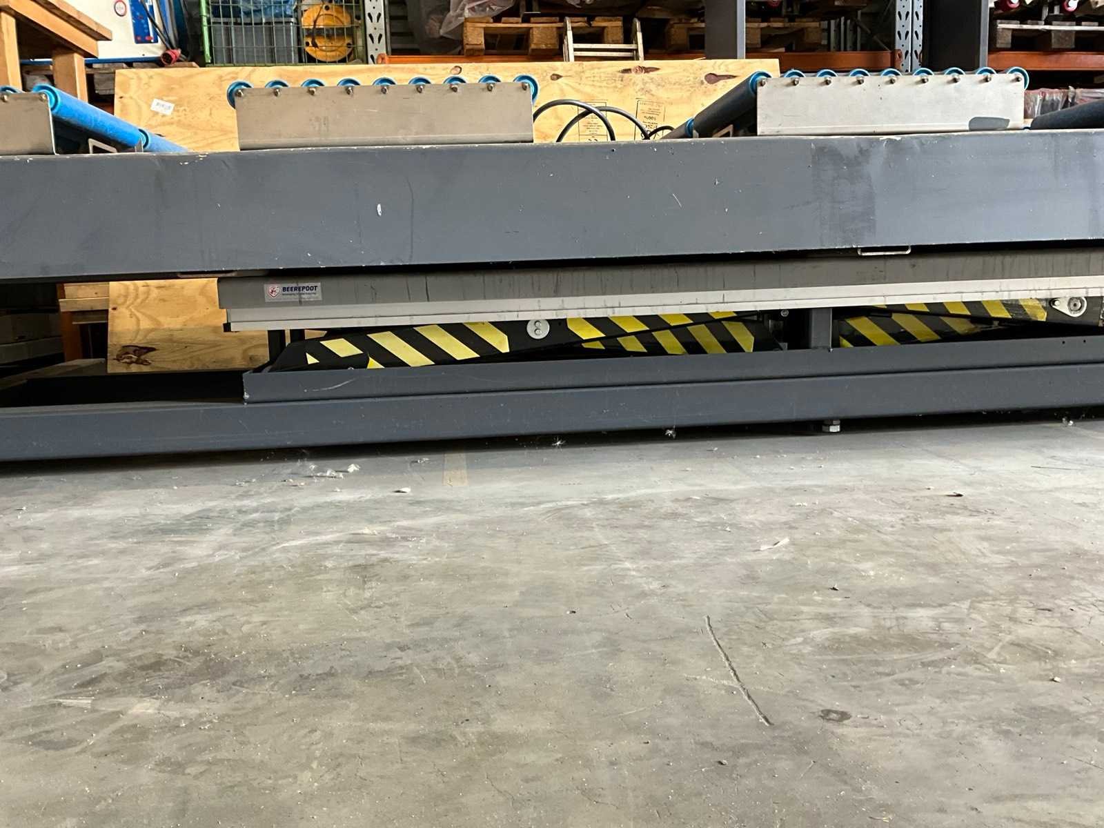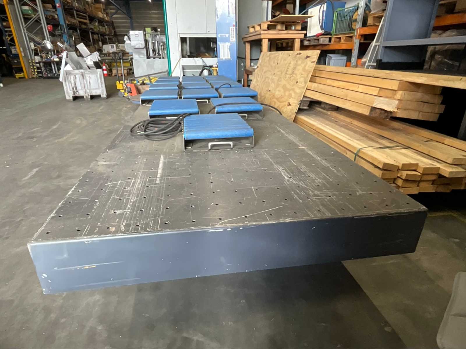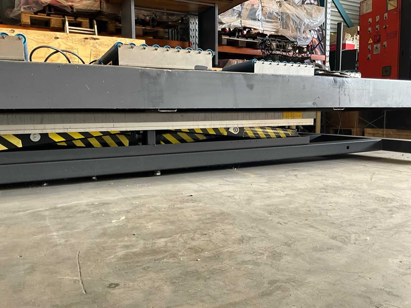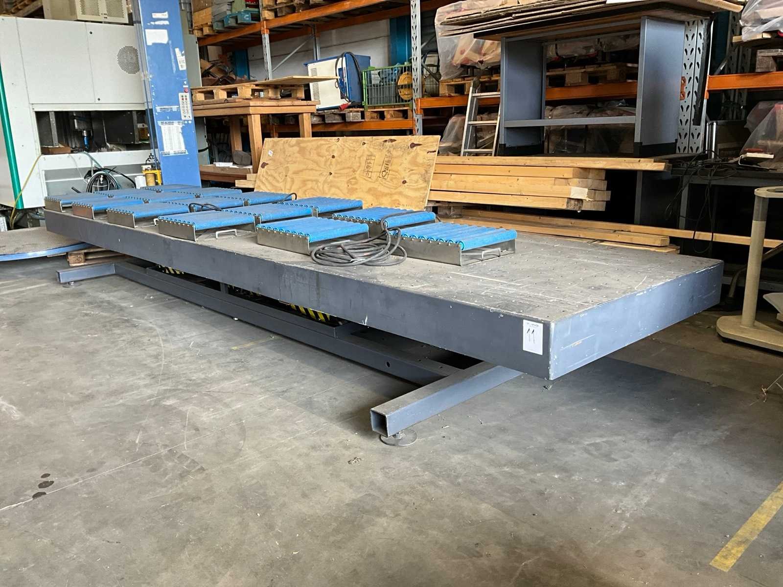 Hefvermogen 4000 kg; voorzien van 15 bovenop gebouwde rollenbanen 400x500 mm; voorzien van onder gebouwde schaarliften. Let op!! uitlevering 15 December Merk: Silverstone Type: HW4000D Bouwjaar: 2014 Afmeting l: 5500mm Afmeting b: 1360mm Afmeting h: 600mm