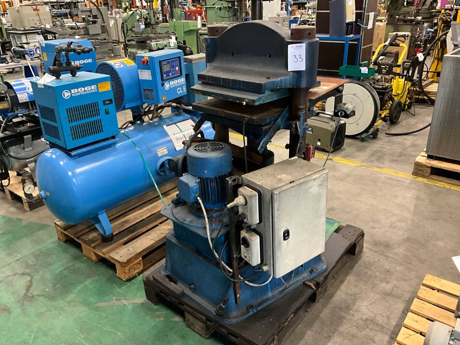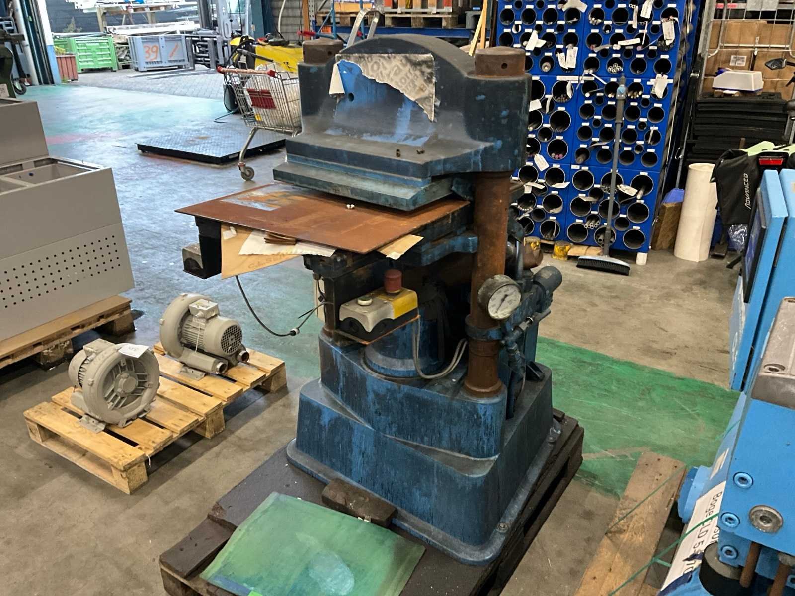 Verwarmde boven en onder plaat, Have hydrauliek pomp, drukmeter, zonder pallet Elektro-hydraulisch: true 2-koloms: true Afstand tussen de kolommen: 400mm Tafel afmeting l: 750mm Tafel afmeting b: 420mm Aansluiting: 400V Afmeting l: 900mm Afmeting b: 1100mm Afmeting h: 1300mm