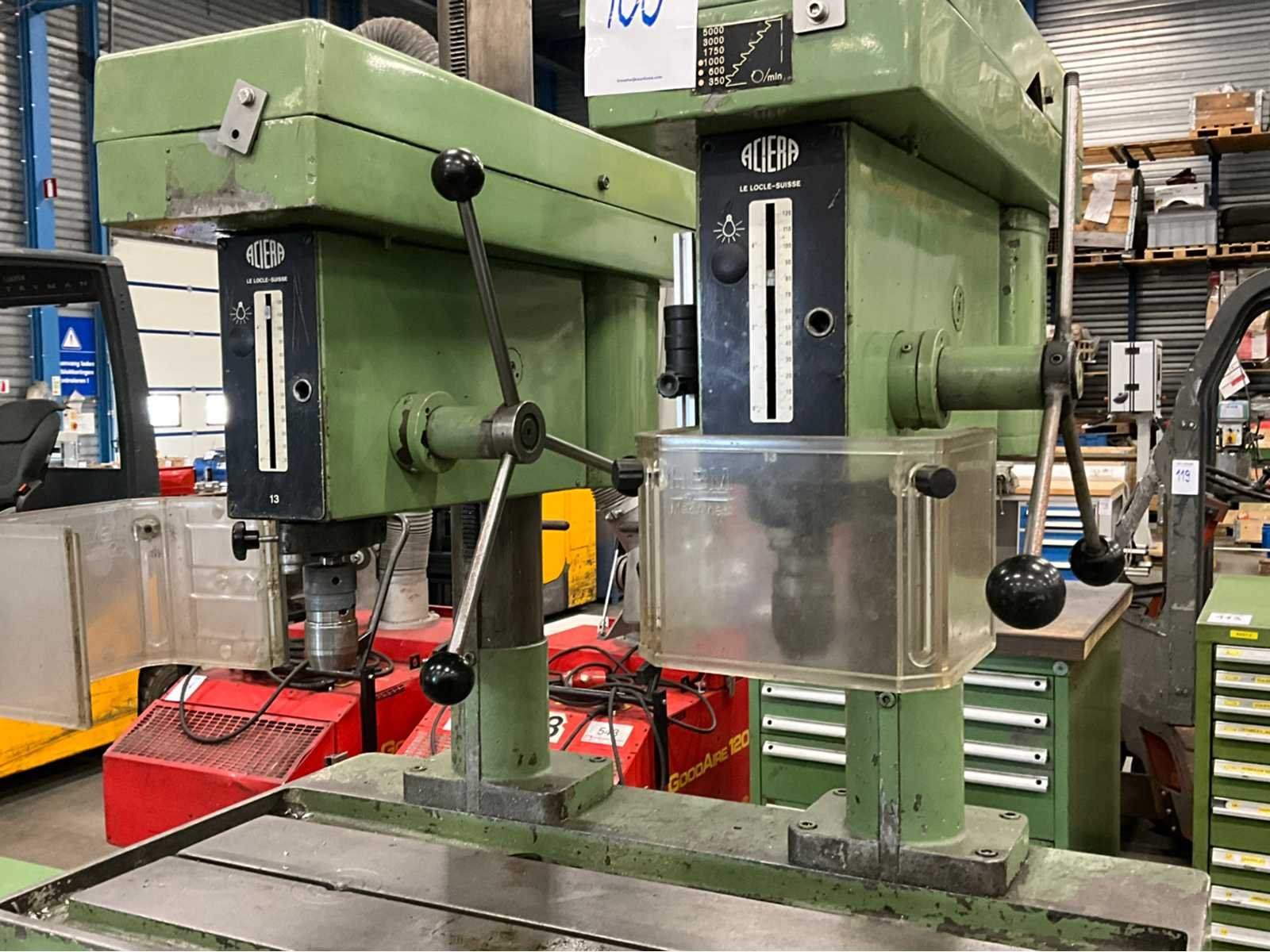 Voorzien van T-gleuf opspantafel afmeting 780x230 mm; voetbediening; gemonteerd op staal onderstel; Merk: Aciera Aantal snelheden: 6 Spindelsnelheid van n =: 350rpm Spindelsnelheid tot n =: 5000rpm Boordiepte: 120mm Aansluiting: 400V Afmeting l: 880mm Afmeting b: 680mm Afmeting h: 1850mm