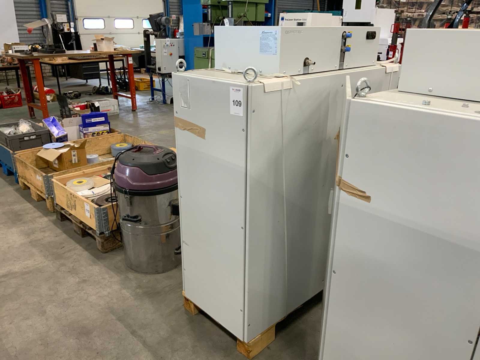 Koel cap. 2,2 kW; volumestroom 150 liter/uur; v.v. schakelkast Merk: Cosmotec Type: EXW15H02207000 1Z Bouwjaar: 2018 Serienummer: 0000789565 Max. temperatuur: 55°c Max. druk: 10bar Aansluiting: 230V Totale afmeting L: 1200mm Totale afmeting Breedte: 500mm Totale afmeting Hoogte: 1450mm