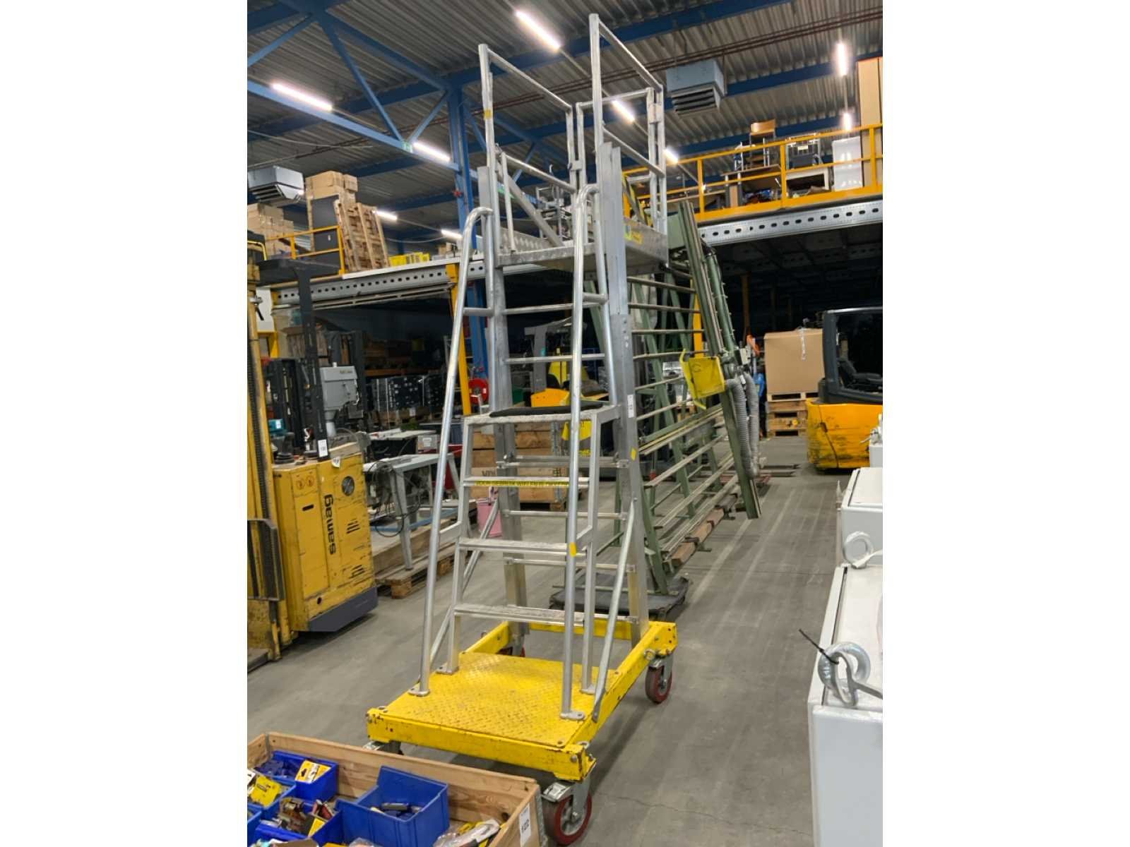 Verrijdbaar, platform in hoogte verstelbaar Merk: Haacon WA 100-209018 Bouwjaar: 2013 Serienummer: 1345278 Aantal treden: 4 Aluminium: true Totale afmeting L: 2200mm Totale afmeting Breedte: 950mm Totale afmeting Hoogte: 3200mm